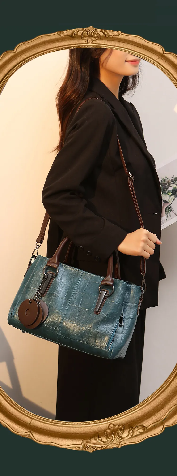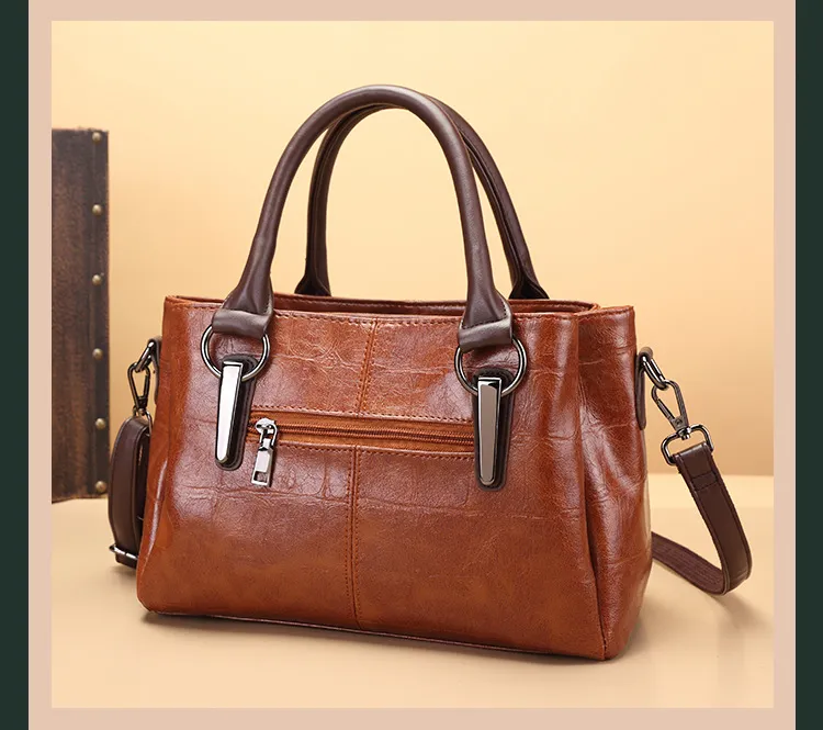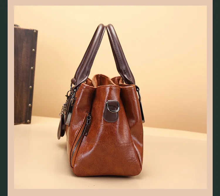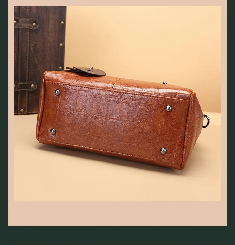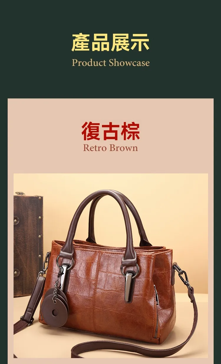 歐式古典風情油蠟皮手提側背包 | 飽滿細紋油蠟皮革 | 復古質感五金 | 科學分區好收納 | 率性實用大容量百搭油蠟皮女包手提側背斜背包
