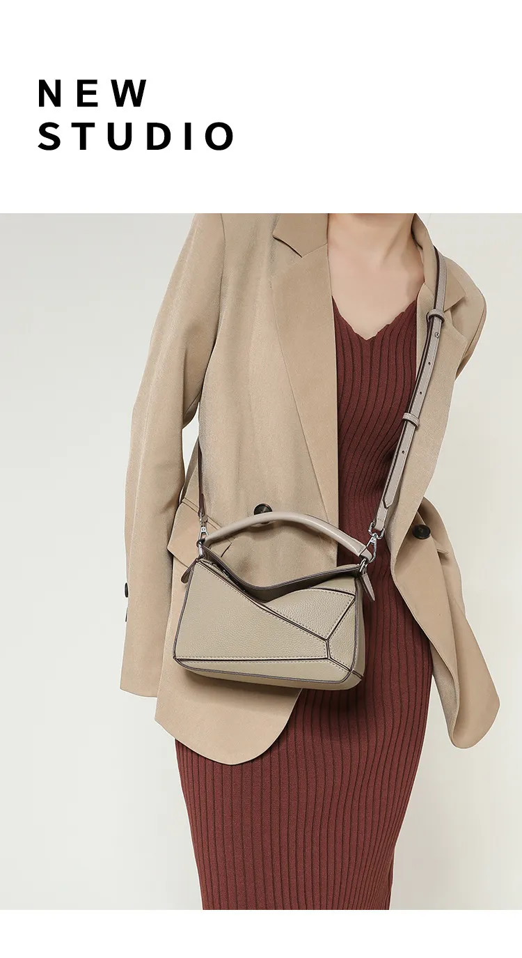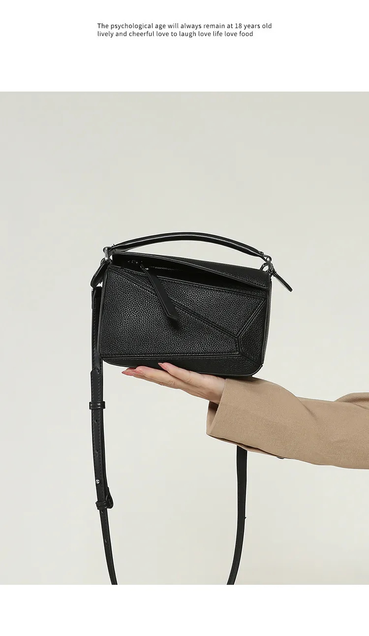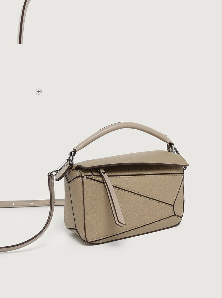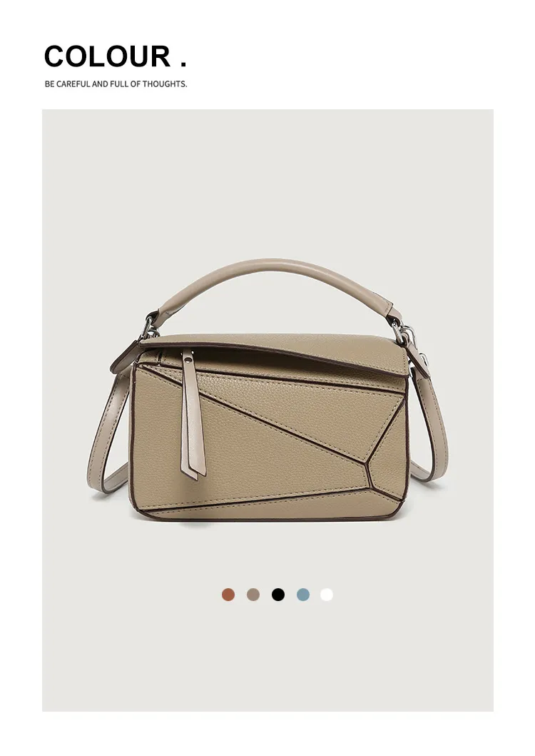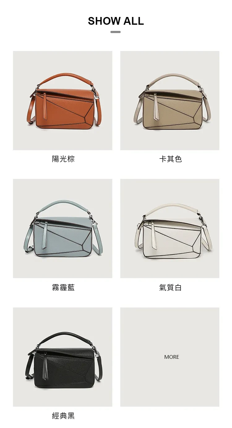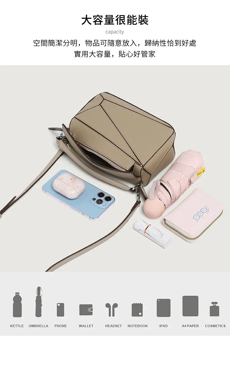 日韓熱銷氣質拼接元素幾何包 | 高級細紋荔枝皮料 | 科學分區好收納 | 質感五金精湛細節 | 時尚百搭PUZZLE小方包女生手提斜背側背包