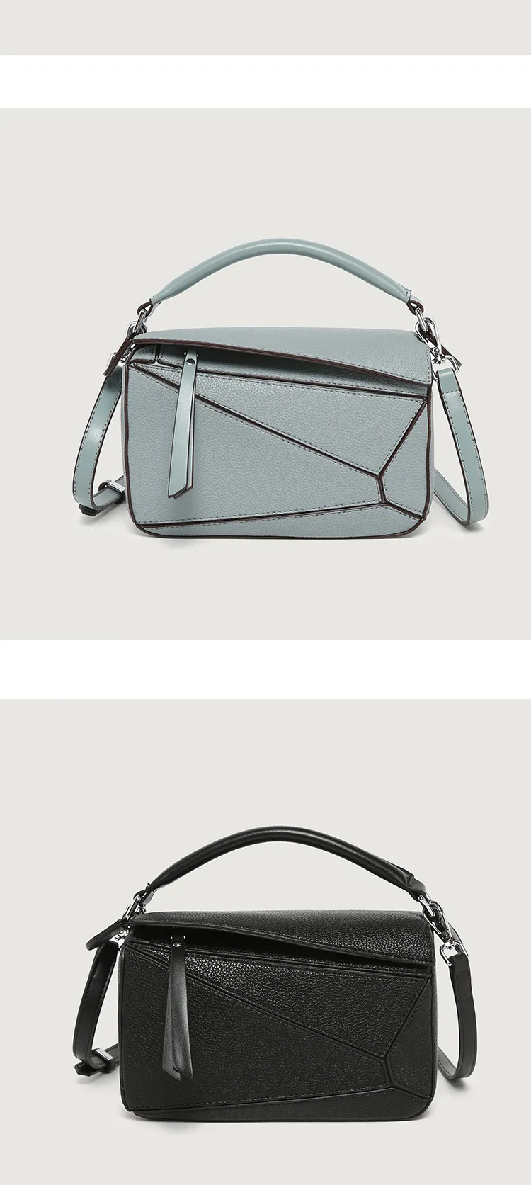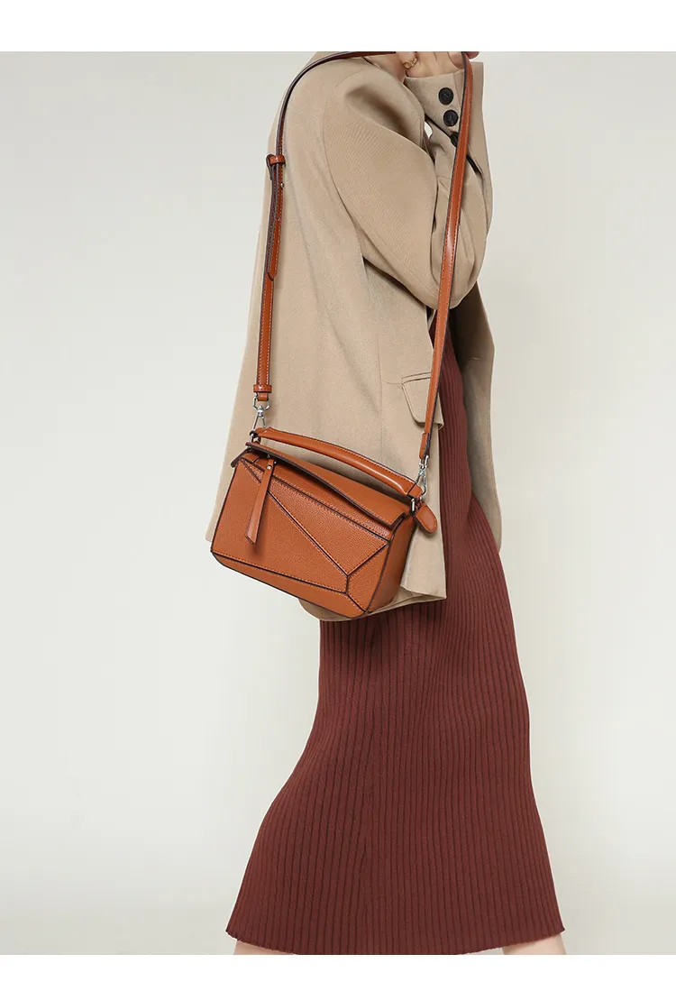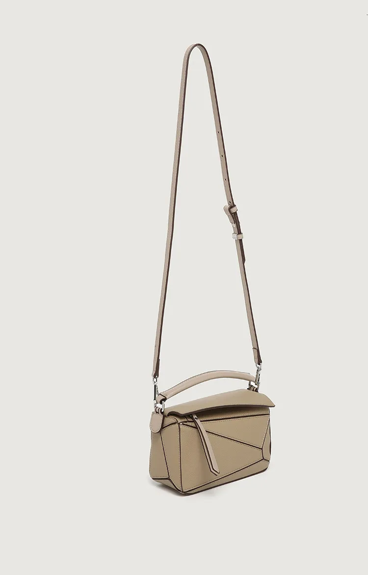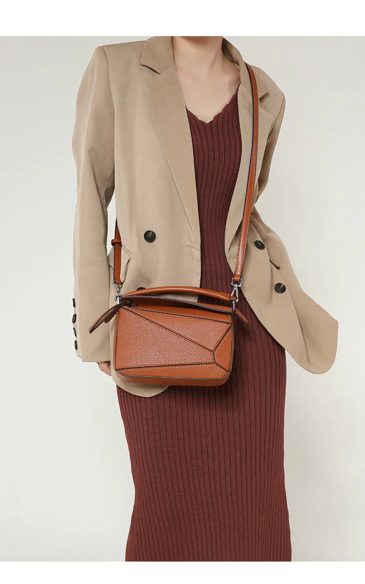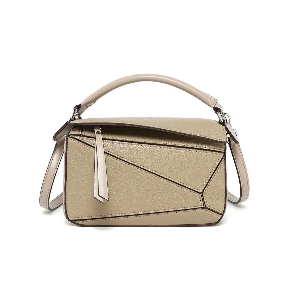 日韓熱銷氣質拼接元素幾何包 | 高級細紋荔枝皮料 | 科學分區好收納 | 質感五金精湛細節 | 時尚百搭PUZZLE小方包女生手提斜背側背包