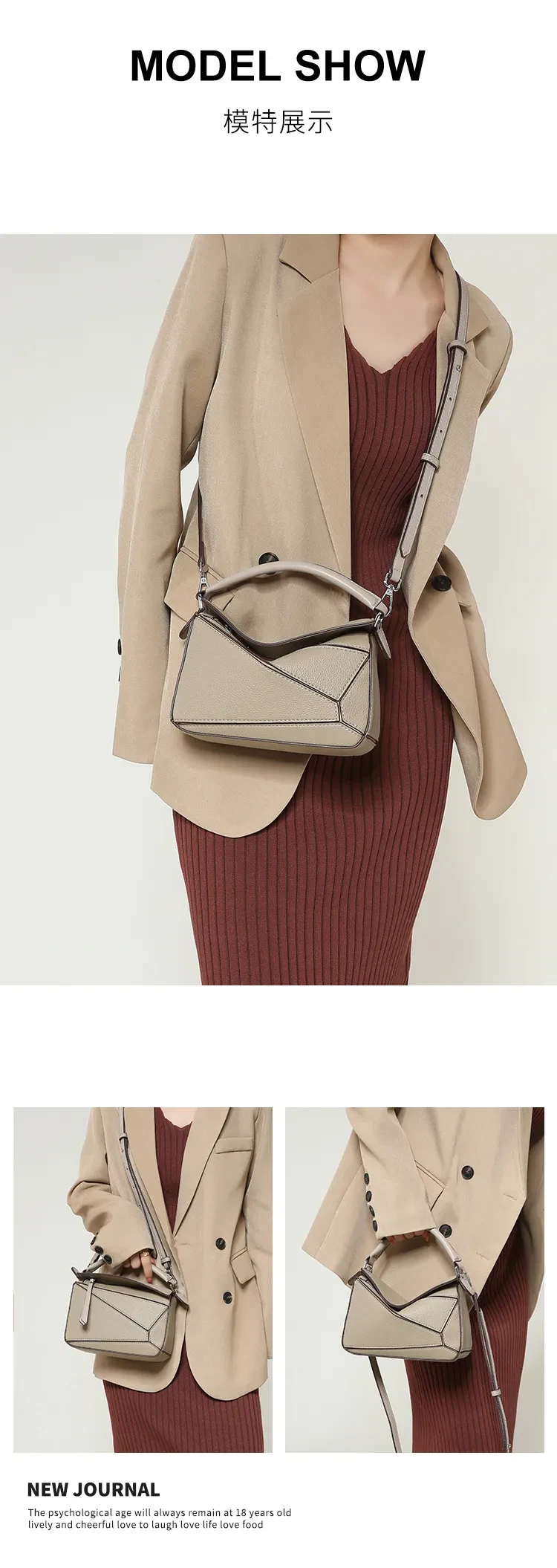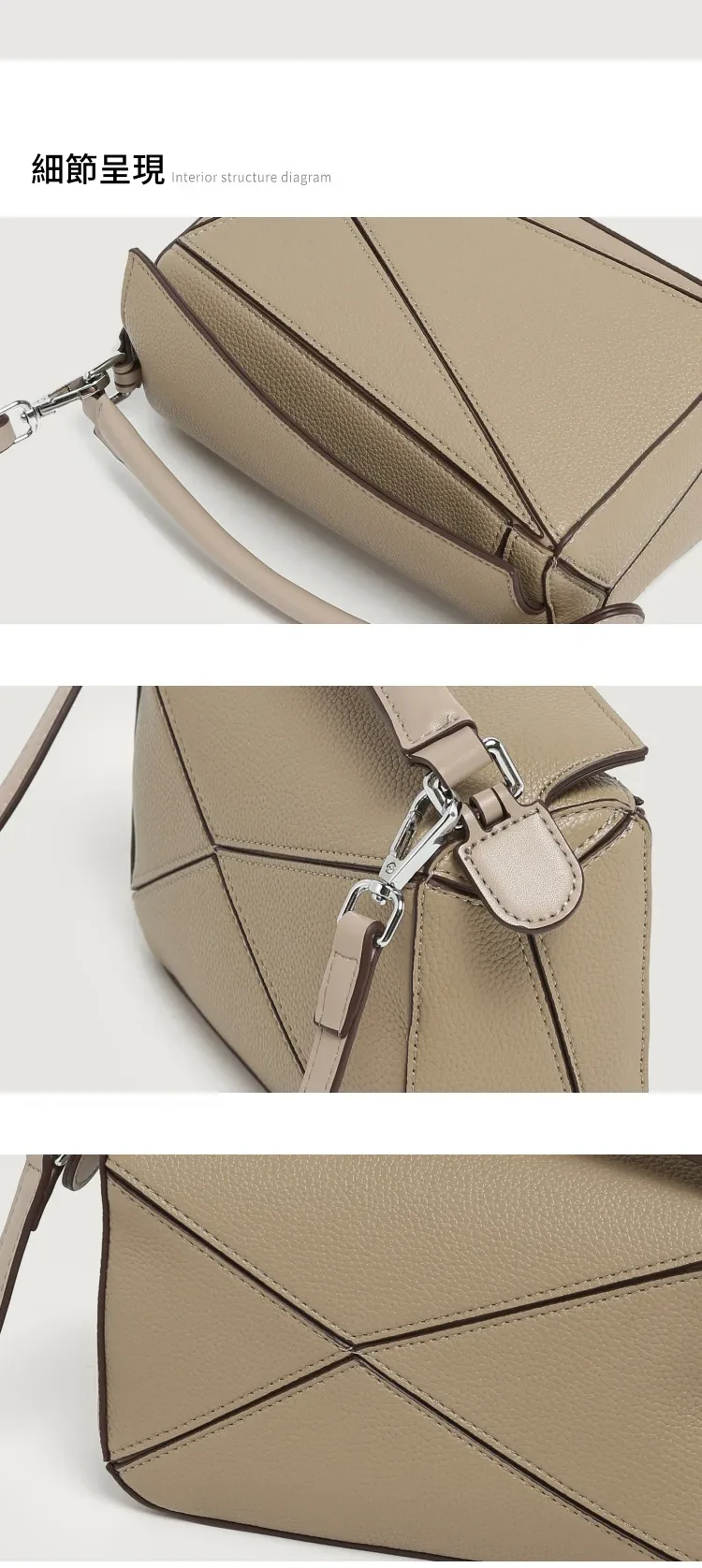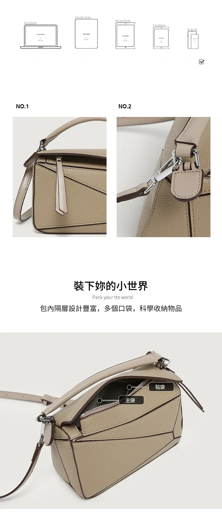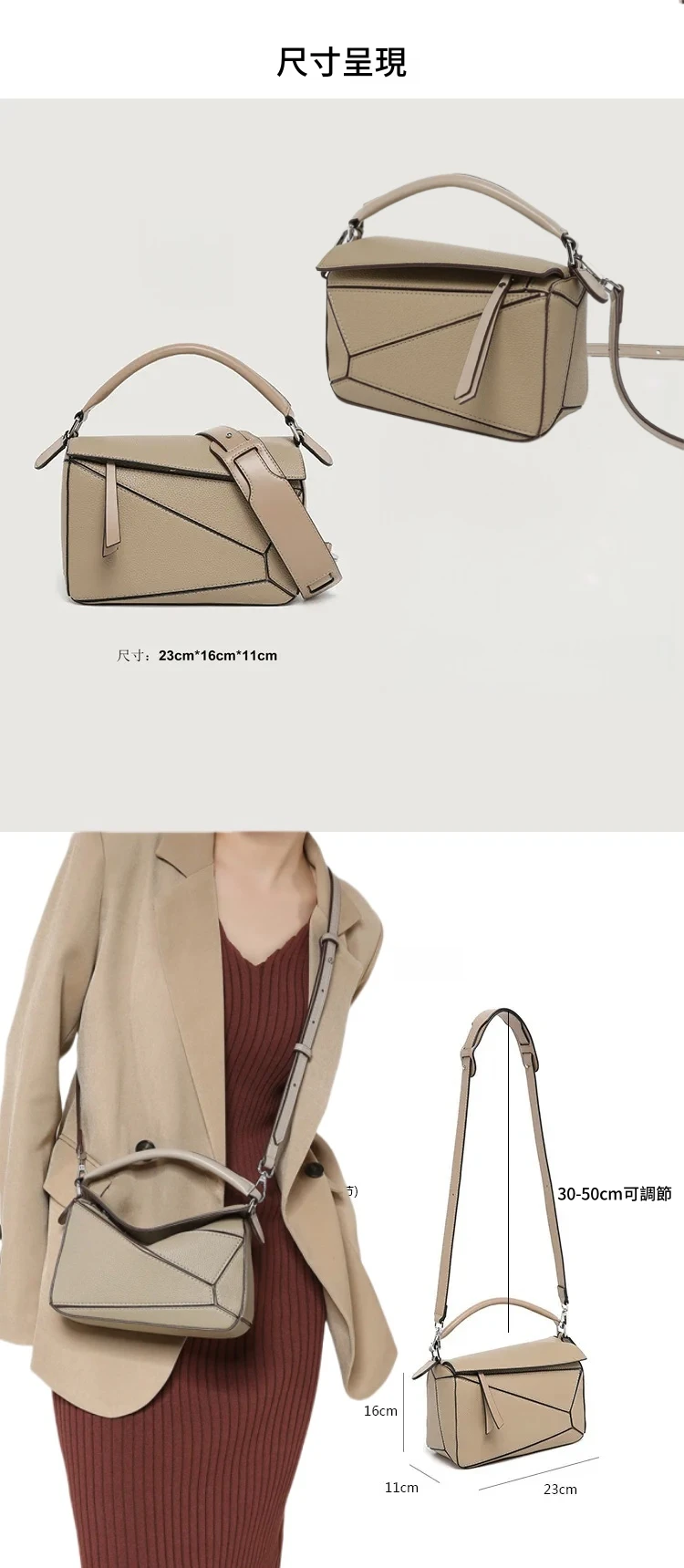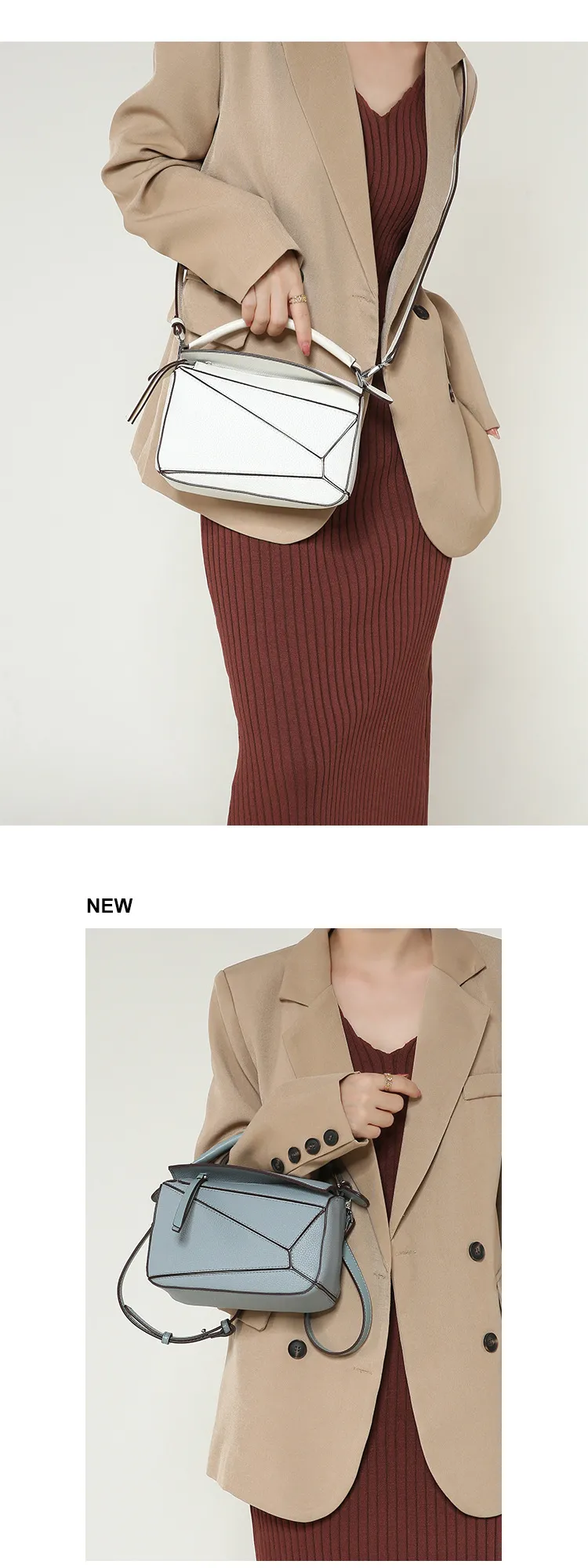 日韓熱銷氣質拼接元素幾何包 | 高級細紋荔枝皮料 | 科學分區好收納 | 質感五金精湛細節 | 時尚百搭PUZZLE小方包女生手提斜背側背包