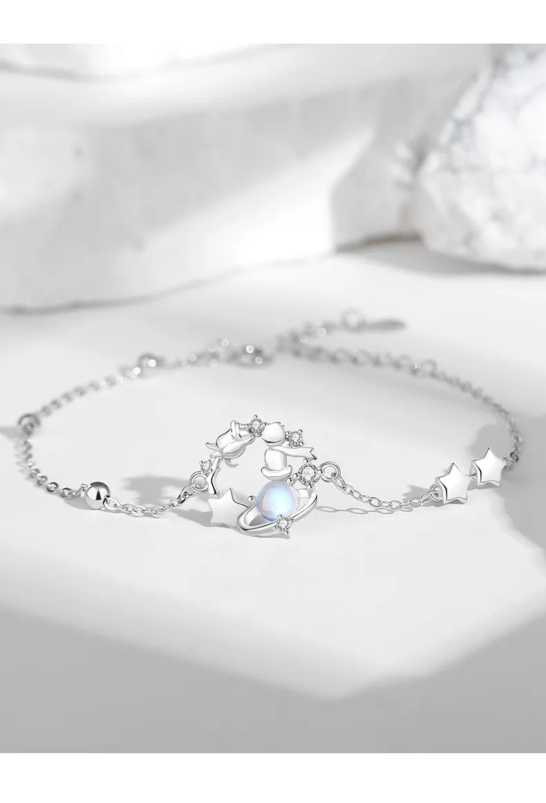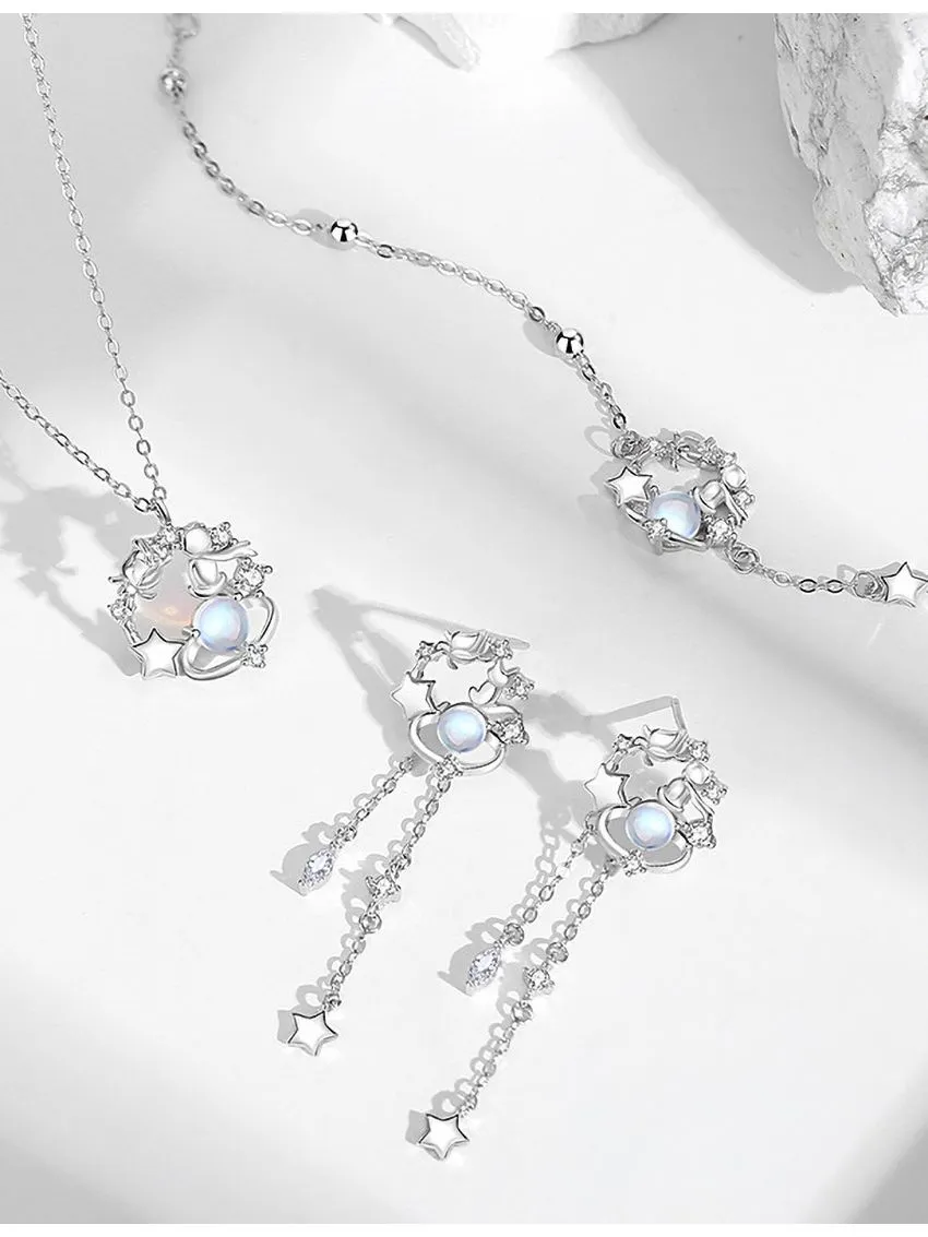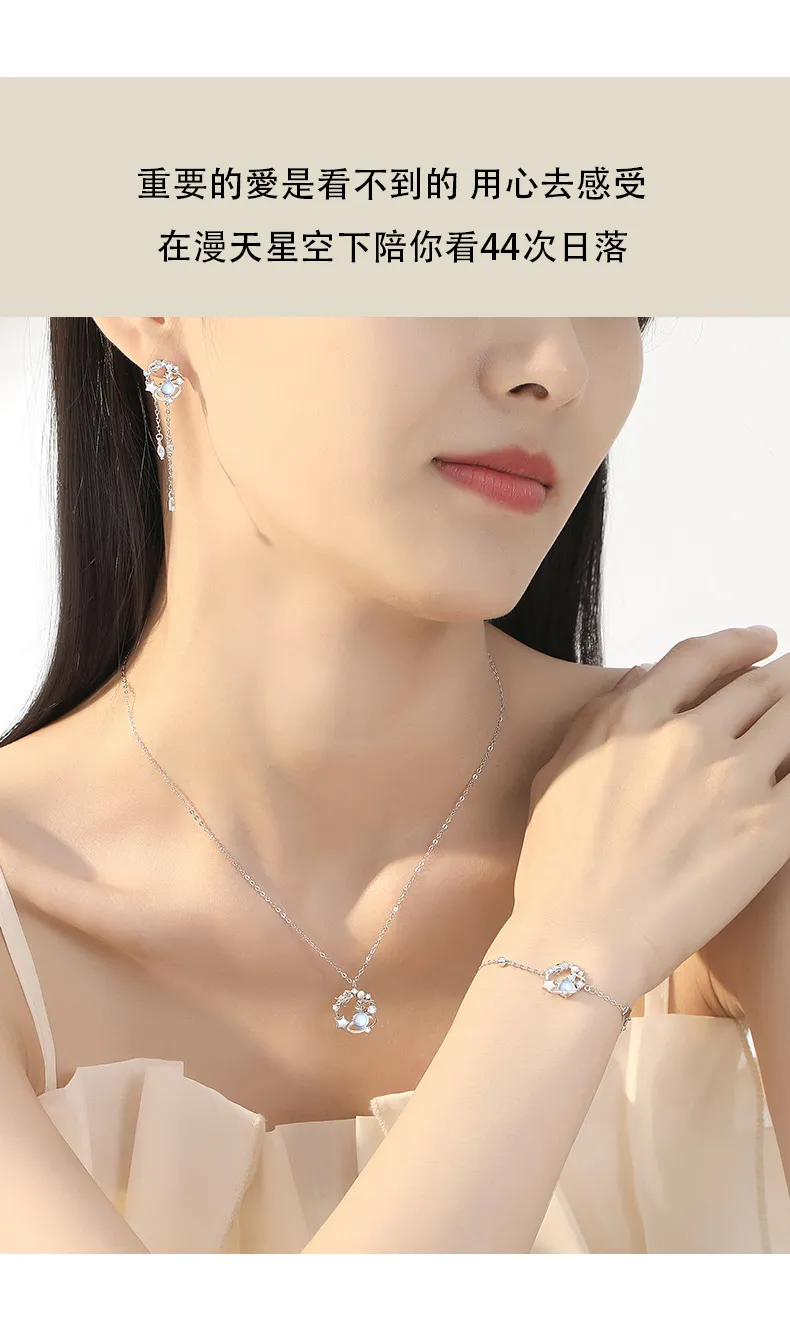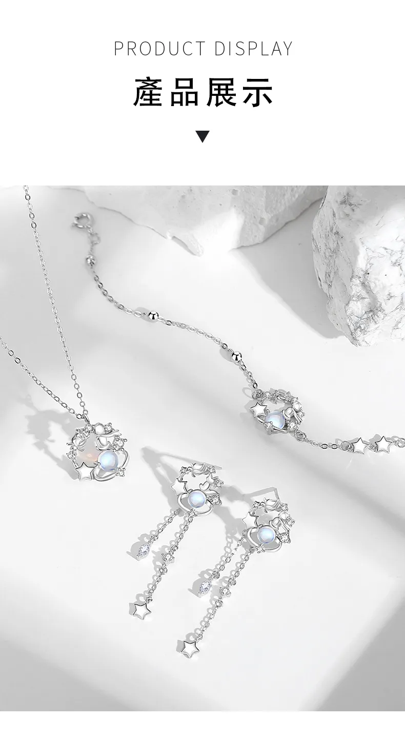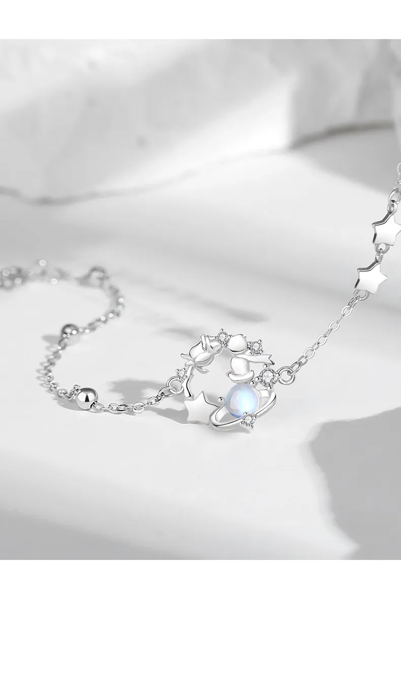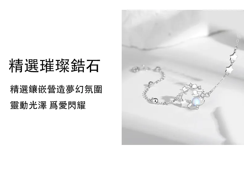 小王子的玫瑰星球守護項鍊 | 只有妳是我最愛的玫瑰 | S925純銀鑲嵌月光石 | 3D立體精雕 | 鏡面拋光 | 高級送女生禮物玫瑰星球純銀項鍊