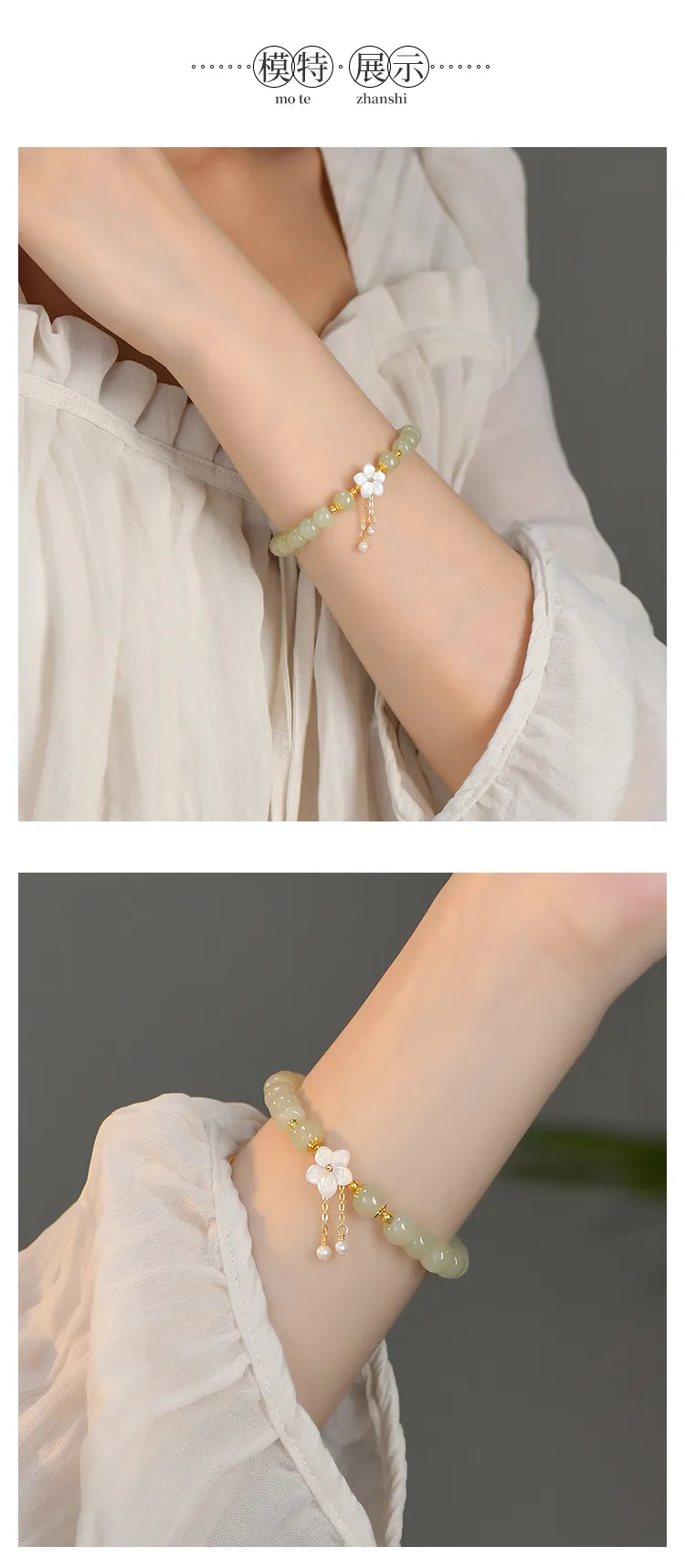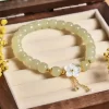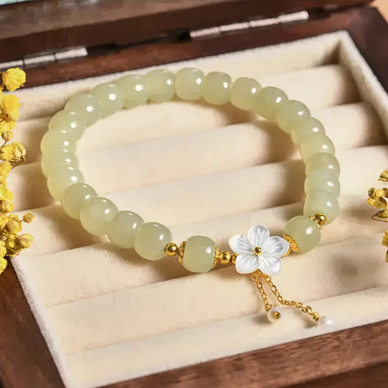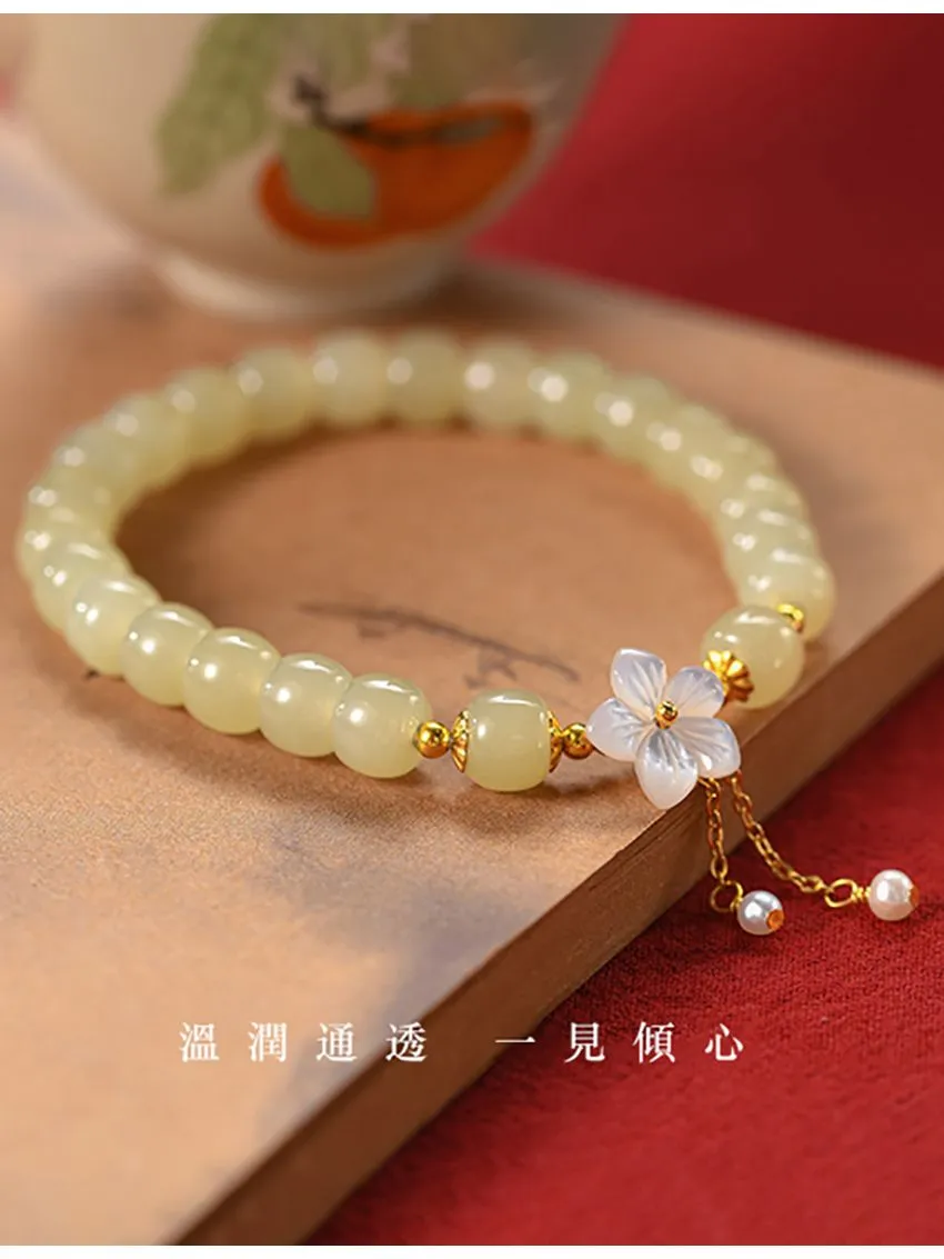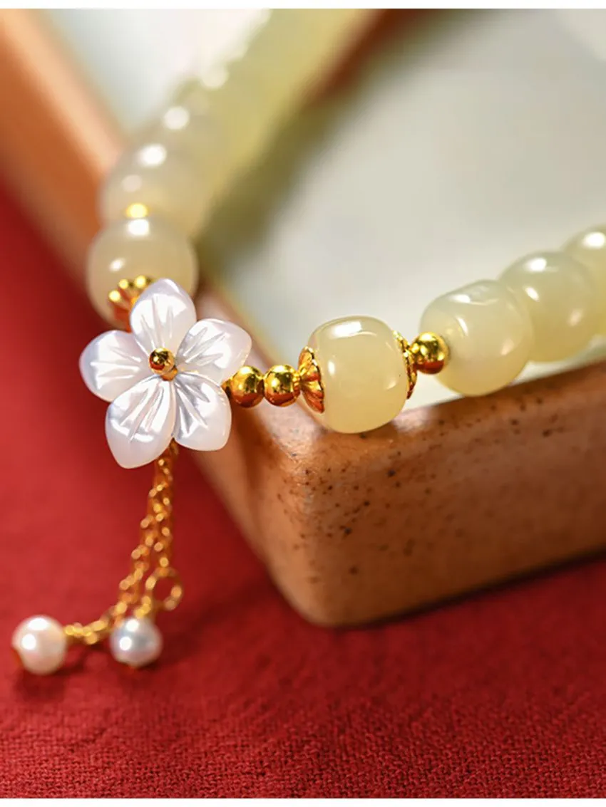 櫻花盛開邂逅真愛 | 天然和田玉手鍊 | 手工精雕櫻花流蘇 | 925純銀配件 | 高級優雅氣質天然和田玉女生手鍊手串