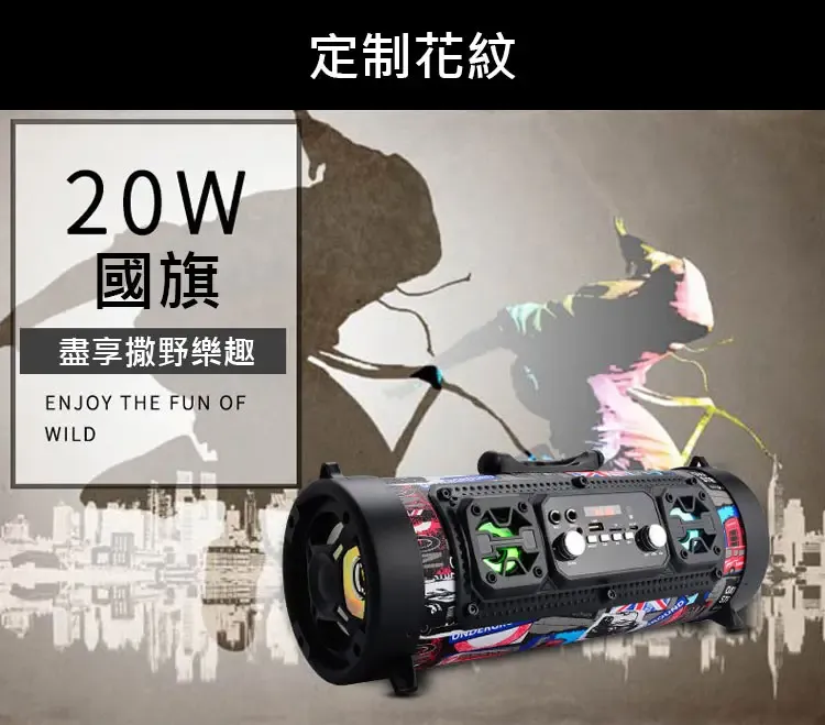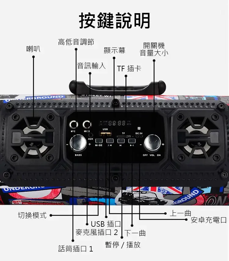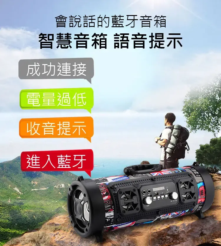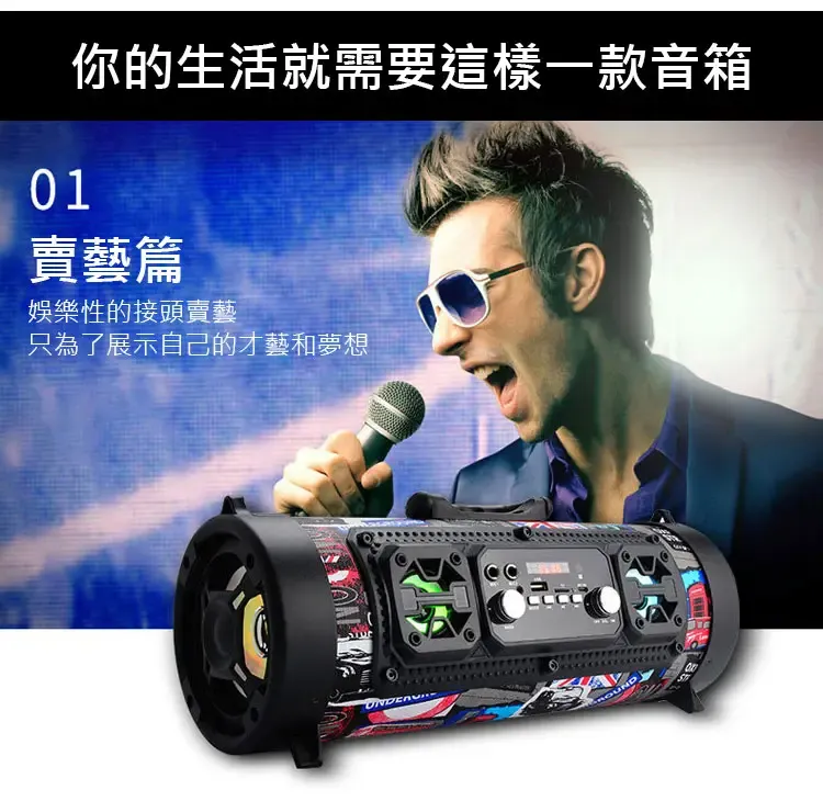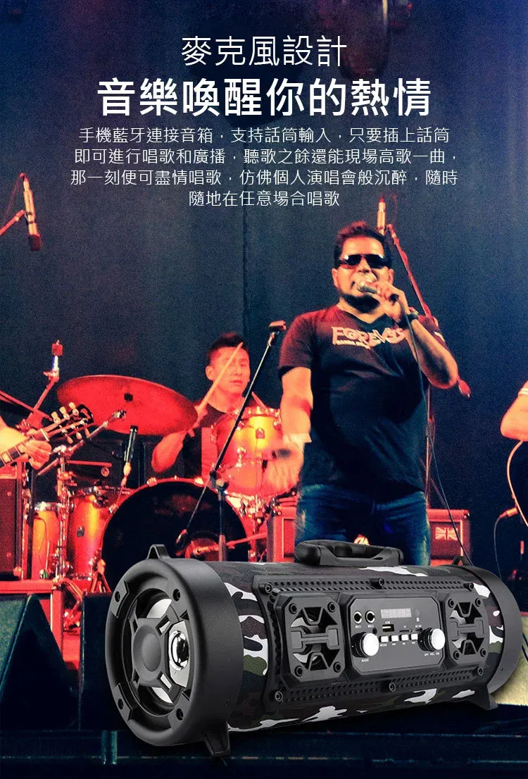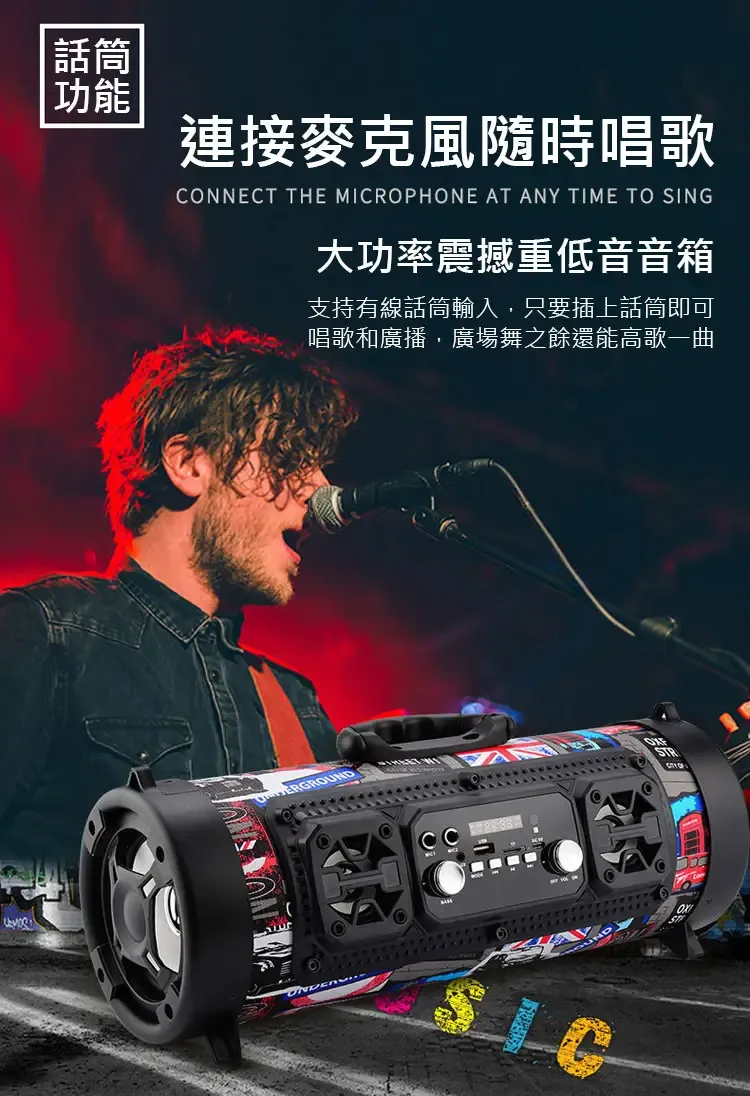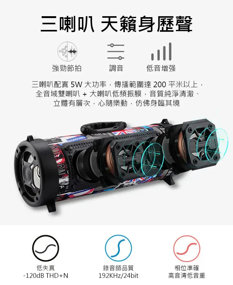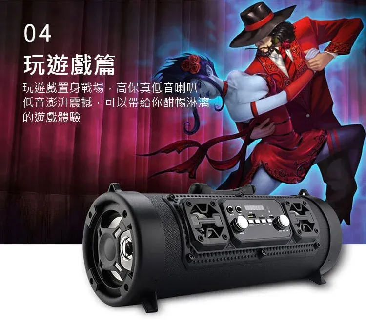 演唱會級大聲場無線藍牙喇叭 | 全音域立體三喇叭 | 震撼層次重低音 | 連接麥克風隨時唱歌 | 航母級續航 | 內建FM收音 | 全功能大功率無線藍芽喇叭