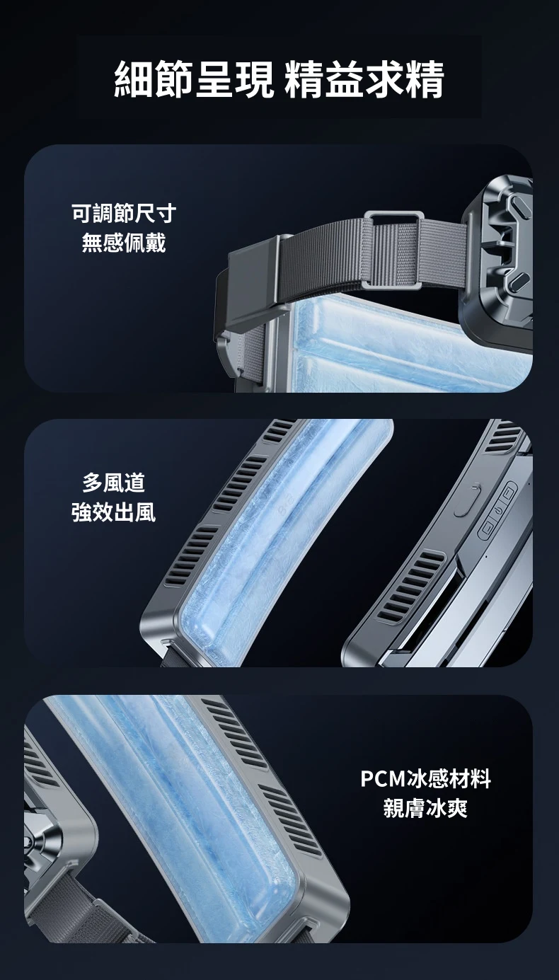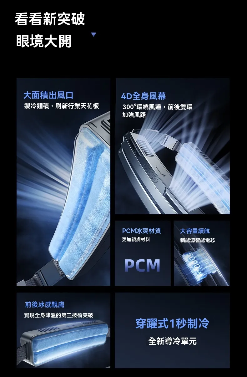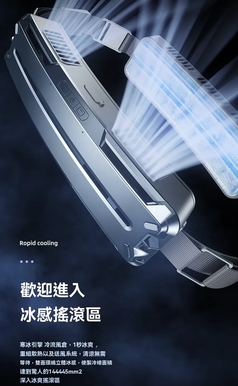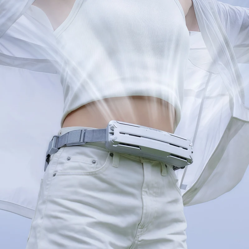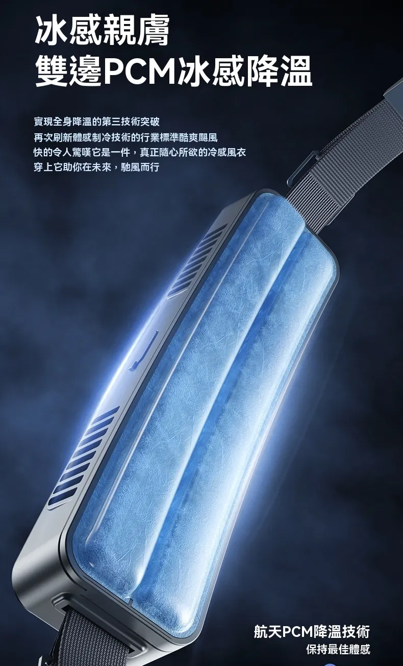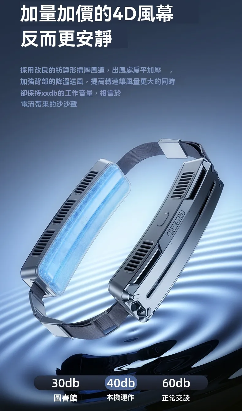 4D全身風幕鎖風環掛腰風扇 | 五驅風扇強勁大風 | 雙邊PCM冰感降溫 | 超薄氣凝膠導冷膜 | 航母級超長續航 | 黑科技未來感鎖風環掛腰風扇