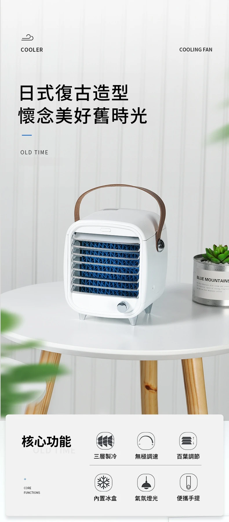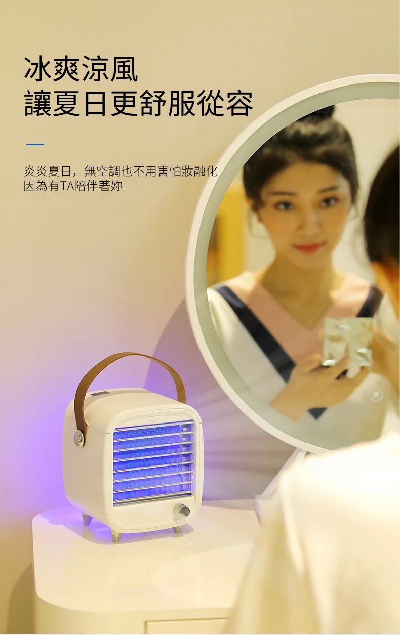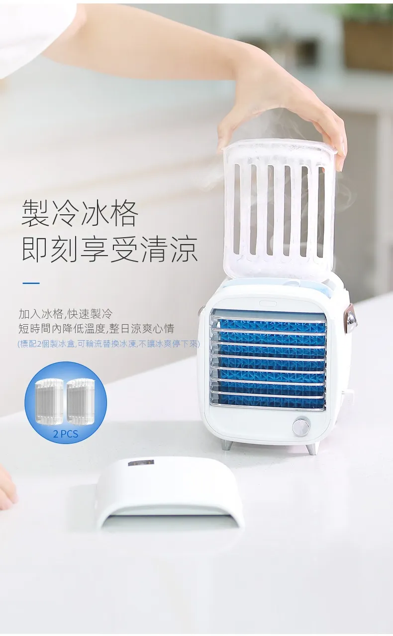 極地冰爽個人微型冷氣機 | 日式設計復古造型 | 無極調速隨你所想 | 內置冰格極速酷涼 | 一鍵開啟氣氛燈光 | 個人水冷空調扇隨身小冷氣機