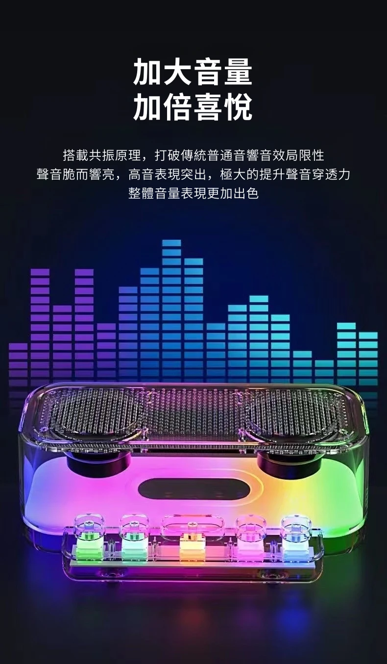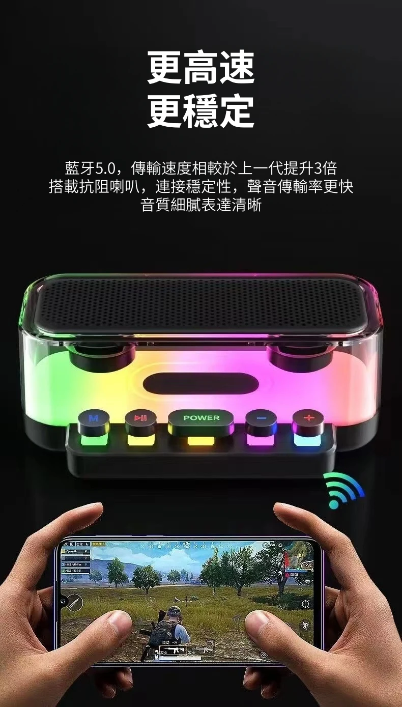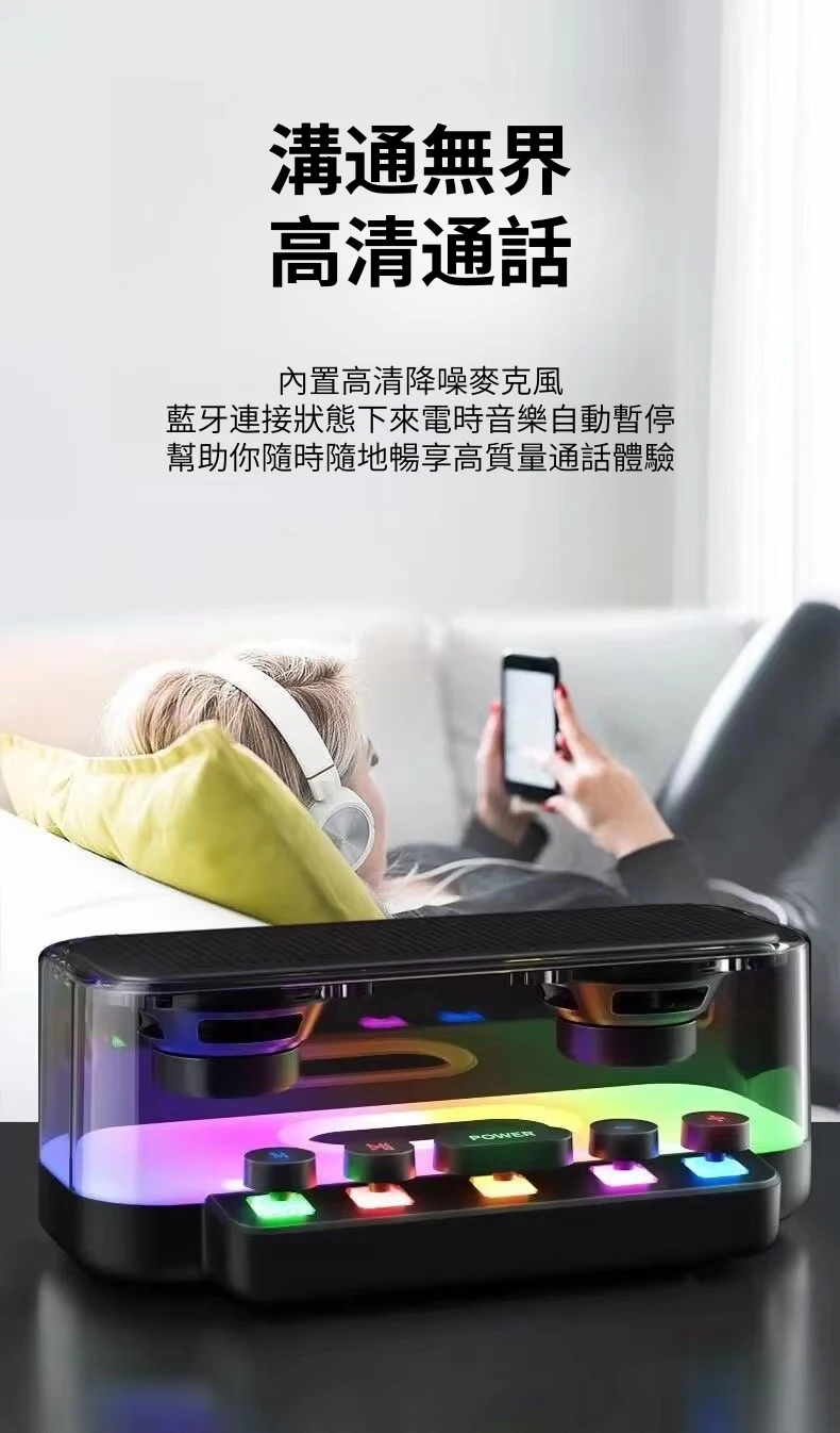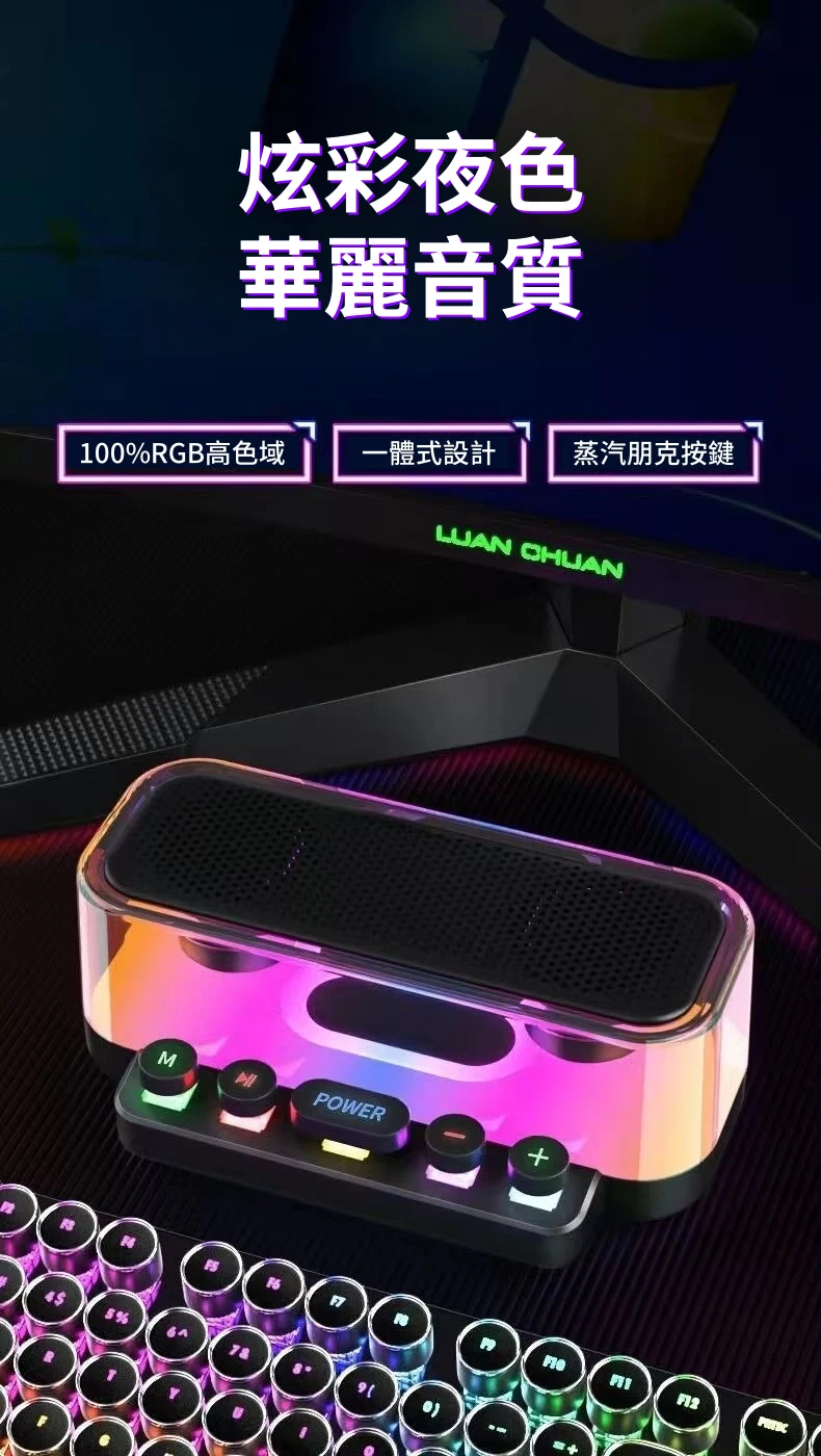 賽博朋克風無線藍芽喇叭 | 專業級調音校準 | 高清降噪通話 | RGB幻彩呼吸燈 | 爽快機械按鍵 | 全系統支援 | 炫彩個性桌面潮搭無線藍牙喇叭音響