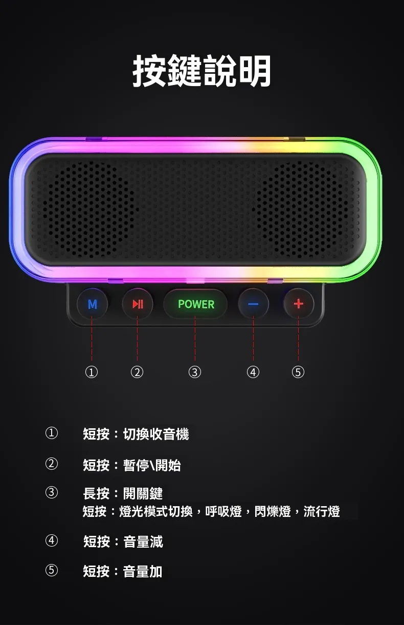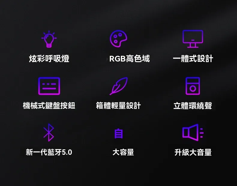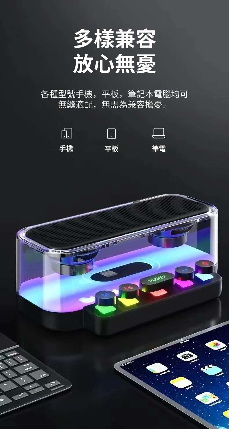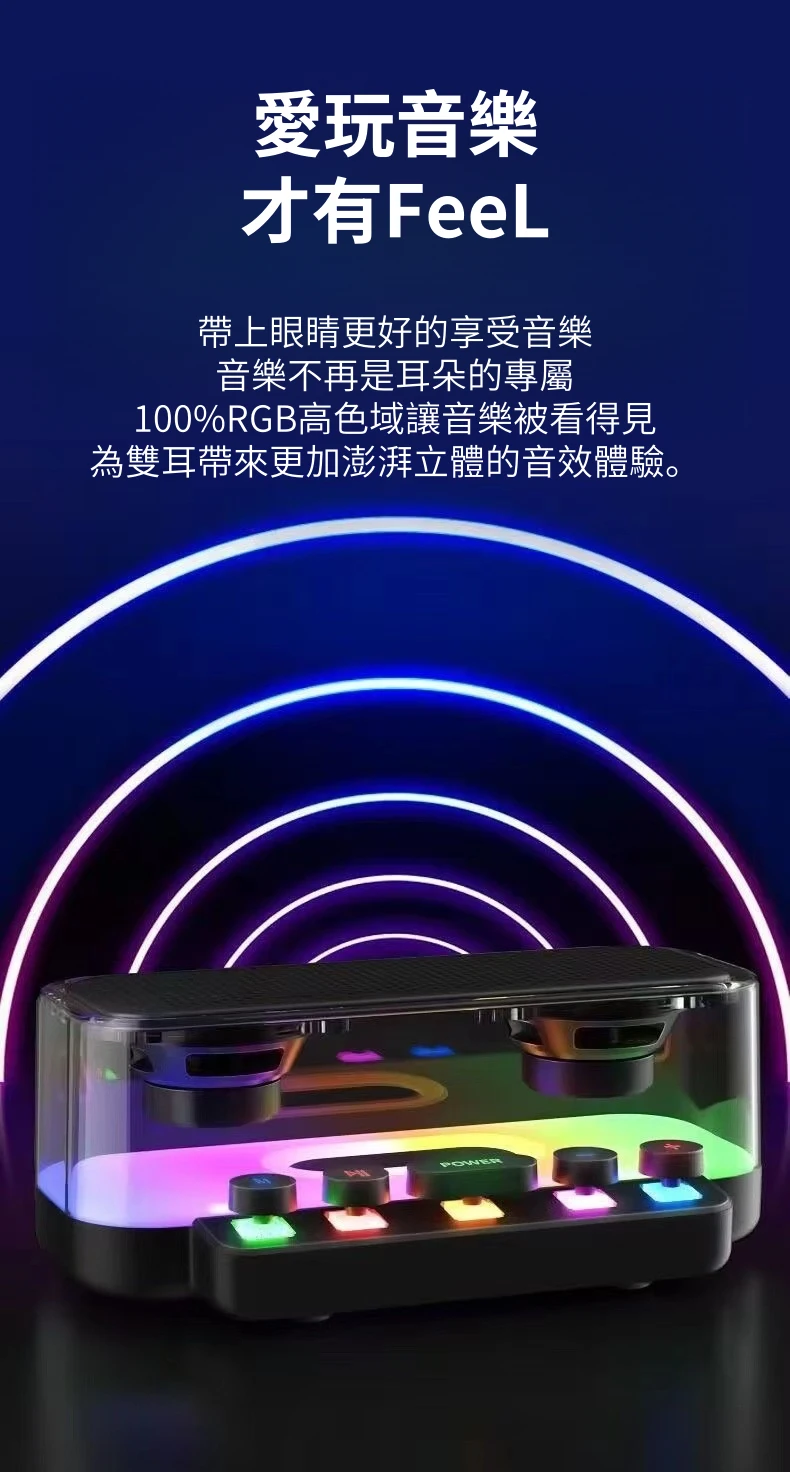 賽博朋克風無線藍芽喇叭 | 專業級調音校準 | 高清降噪通話 | RGB幻彩呼吸燈 | 爽快機械按鍵 | 全系統支援 | 炫彩個性桌面潮搭無線藍牙喇叭音響
