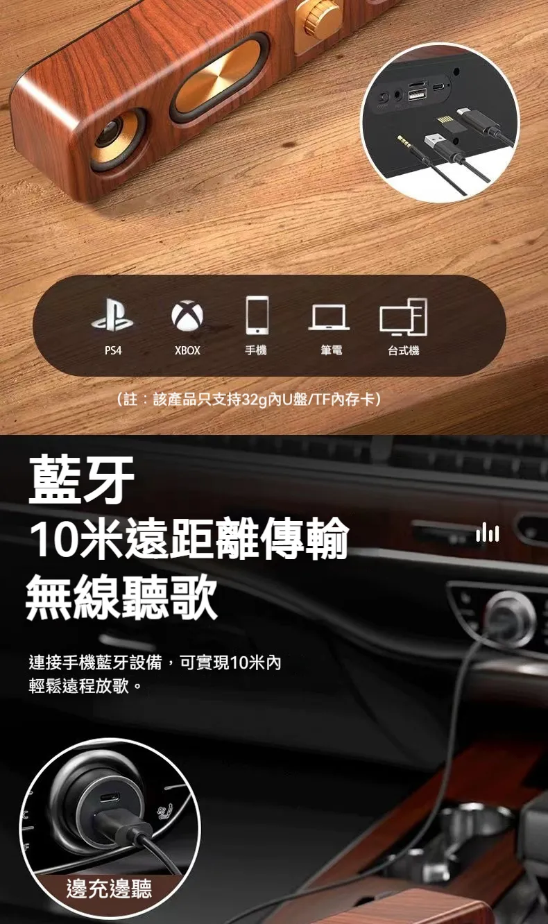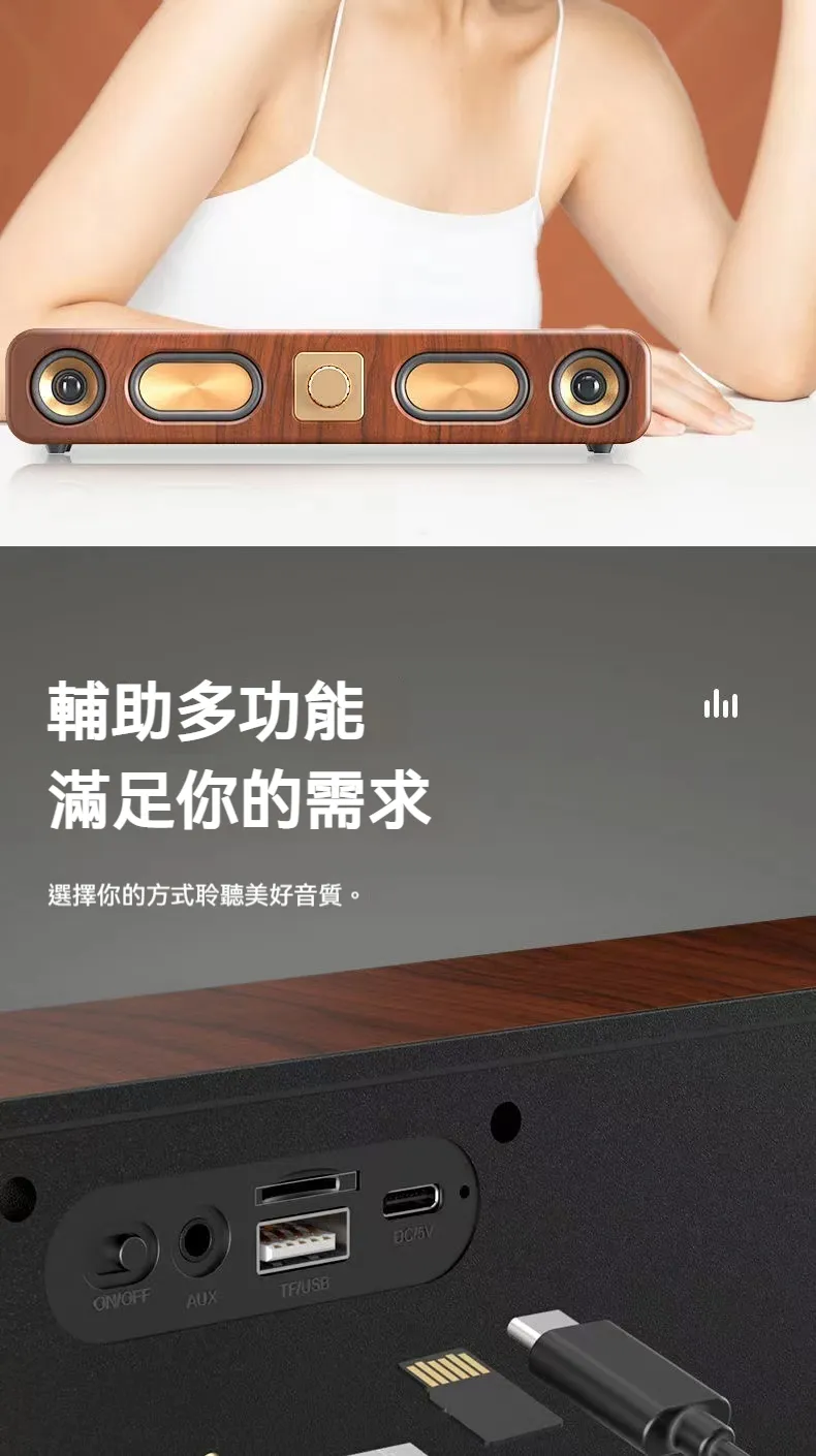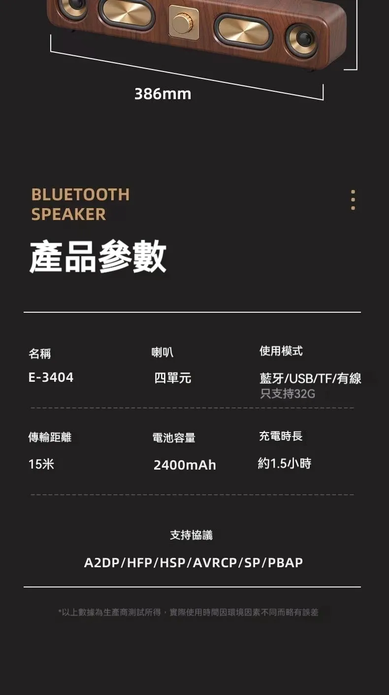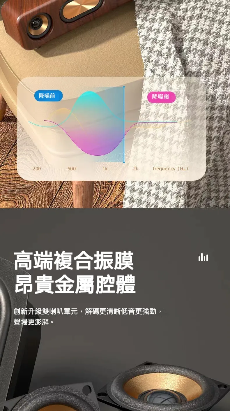 古典式雅緻木紋無線藍芽喇叭 | 四單元環繞音浪 | 復合振膜金屬腔體 | 有線無線自由切換 | 高中低音三頻均衡 | 航母級續航 | 高級無線藍牙喇叭音響