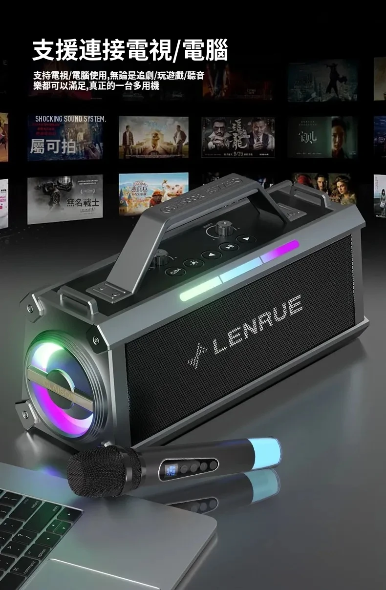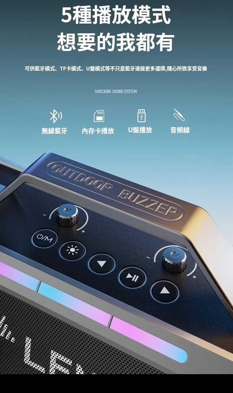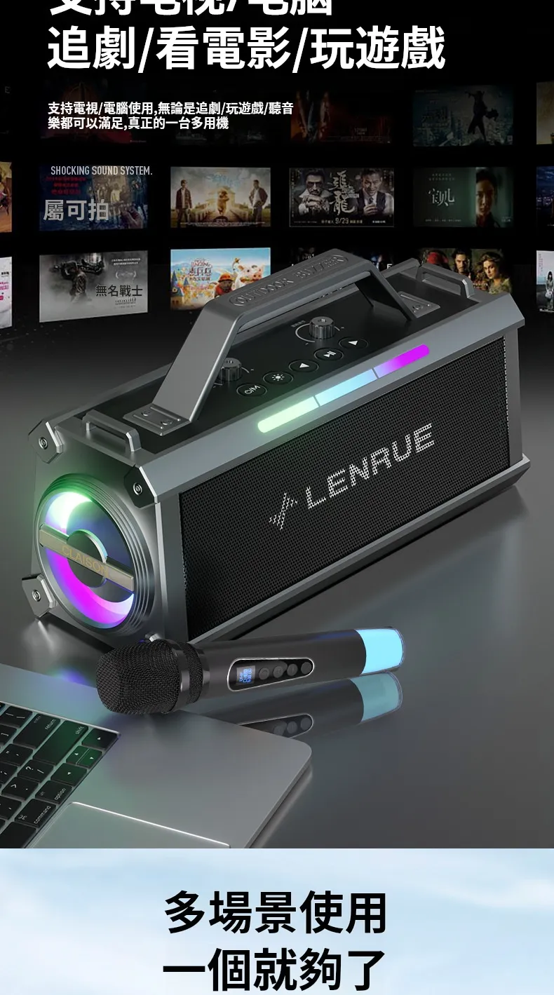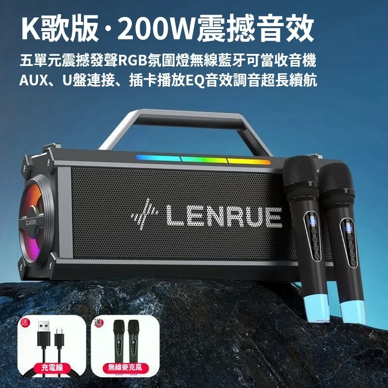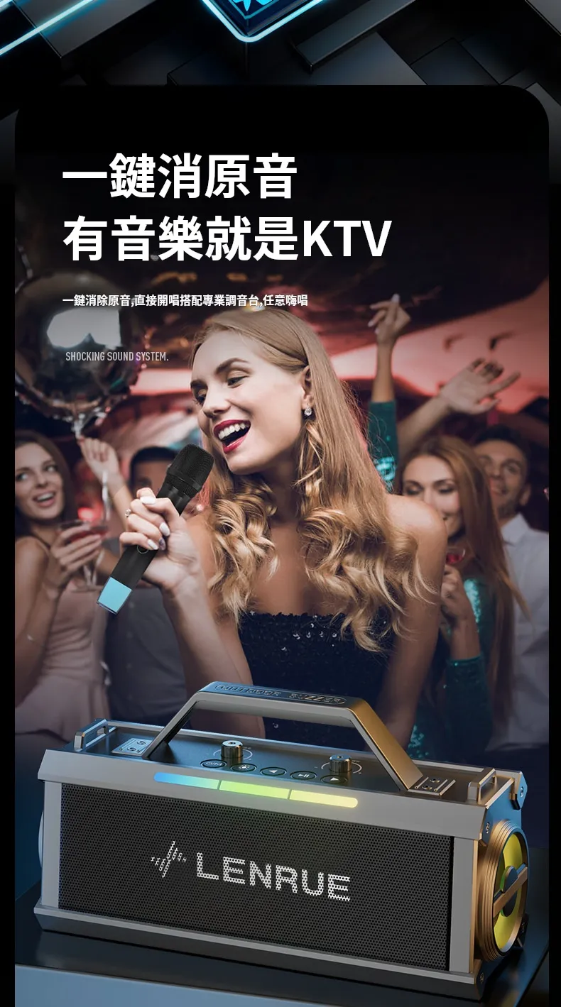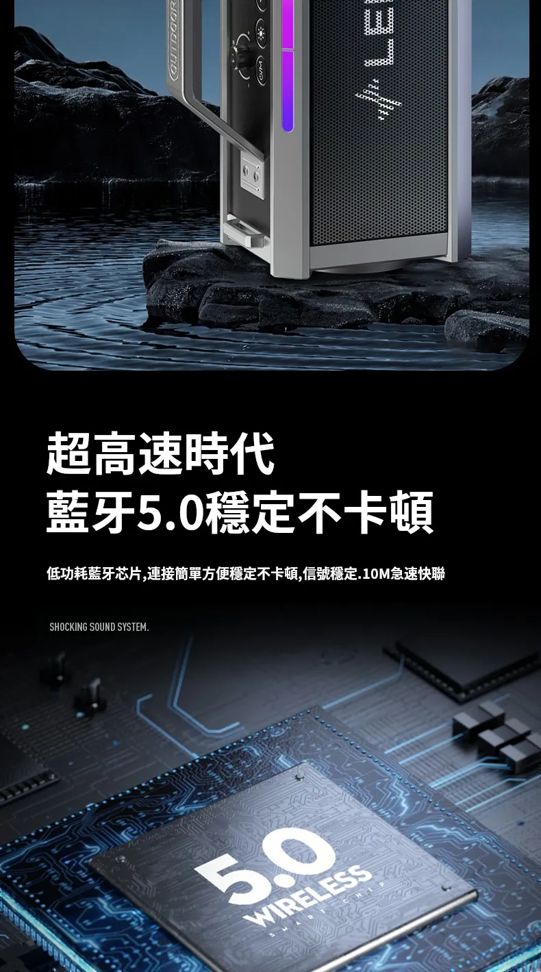 舞台級震撼大聲場無線藍芽喇叭麥克風套組 | 附送雙麥克風 | 五喇叭發聲單元 | 環繞立體澎湃音效 | DSP高保真音頻處理 | 七彩律動大光圈