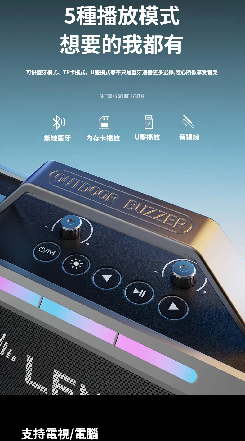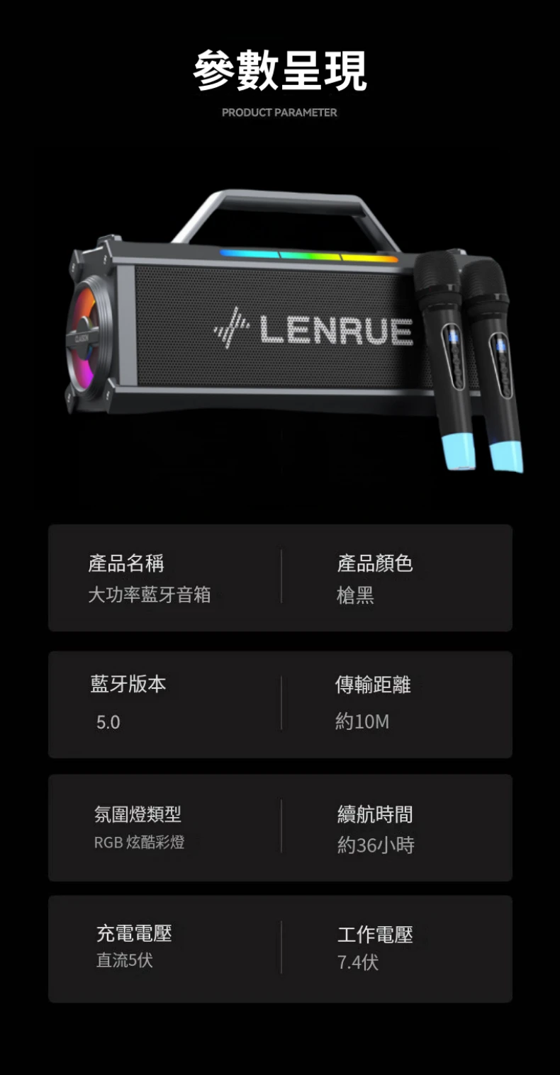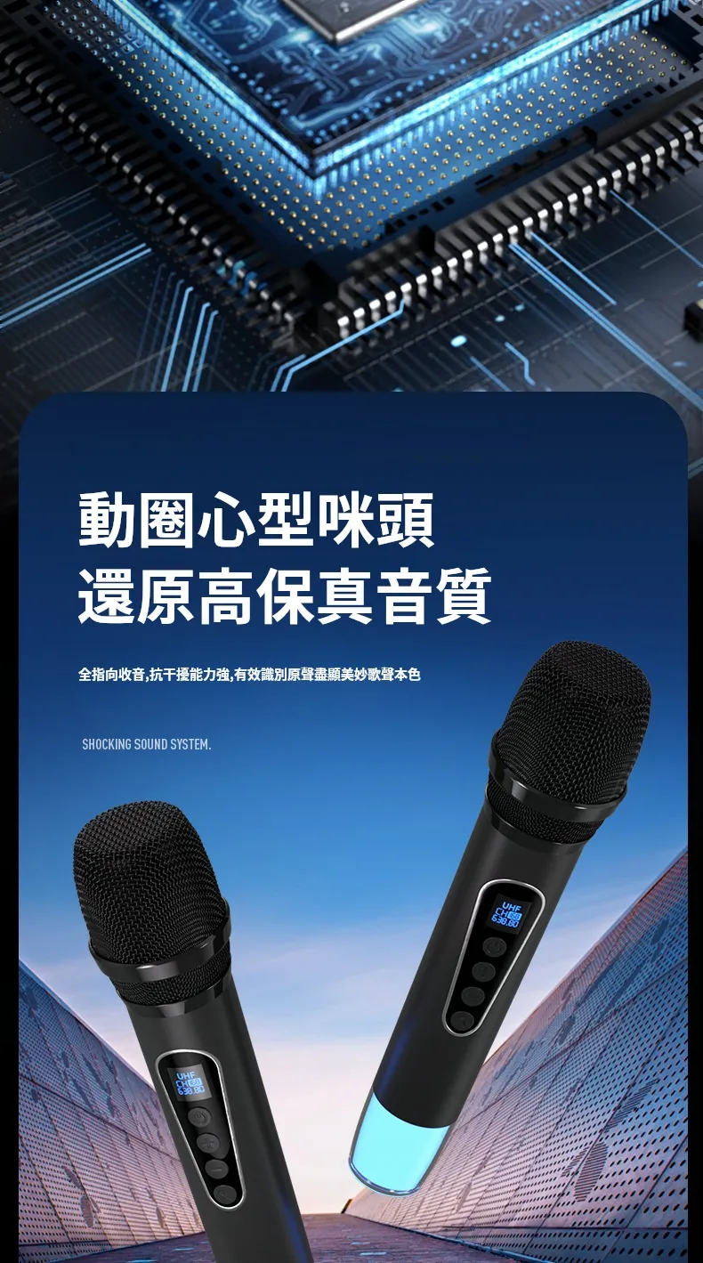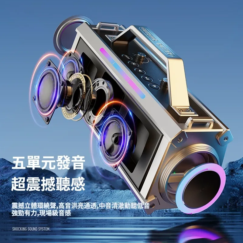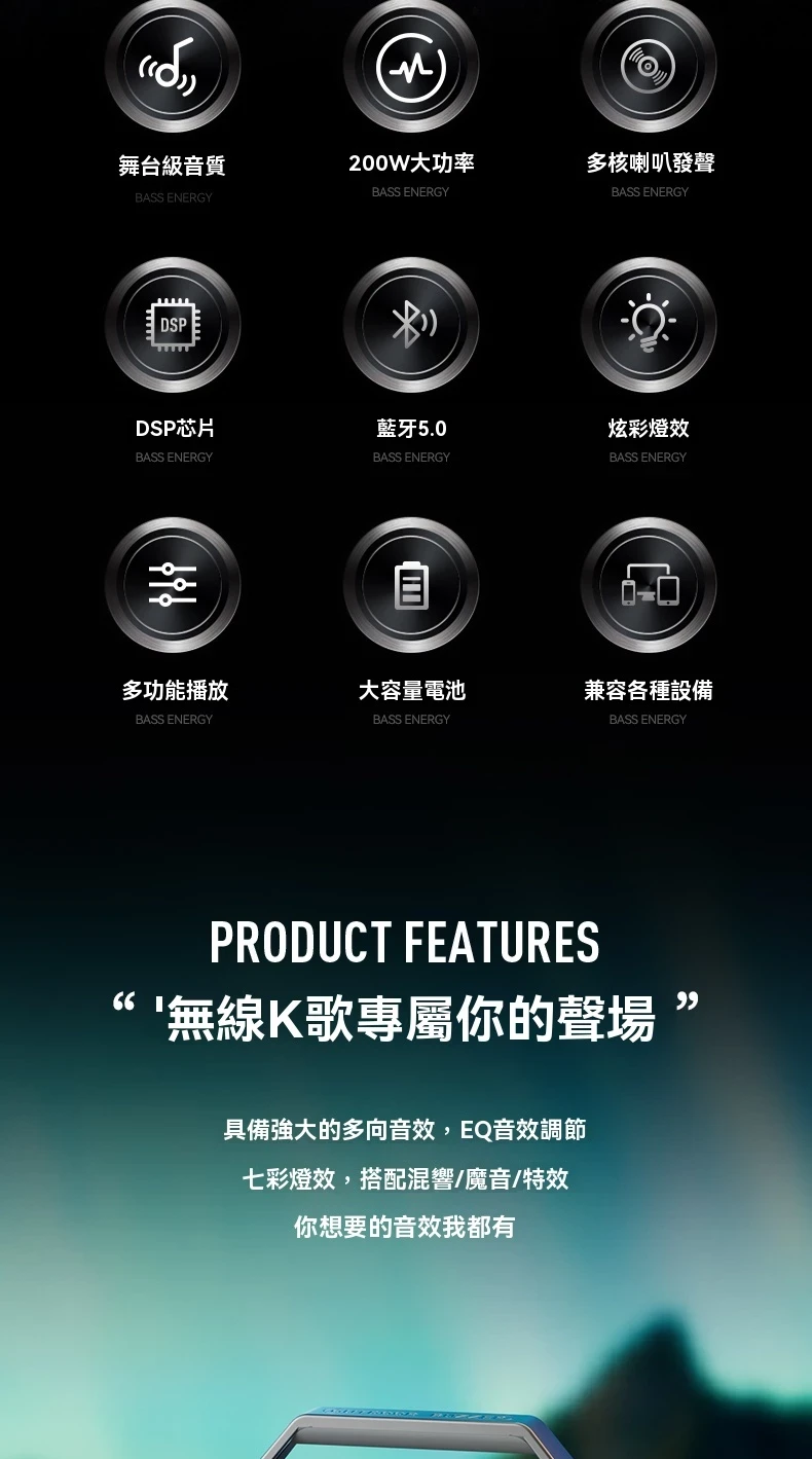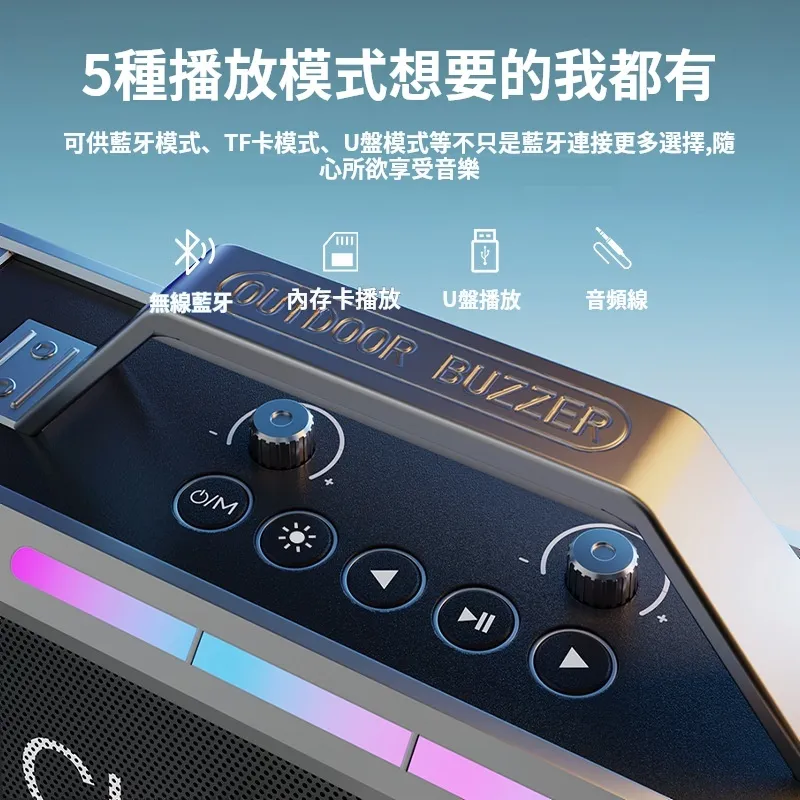 舞台級震撼大聲場無線藍芽喇叭麥克風套組 | 附送雙麥克風 | 五喇叭發聲單元 | 環繞立體澎湃音效 | DSP高保真音頻處理 | 七彩律動大光圈