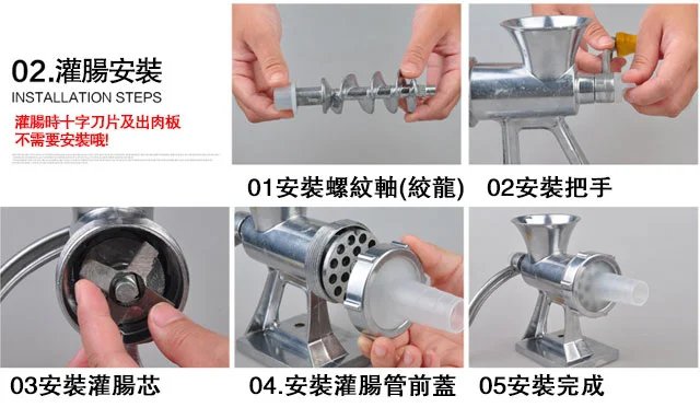 產品功能:1.絞肉丁 2.擠面條 3.灌香腸 4.磨咖啡.豆漿等