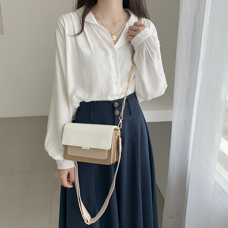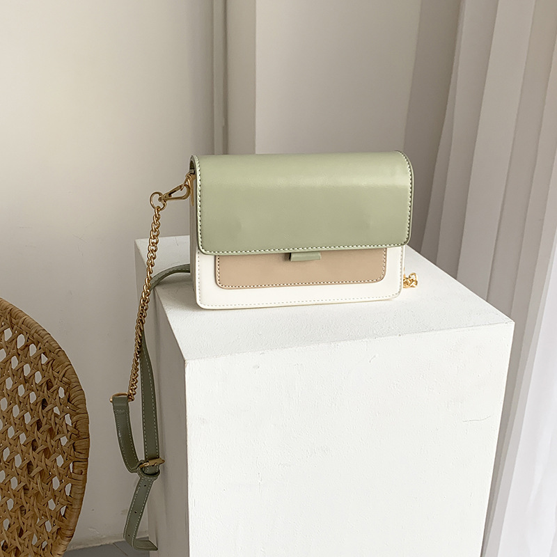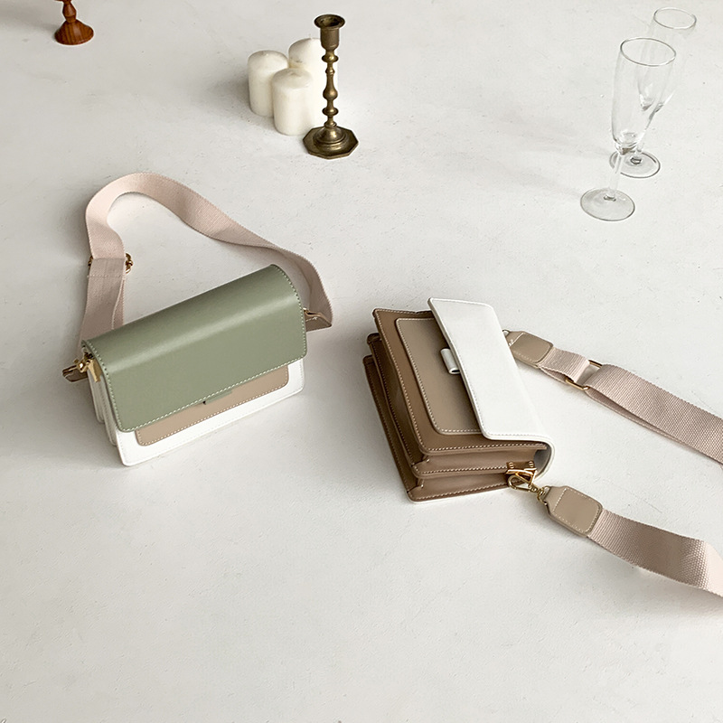 日系糖果色拼色舒適帆布寬肩帶小方包單肩斜背側背包