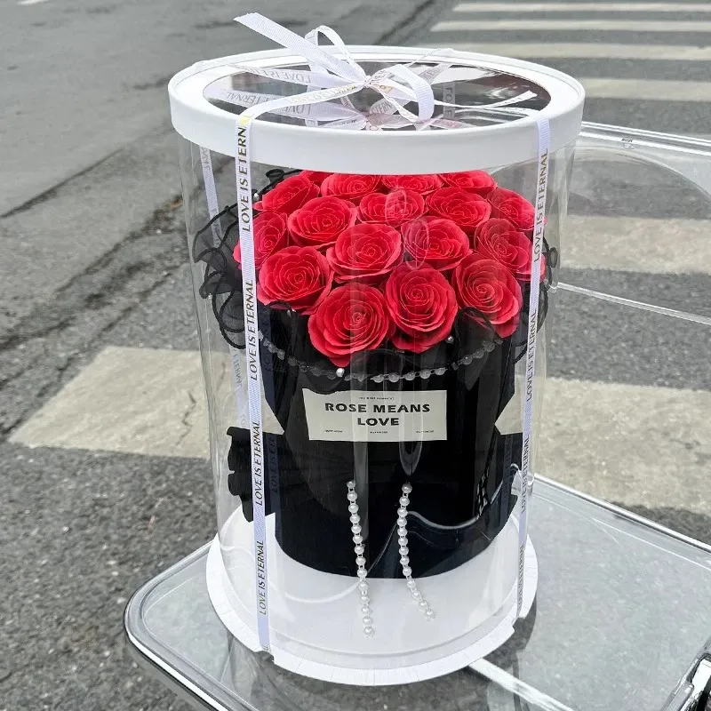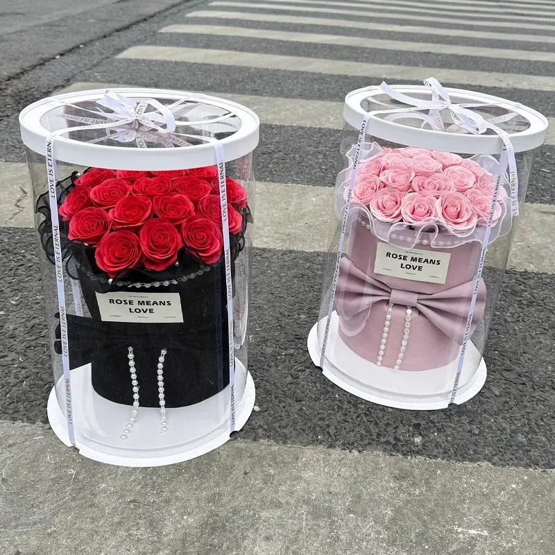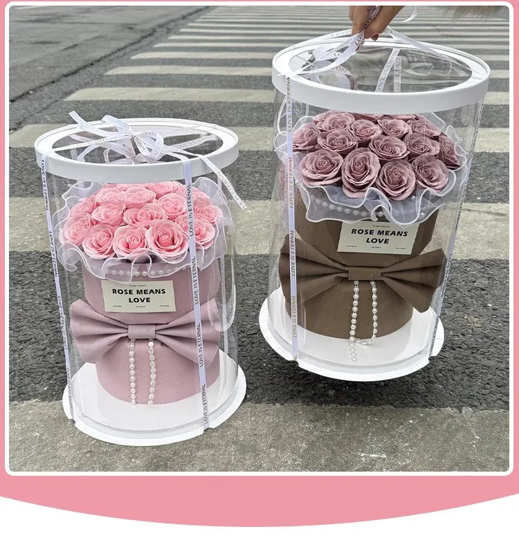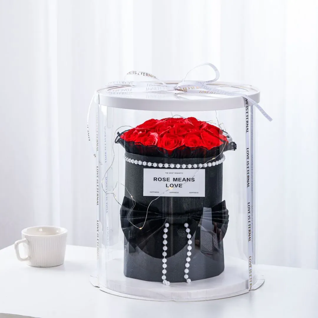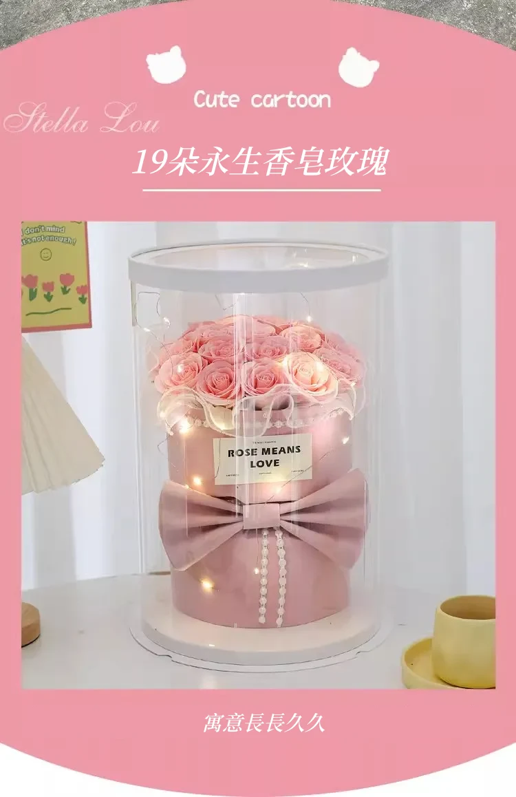 濃情蜜戀19朵永生玫瑰花束禮盒 | 優雅蝴蝶結珍珠花托 | 高級香水皂玫工藝 | 浪漫甜蜜送女友禮物八年持久保鮮19朵永生玫瑰花束禮盒