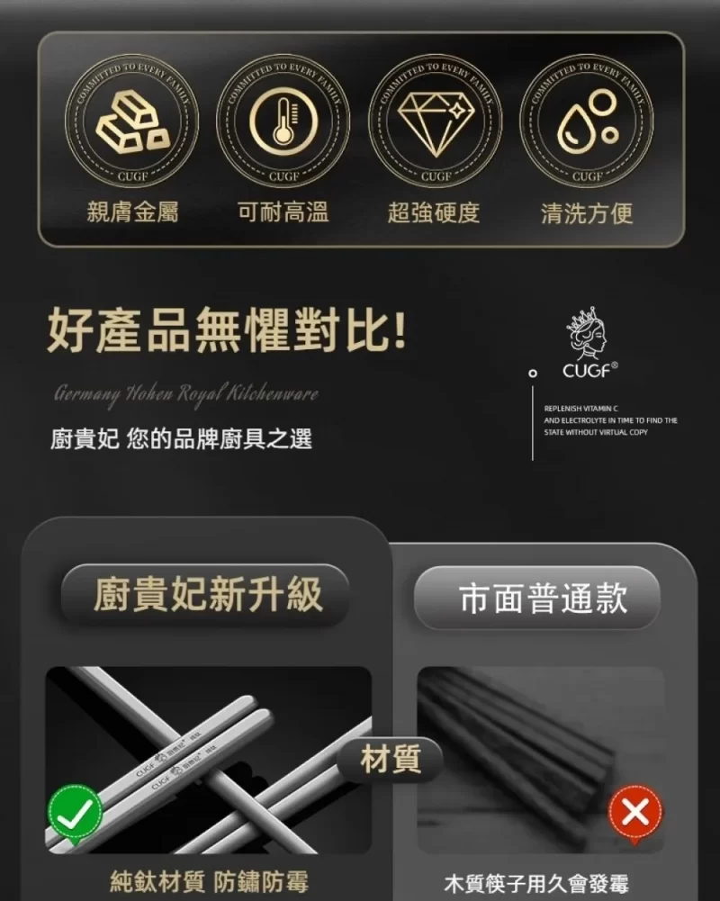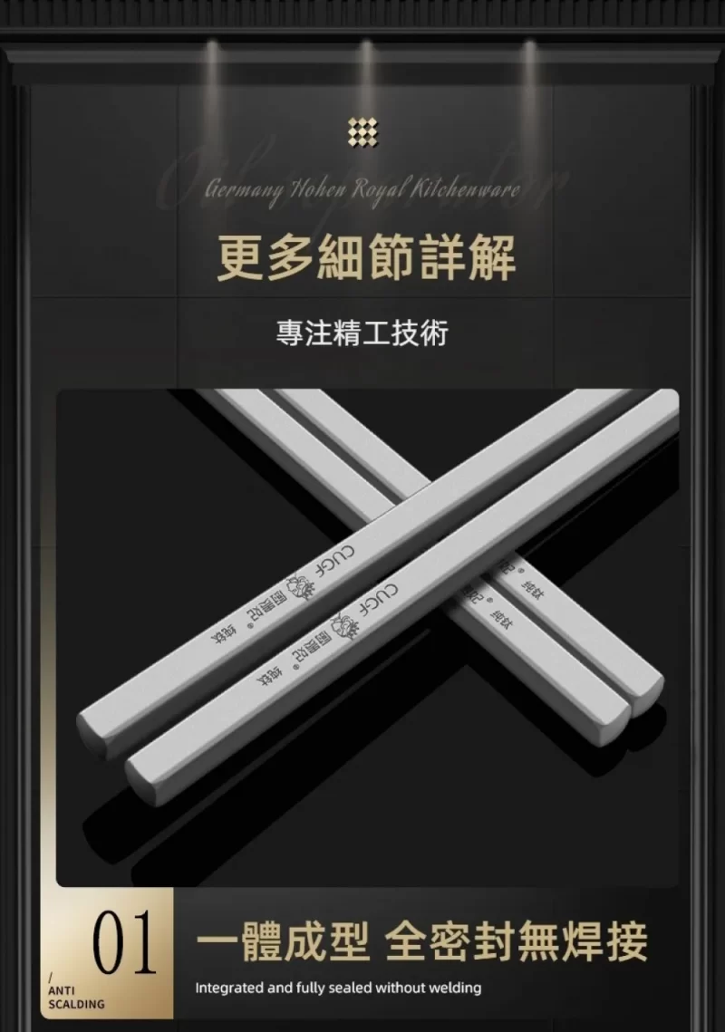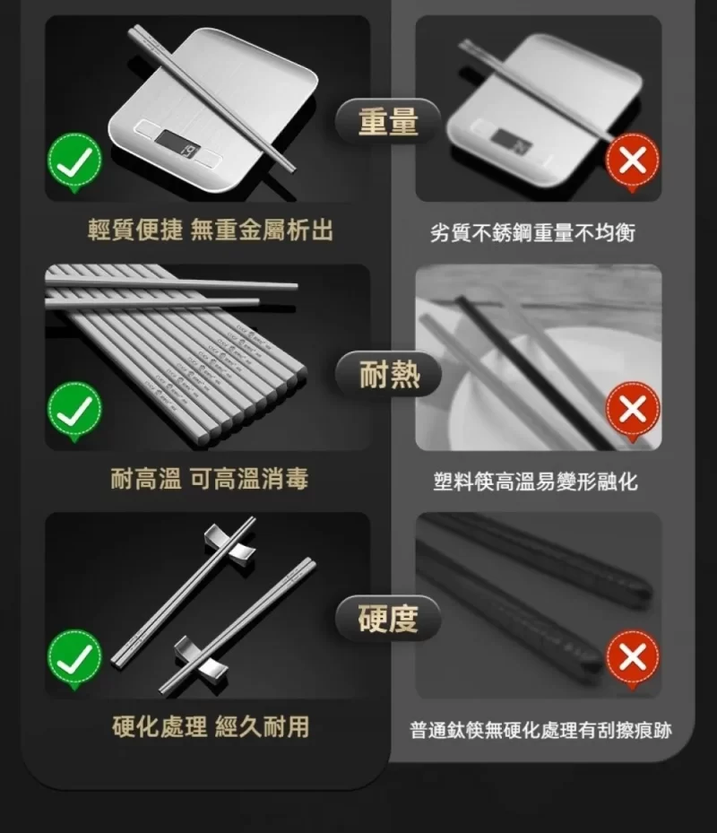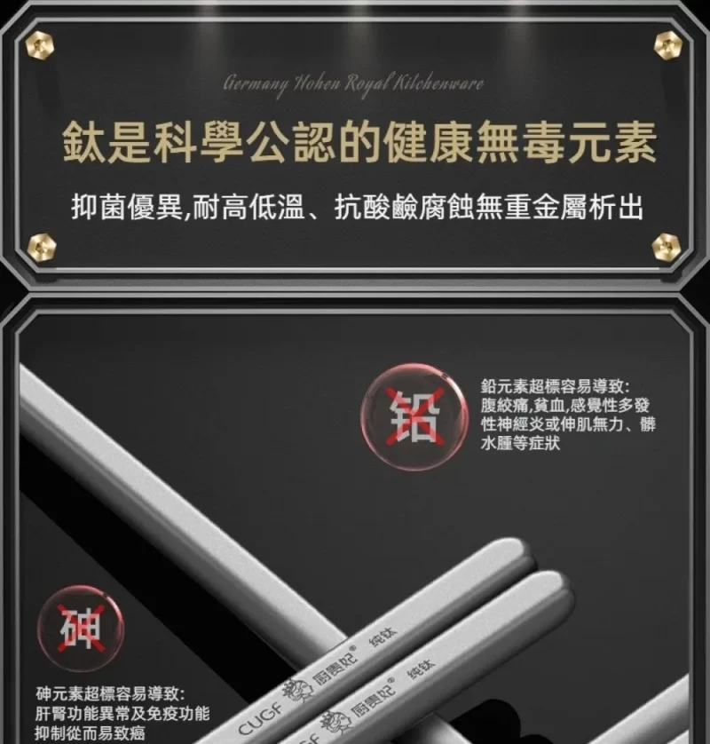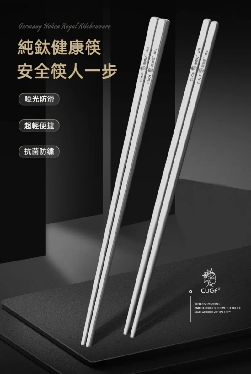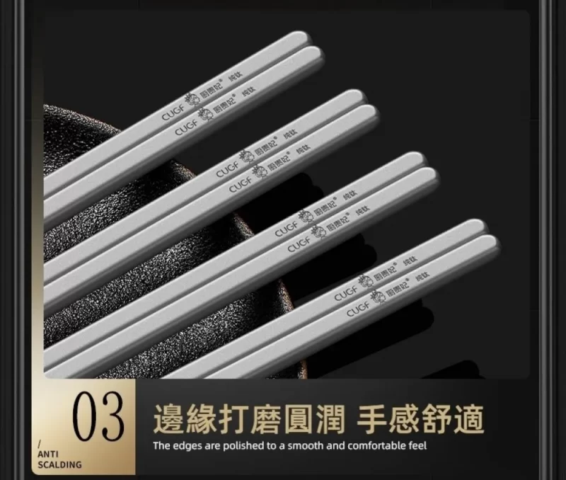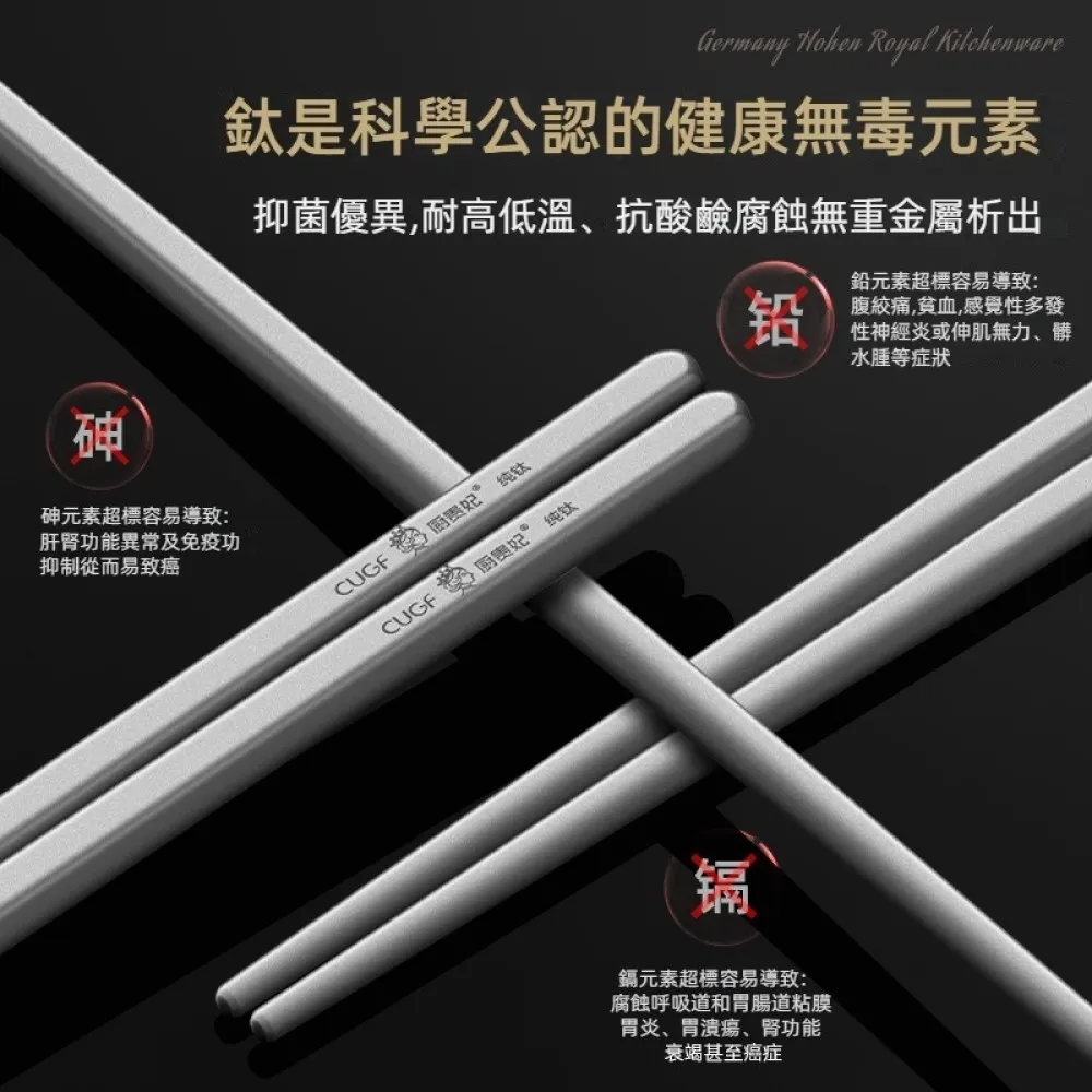 五雙入 | 奢級零塗層純鈦健康筷子 | 抑菌抗酸零重金屬析出 | 耐腐防鏽防霉耐高溫 | 啞光防滑不溜菜 | 一體成型密封無焊接 | CUGF高級純鈦筷子