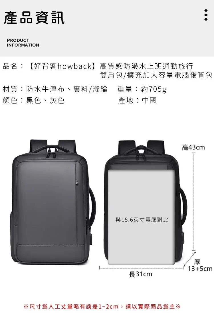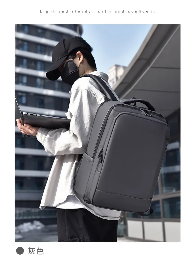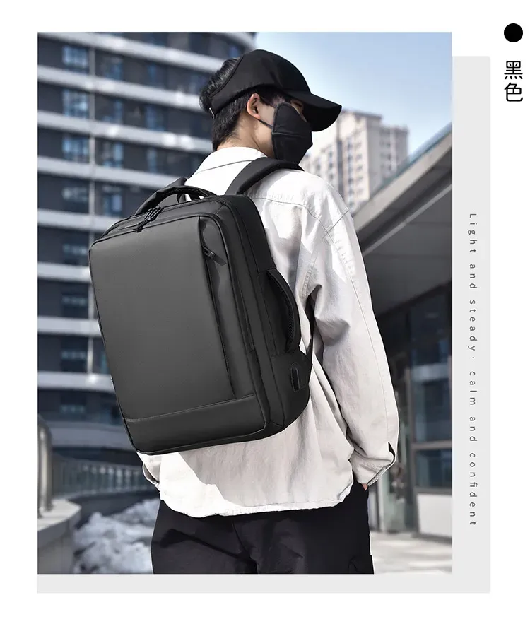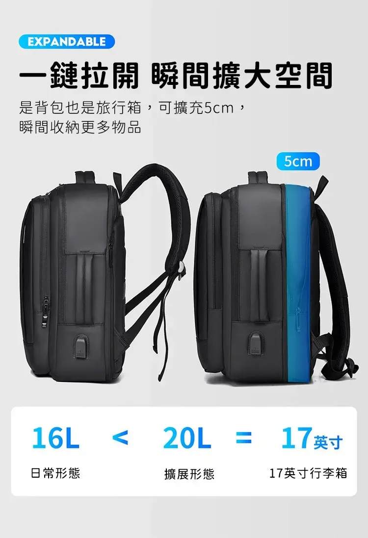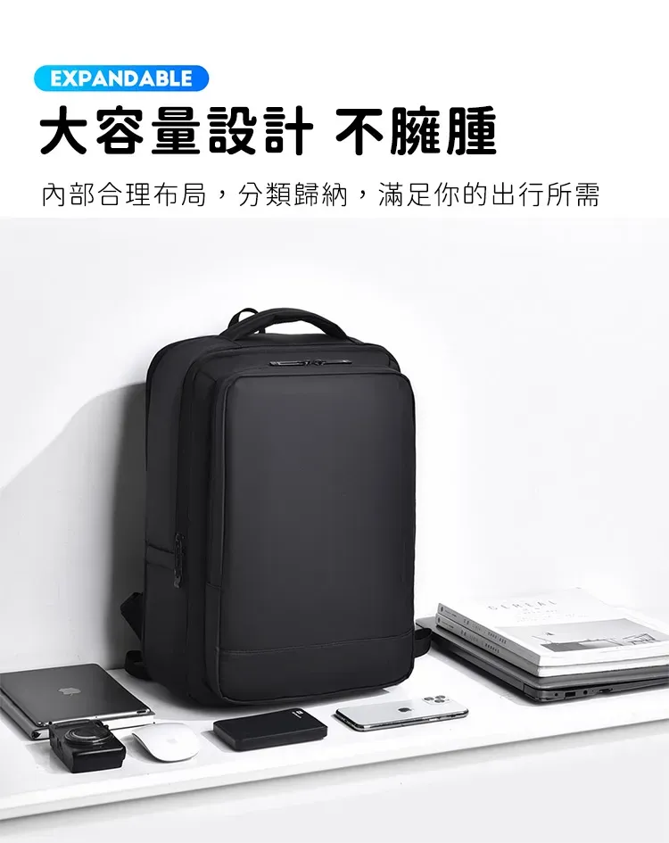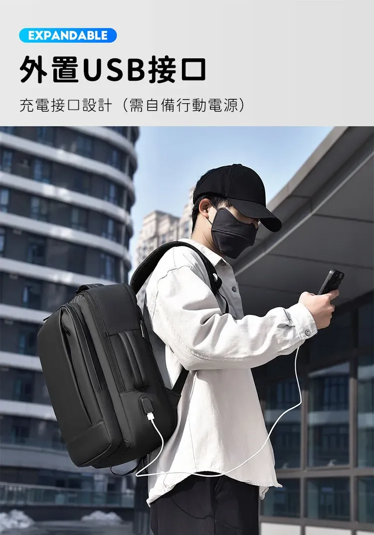 專業級商旅後背包 | 擴容式包體設計 | 人體工學背負減壓 | 外置USB線纜接口 | 耐磨防潑水面料 | 立體透氣蜂巢背部 | 商務休閒通勤男士雙肩後背包