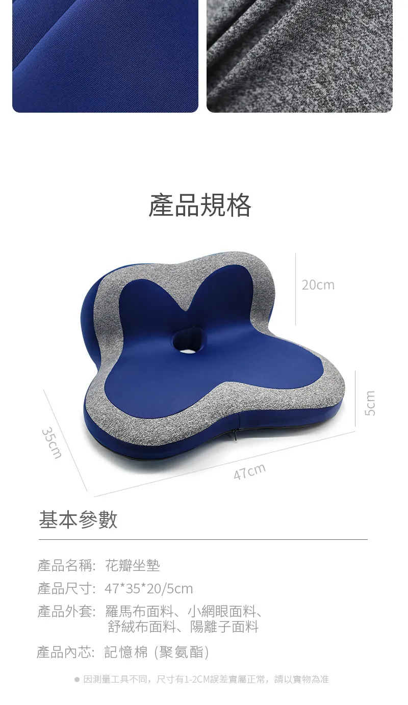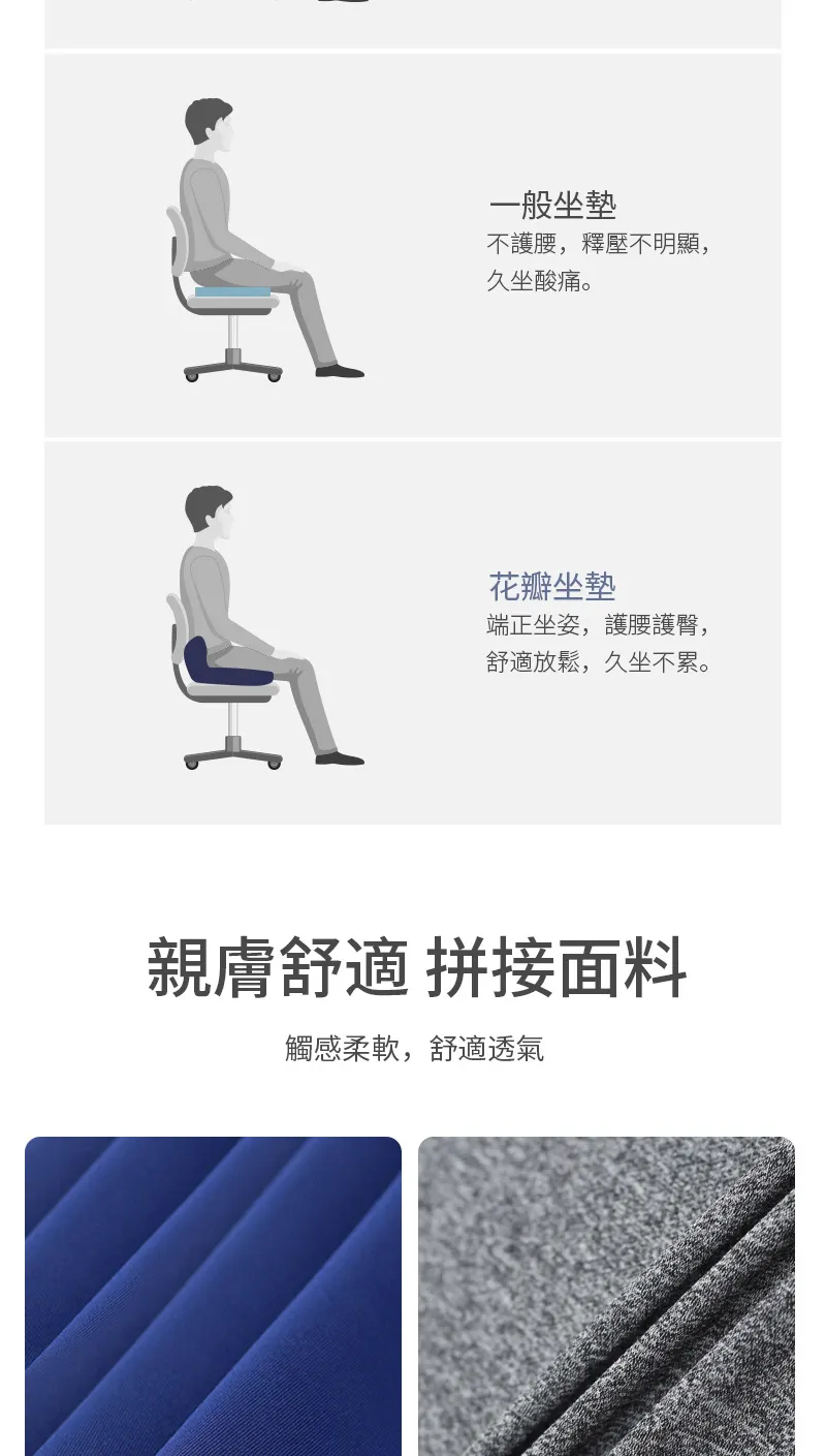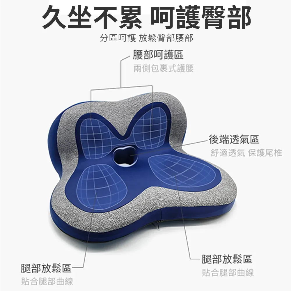 護腰護臀雙效美體減壓坐墊 | 中空設計呵護尾椎 | 兩翼包裹式護腰 | 貼合腿部曲線 | 慢回彈記憶棉芯 | 居家辦公花瓣美型腰臀雙效中空減壓坐墊