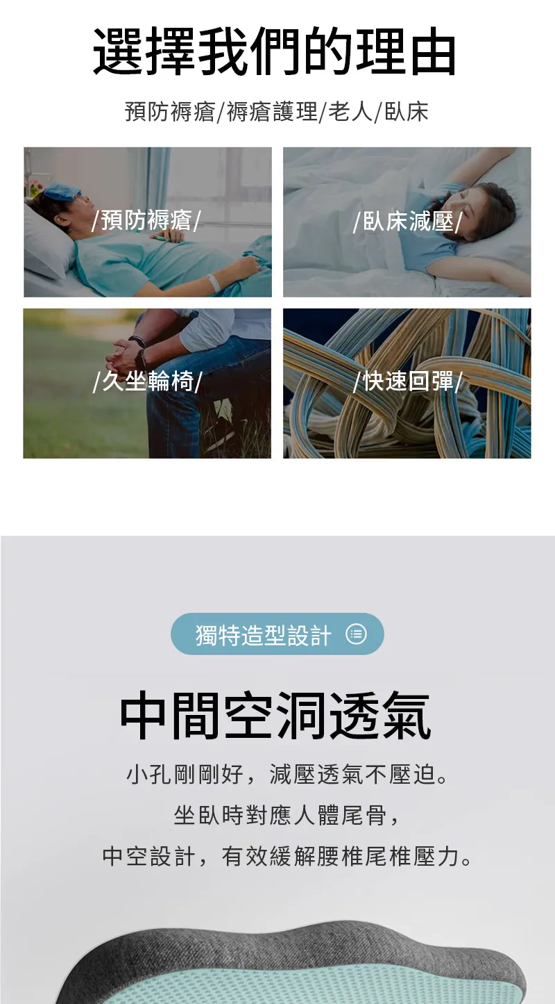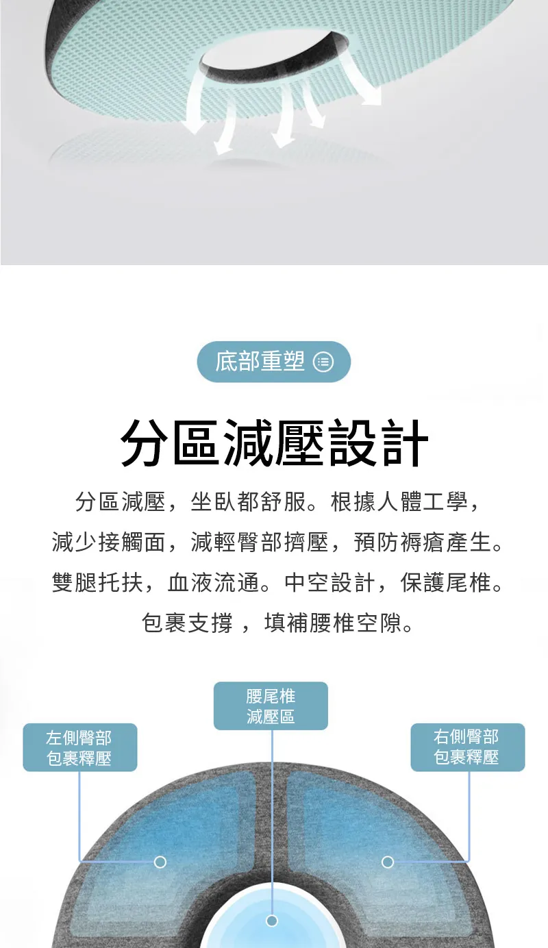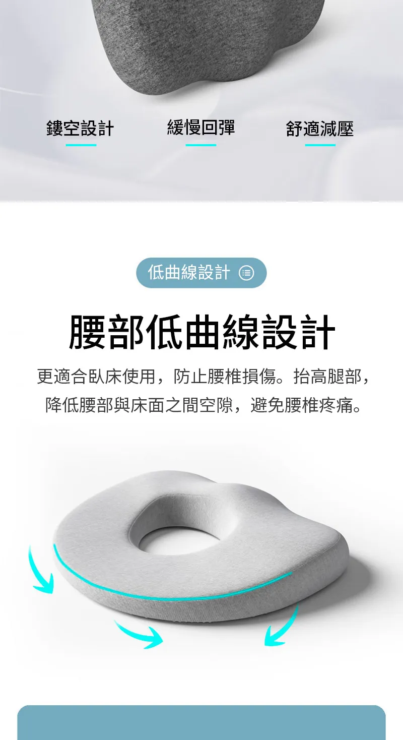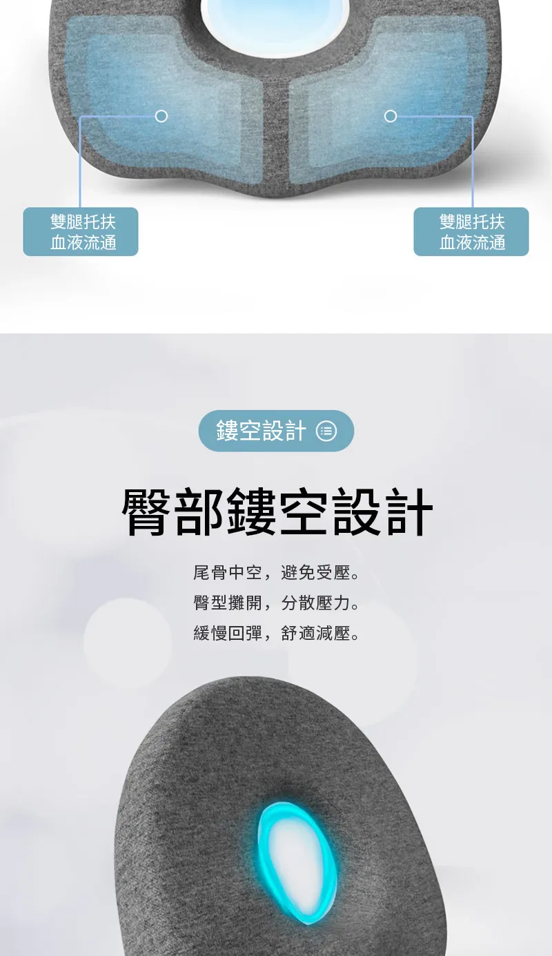 懸浮尾椎零受力減壓坐墊 | 可坐可躺不會痛 | 無縫貼合臀部曲線 | 人體工學分區釋壓 | 慢回彈舒適棉芯 | 加大中空設計多功能尾椎減壓坐墊