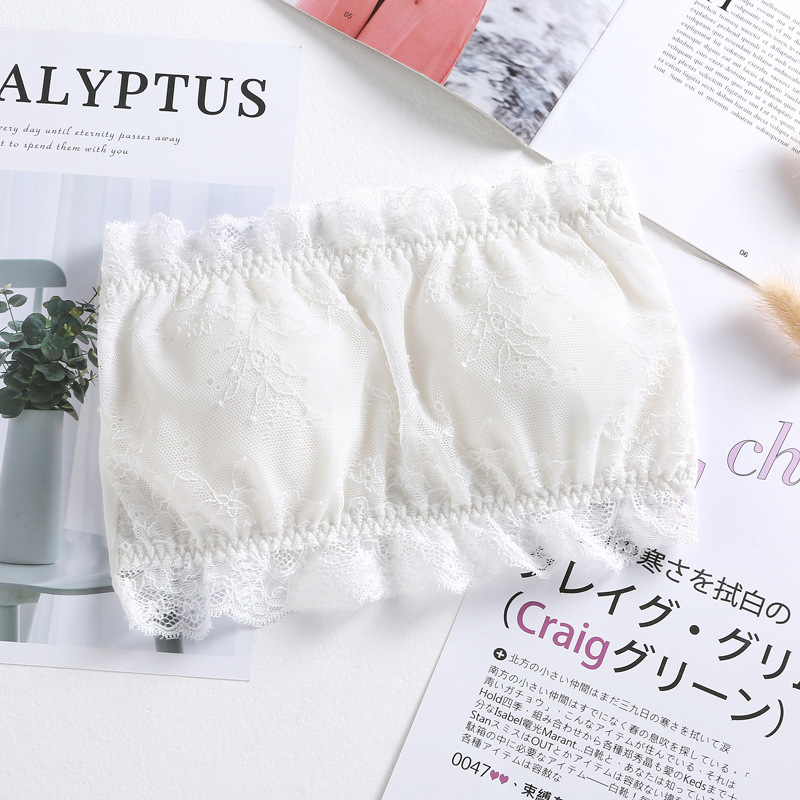 【日式無肩帶蕾絲抹胸】【100%蠶絲】日式無肩帶防走光蕾絲美背蠶絲內衣抹胸