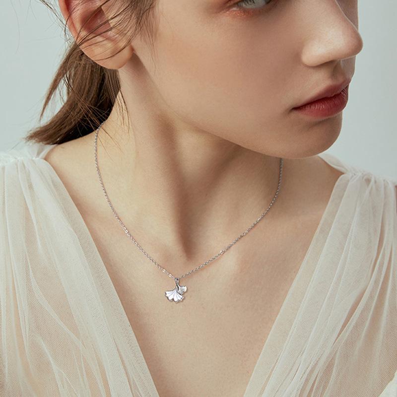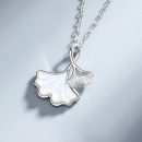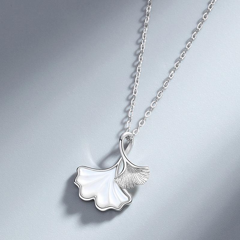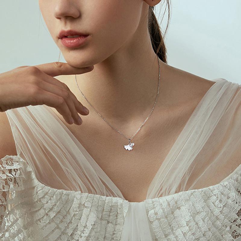 【三生有杏】S925純銀高級感南洋母貝銀杏葉吊墜氣質女鎖骨鍊項鍊