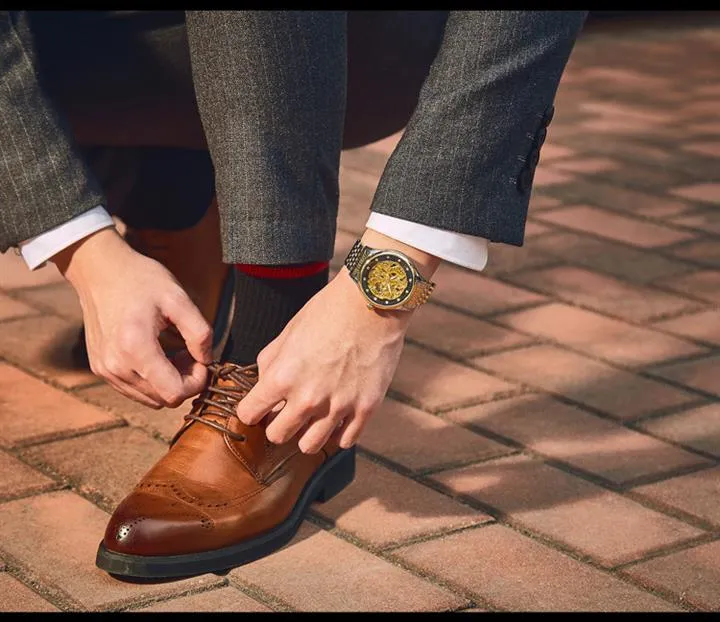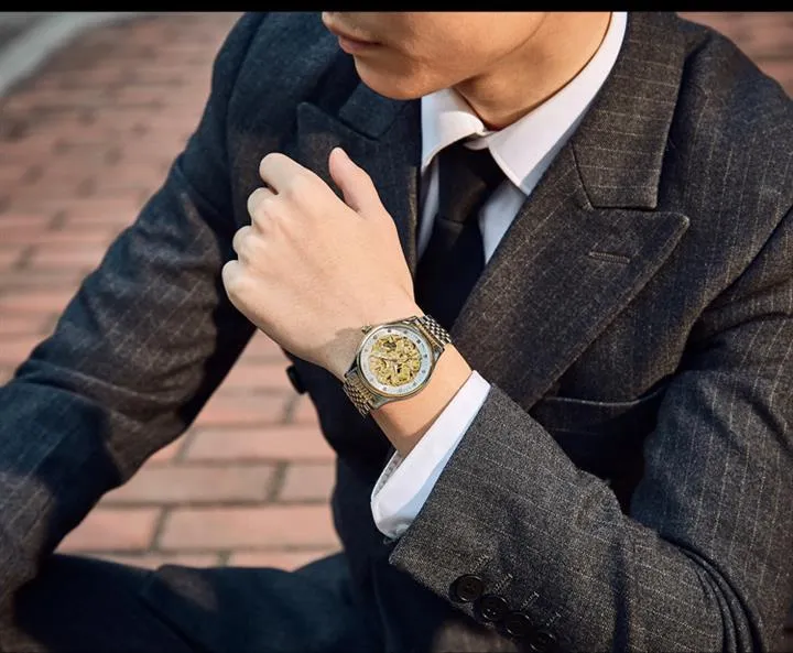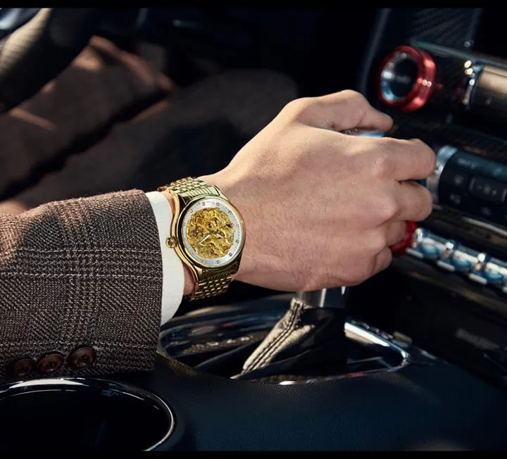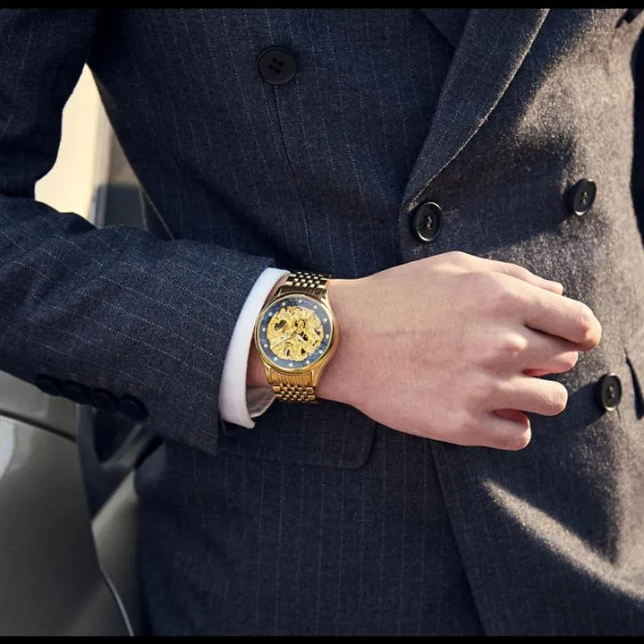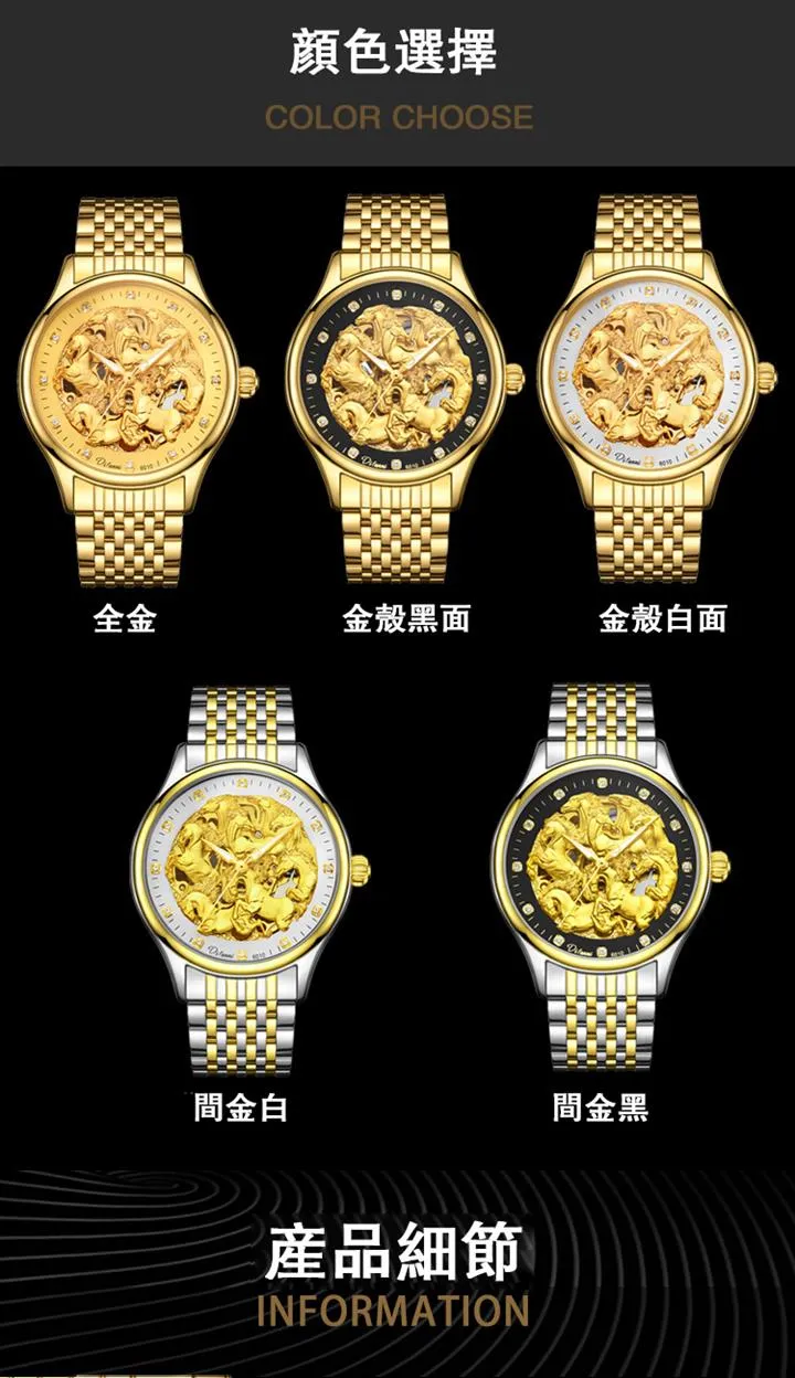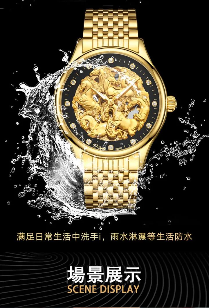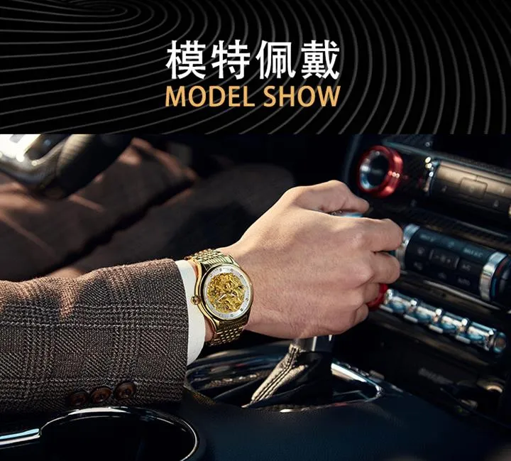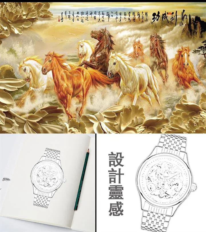 男錶・機械・駿馬奔騰 | 全自動機械機芯 | 駿馬浮雕錶盤 | 精鋼鍍金錶帶 | 閃鑽刻度 | 強視夜光 | 30米防水 | TEVISE男士全自動機械手錶