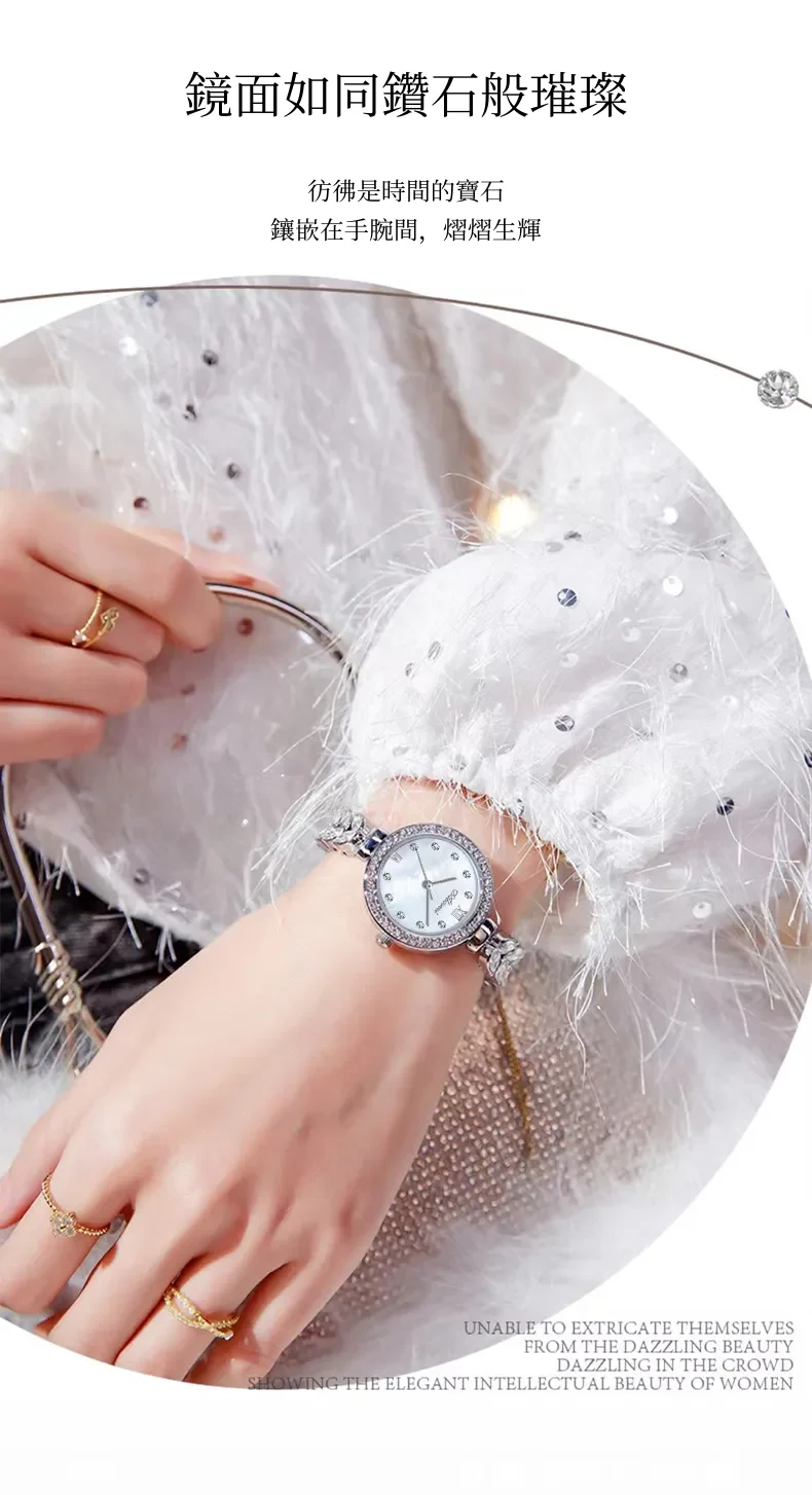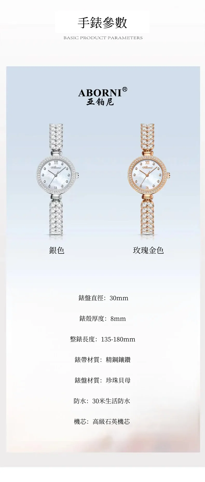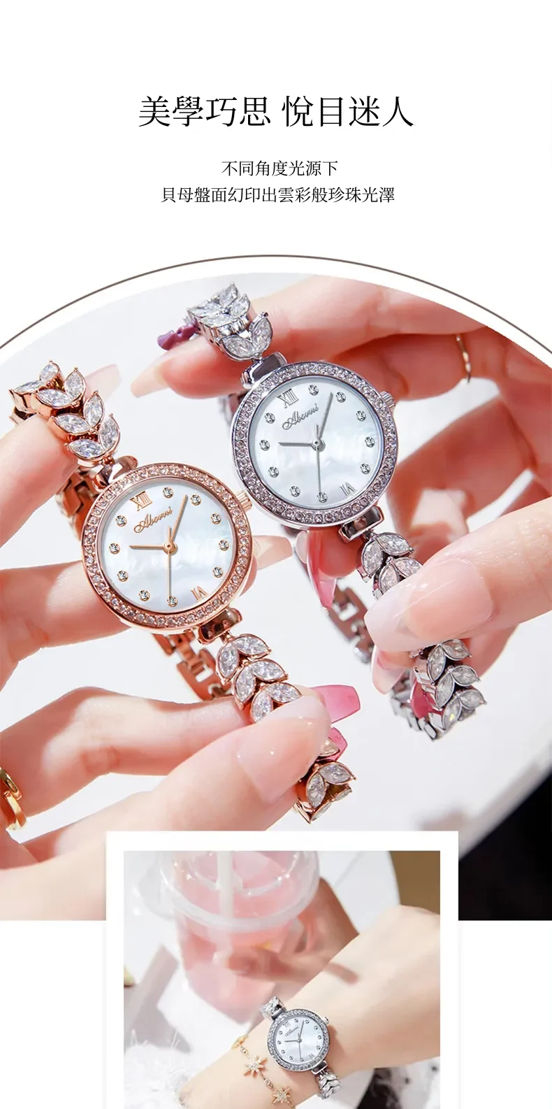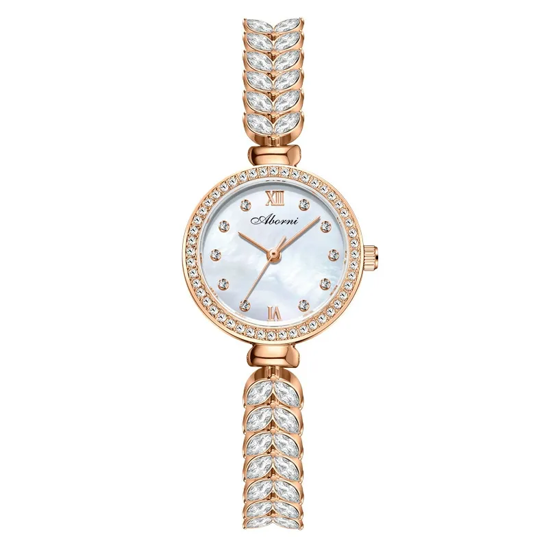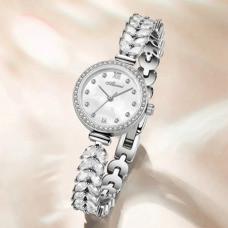 女錶・風吹麥浪 | 幻彩貝母小錶盤 | 麥穗造型精鋼鑲鑽錶帶 | 高級石英機芯 | 30米防水 | ABORNI高級女士時裝腕錶