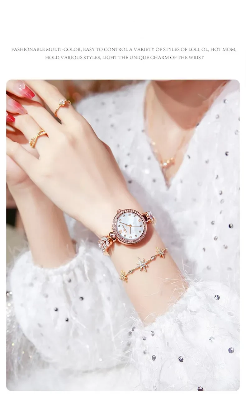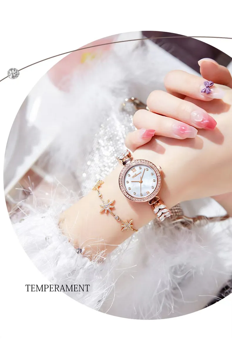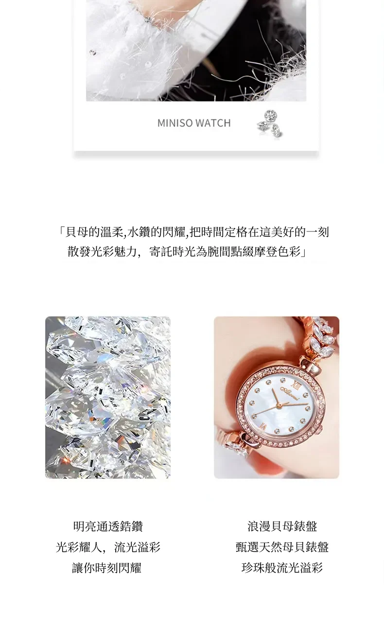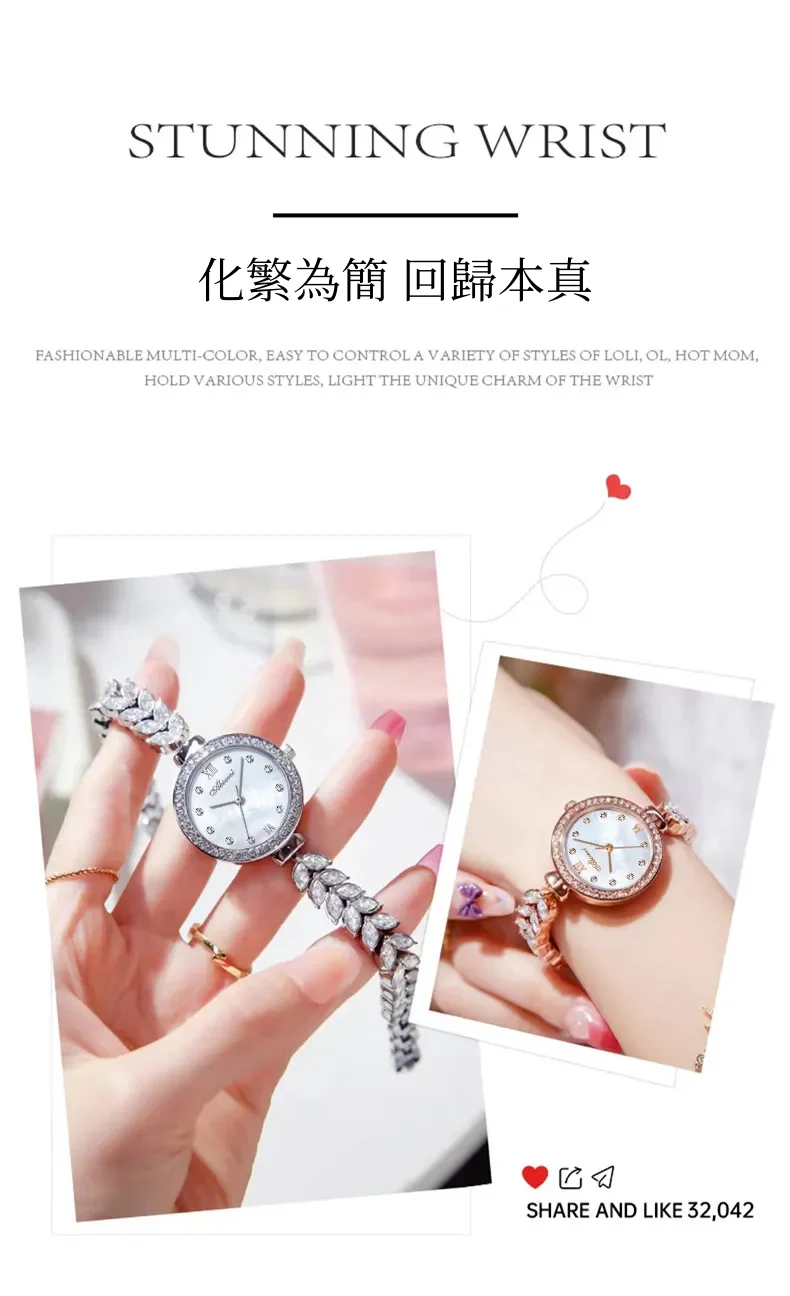 女錶・風吹麥浪 | 幻彩貝母小錶盤 | 麥穗造型精鋼鑲鑽錶帶 | 高級石英機芯 | 30米防水 | ABORNI高級女士時裝腕錶