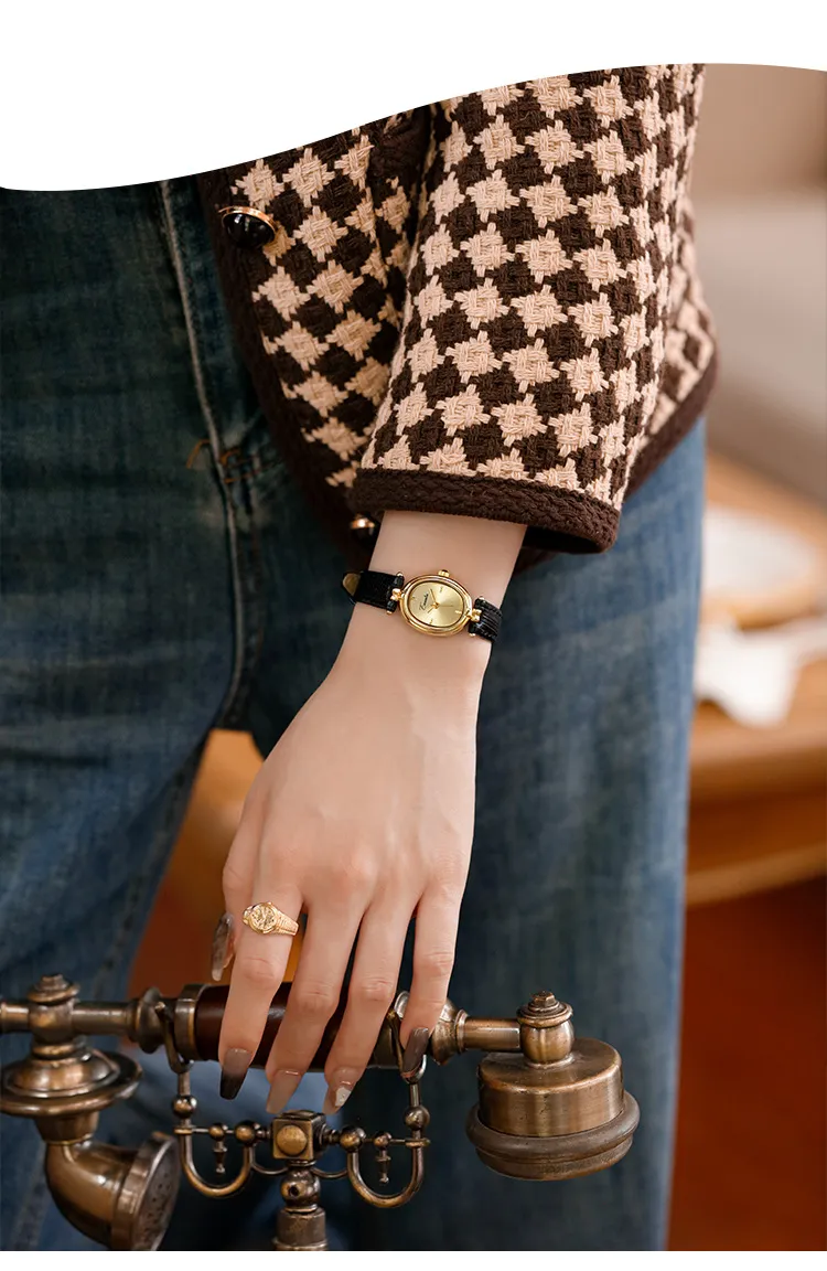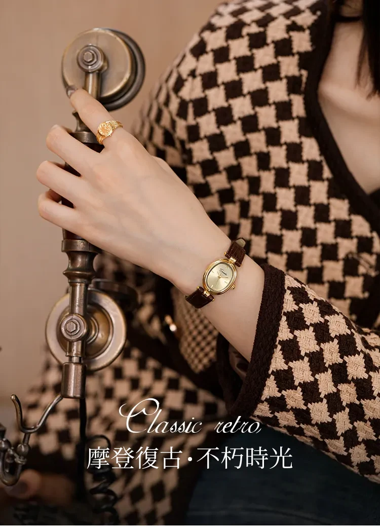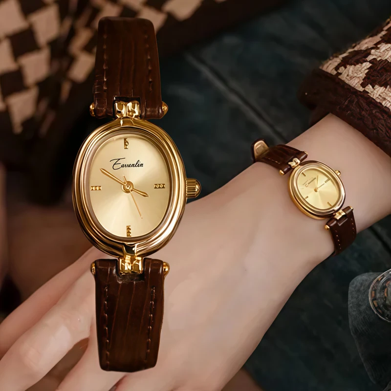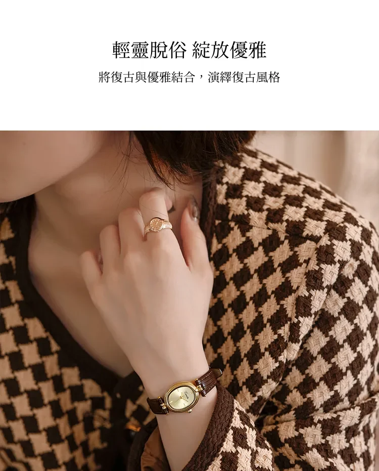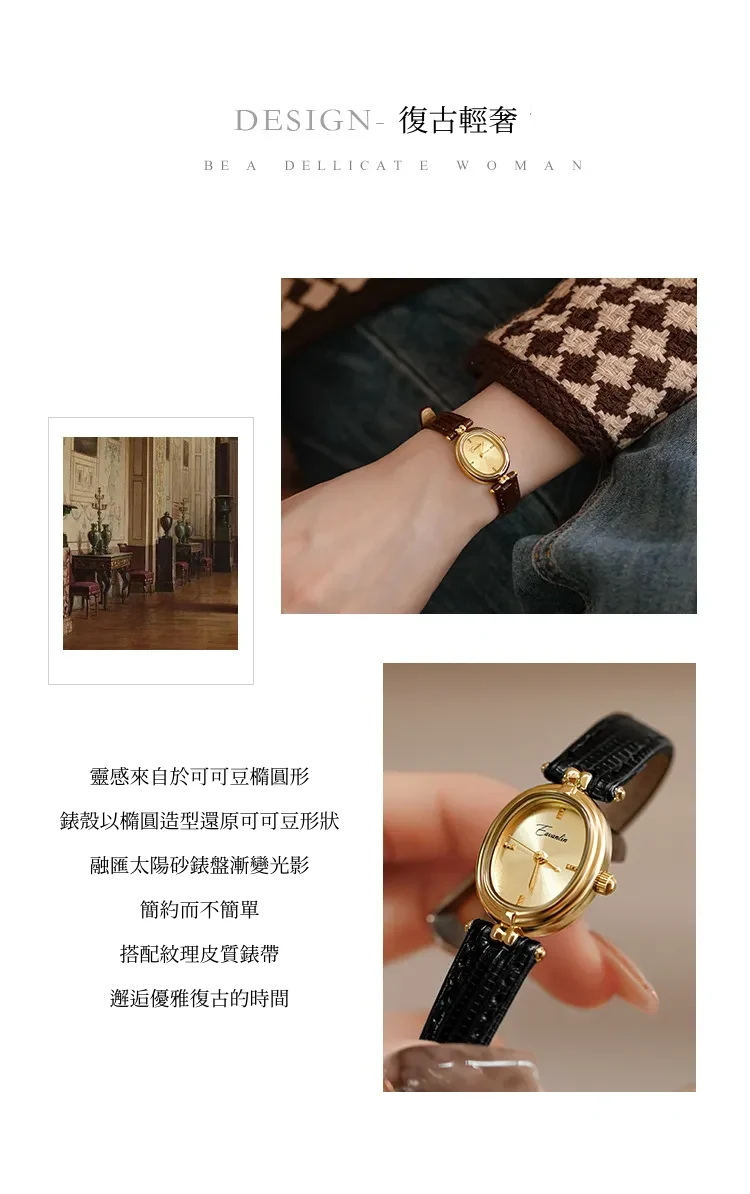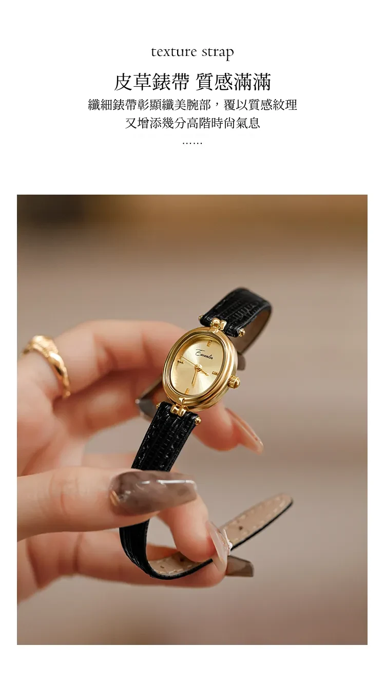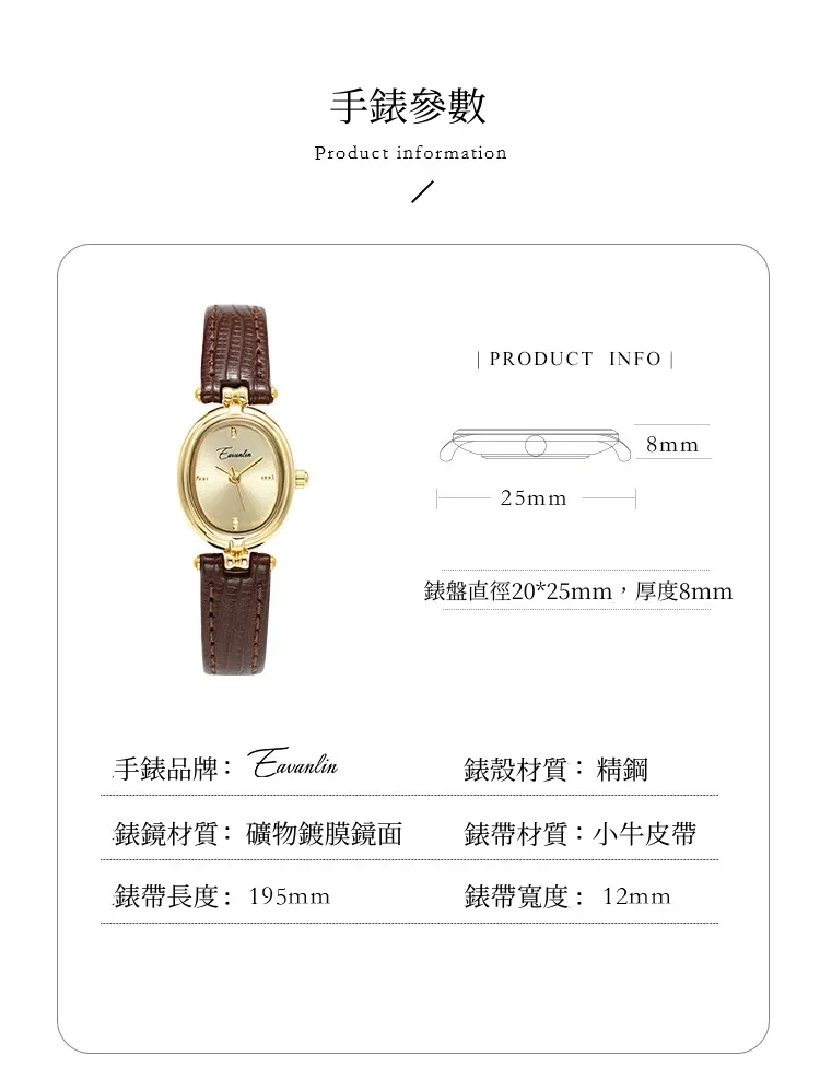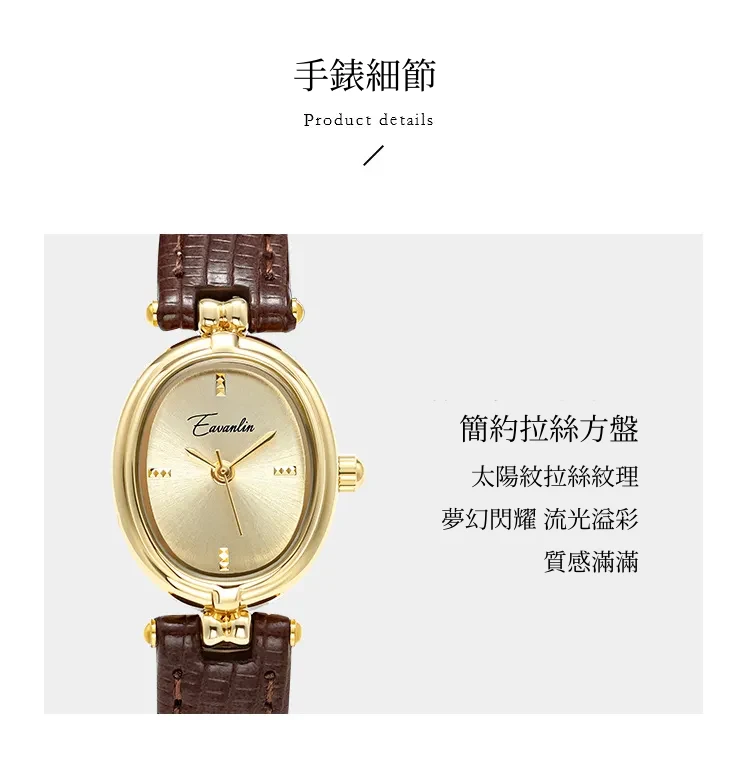 女錶・爵士年代 | 復古橢圓形錶殼 | 太陽紋拉絲錶盤 | 質感小牛皮帶 | 礦物鍍膜錶鏡 | 30米防水 | Evanlin復古格調女錶
