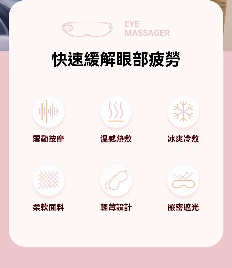 送她辦公室做SPA | 全功能護眼紓壓眼罩 | 震動按摩減壓 | 恆溫熱敷活血 | 冰感冷敷消腫 | 可拆卸磁吸電芯 | 貼心實用禮物多功能按摩眼罩