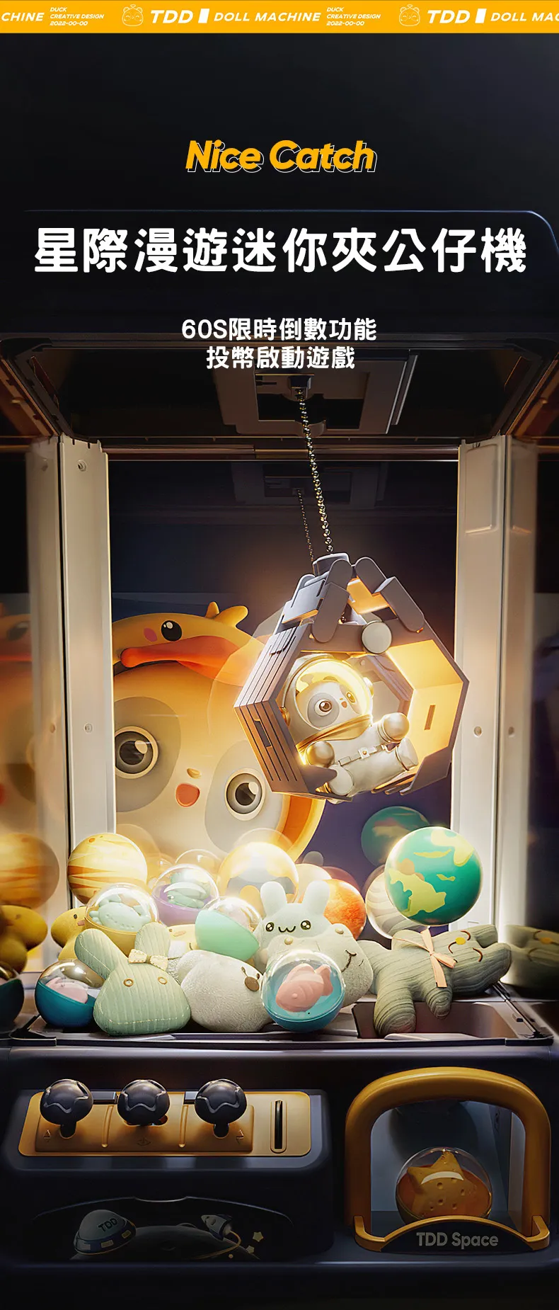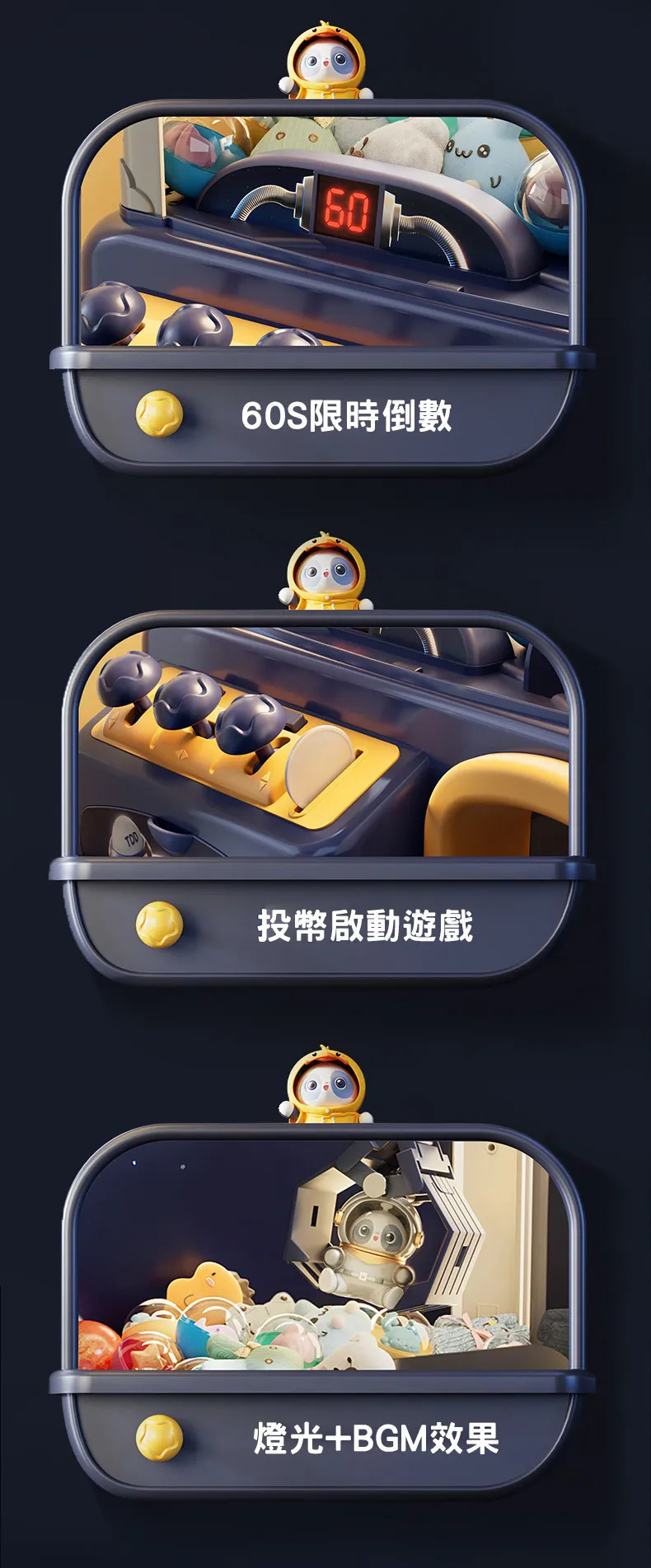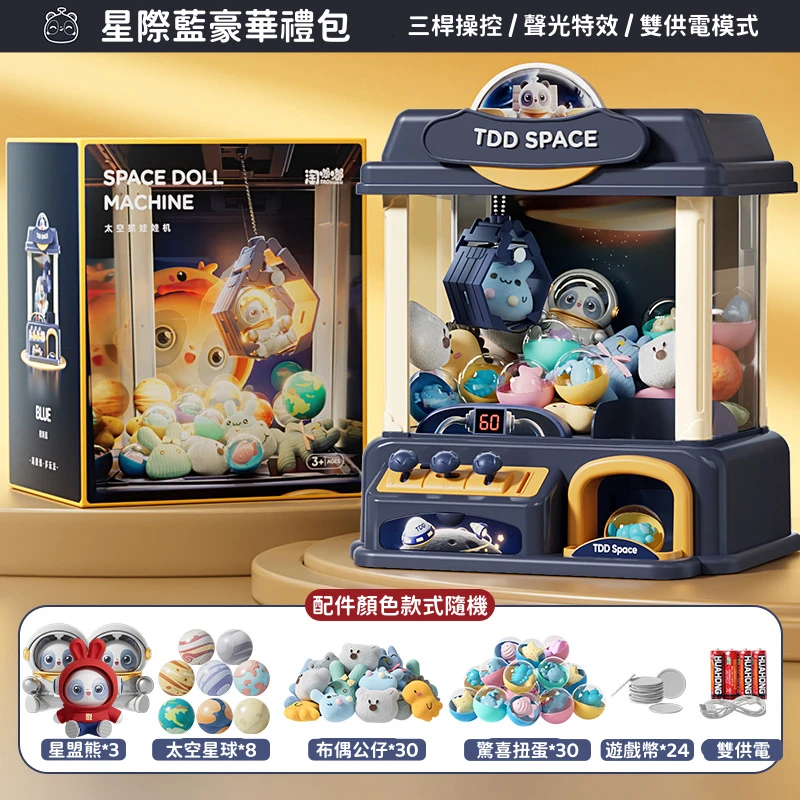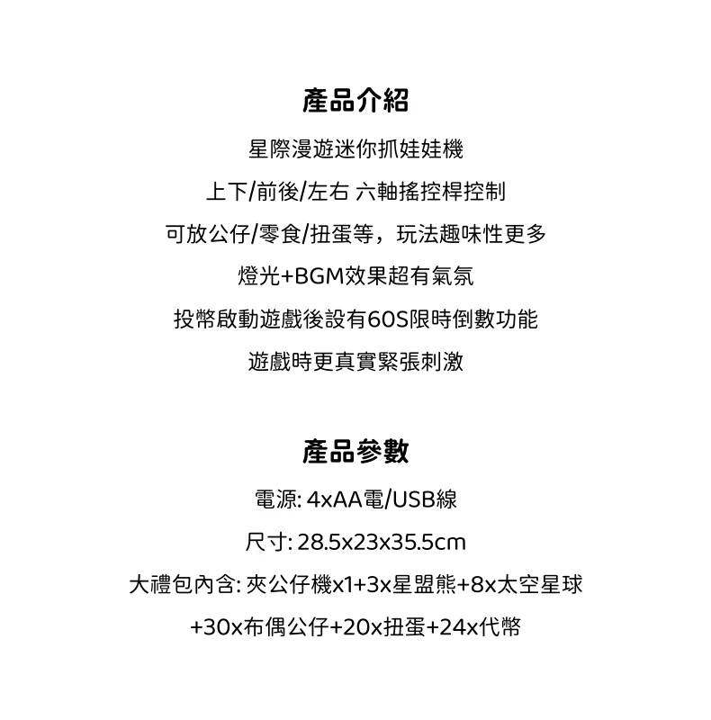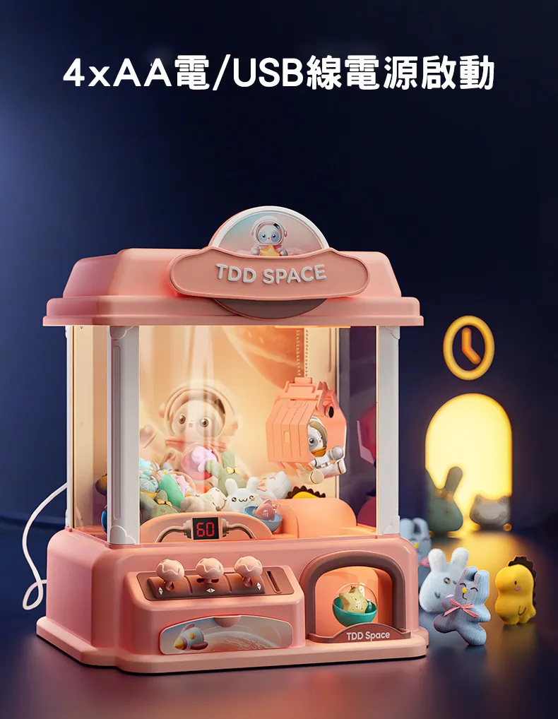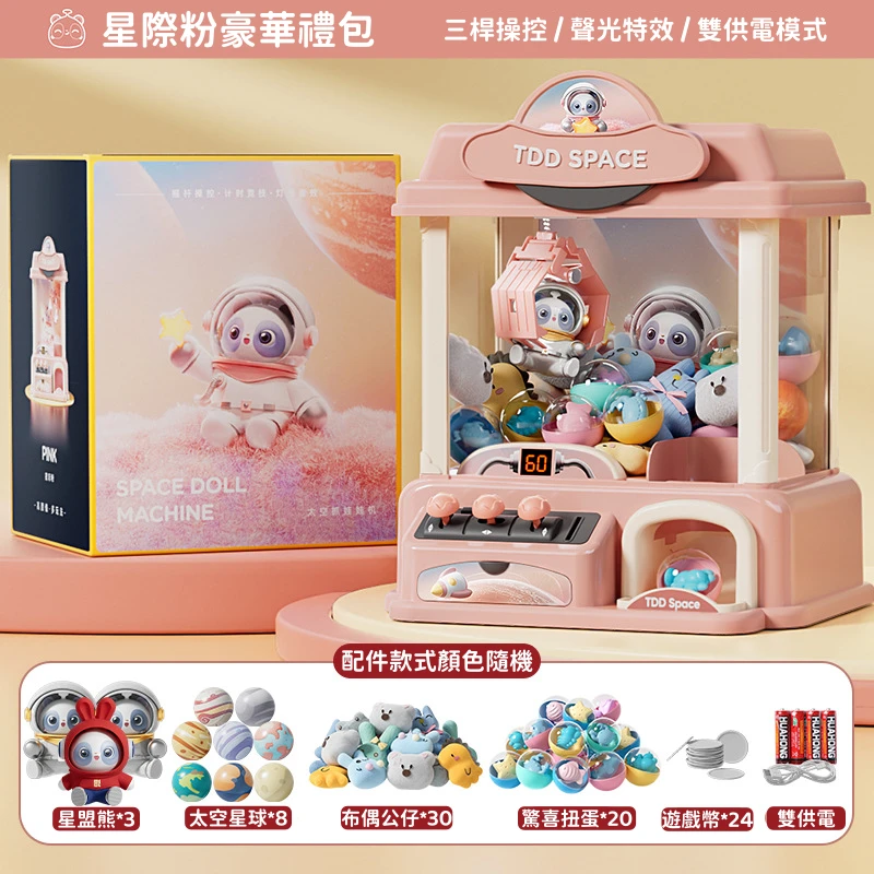 星際漫遊迷你夾公仔機 | 限時送超豪華公仔大禮包 | 三桿六軸遙控桿| 60秒限時倒數 | 氣氛感聲光特效 | 投幣啟動模式 | 少女心禮物兒童禮物