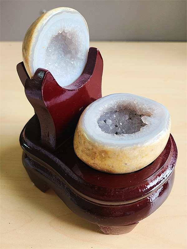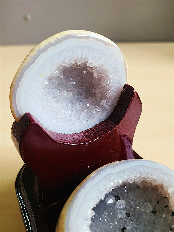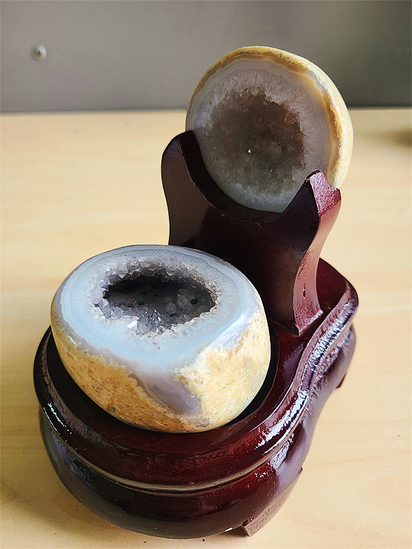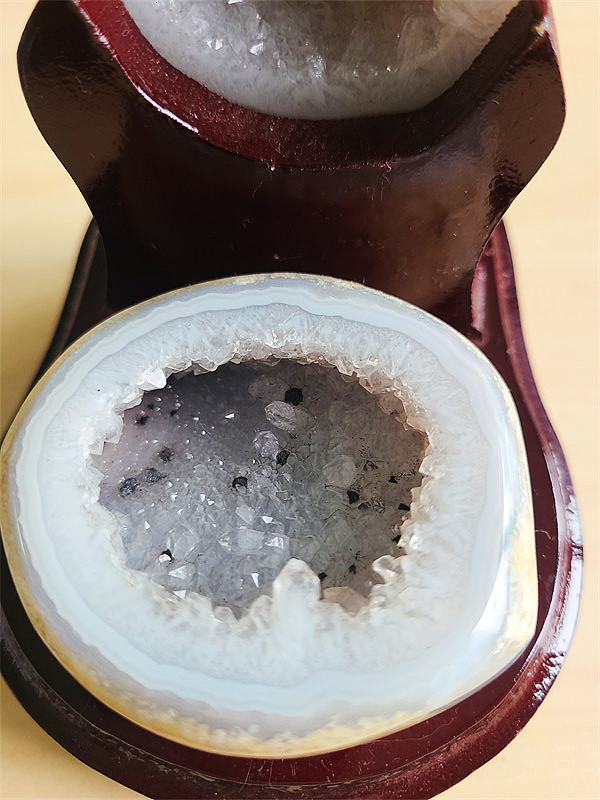 極品晶牙步步高升 | 鎮宅旺財 | 人間極品完美級 | 天然烏拉圭聚寶盆 | 口大洞深 | 細密閃耀晶砂 | 人間極品滿肉玉潤實木底座天然瑪瑙聚寶盆擺件