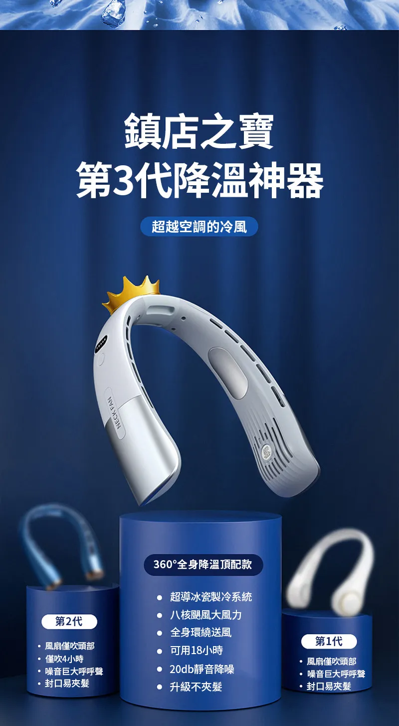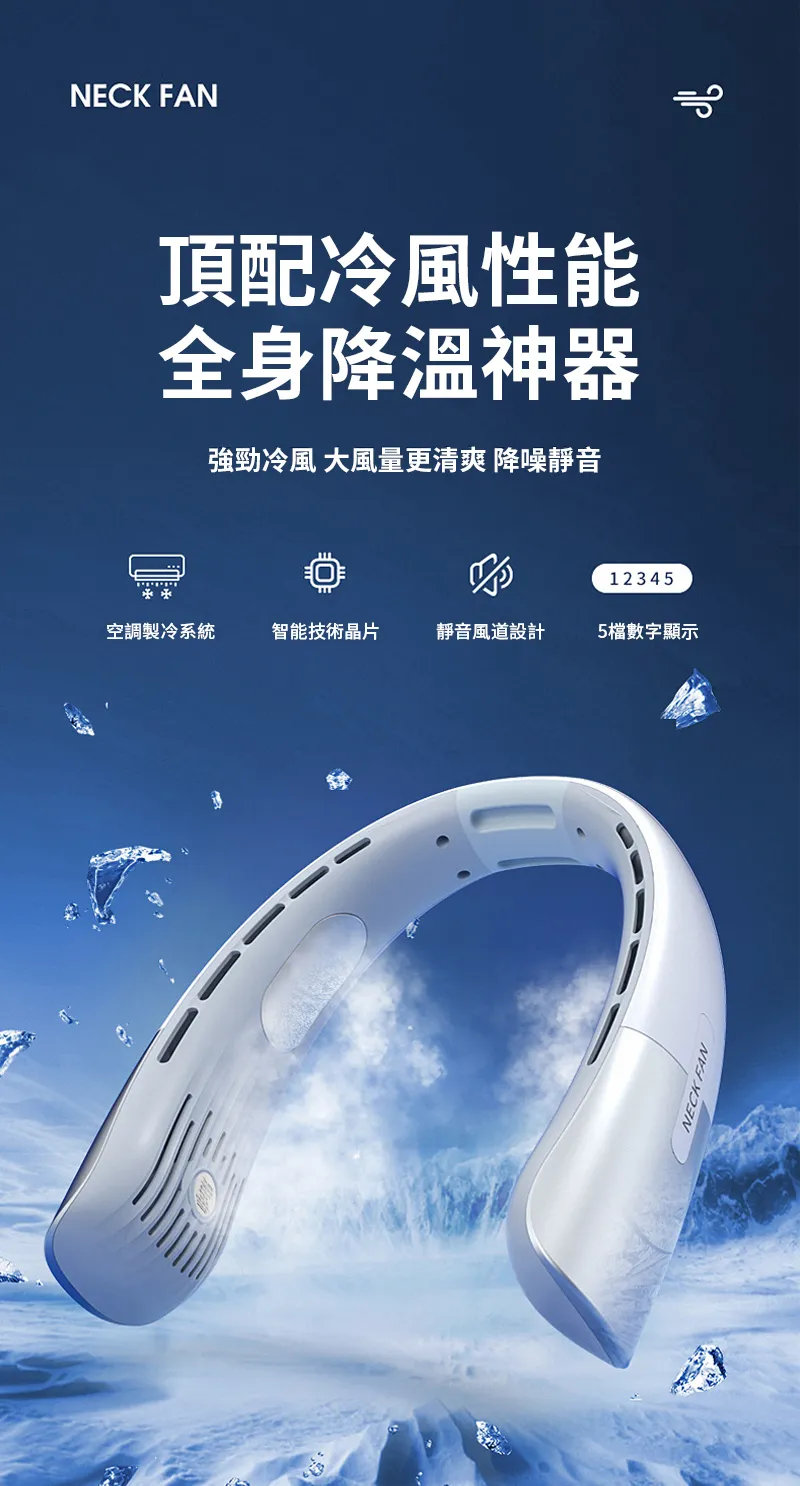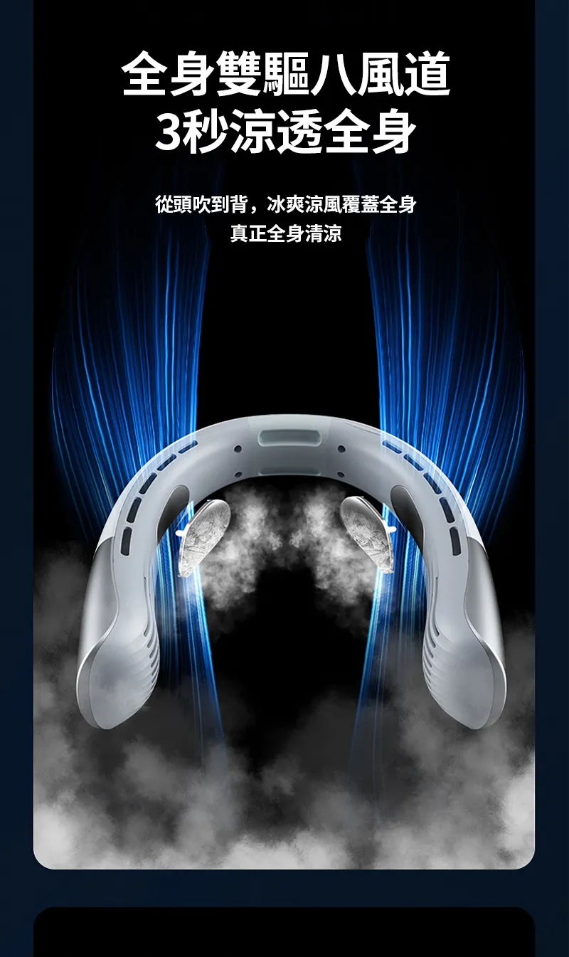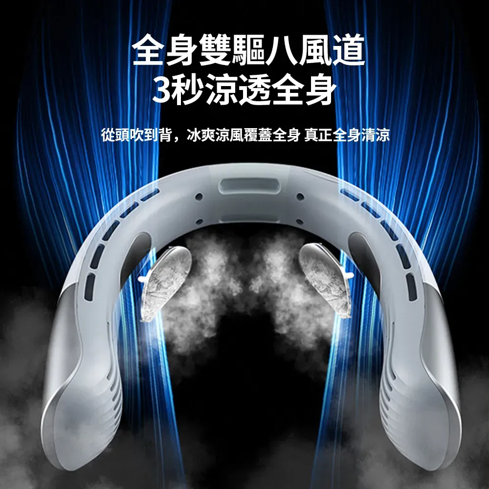 智慧美型旗艦隨身冷氣風扇 | 超導冰瓷製冷系統 | 八核颶風大風力 | 全身環繞送風 | 20db靜音降噪 | 升級不夾頭髮更安心 | 頂配版掛脖風扇