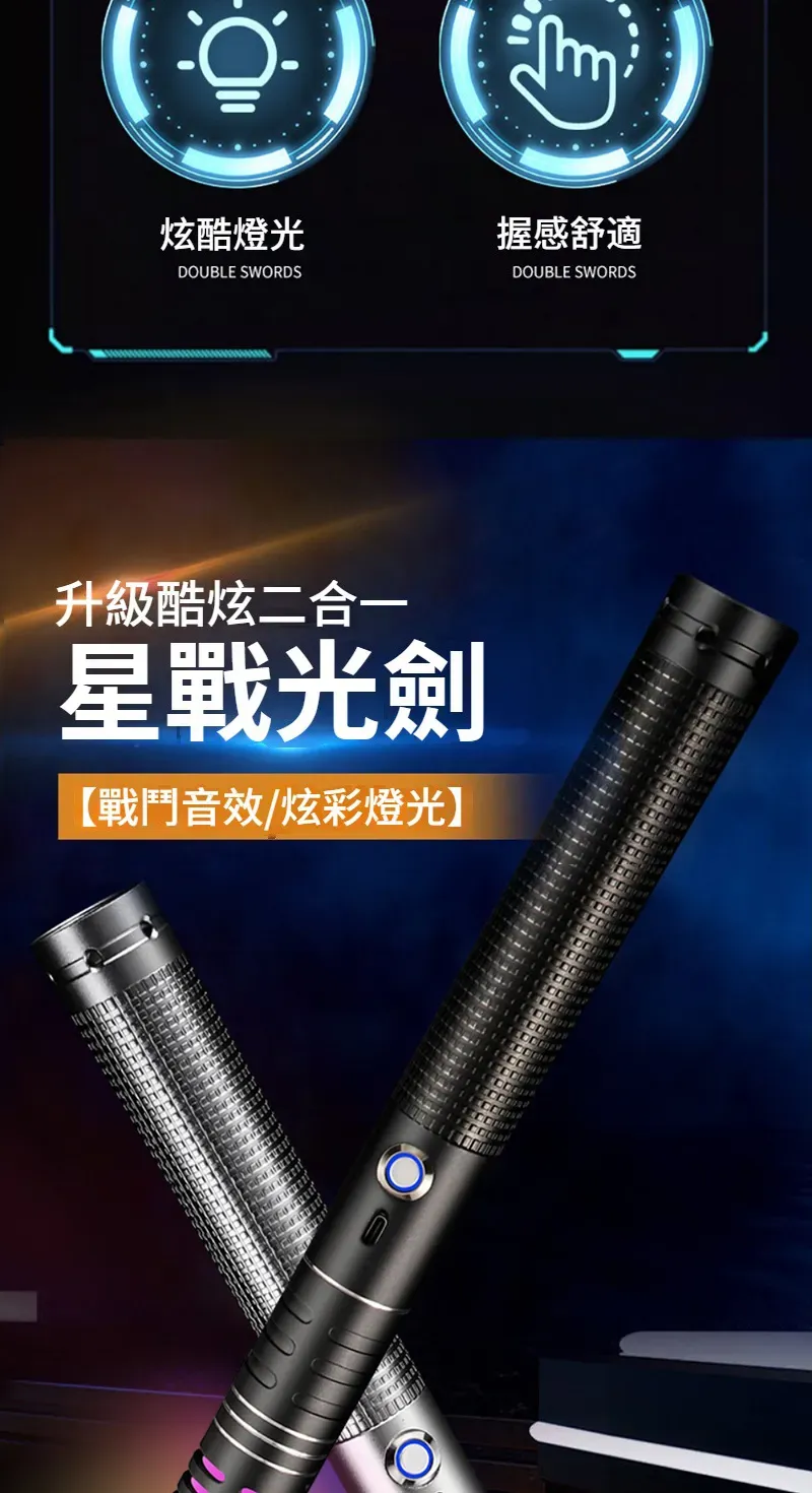 男友欲罷不能的禮物 | 超爽頂配星戰像素光劍 | 炫彩多色鐳射激光 | 升級星雲彩虹光效 | 重力感應戰鬥音效 | 3D重低音原力震動 | 強韌金屬手柄