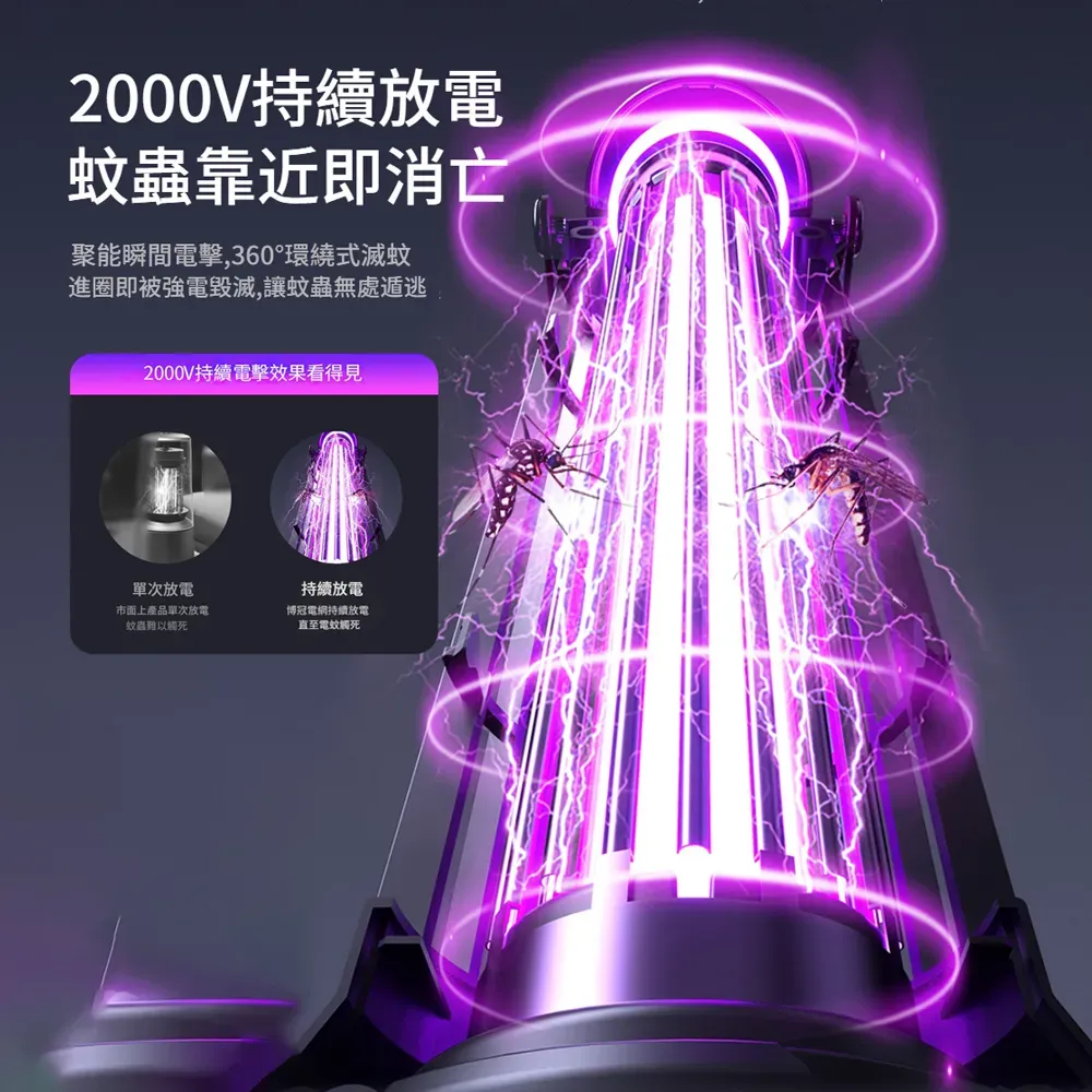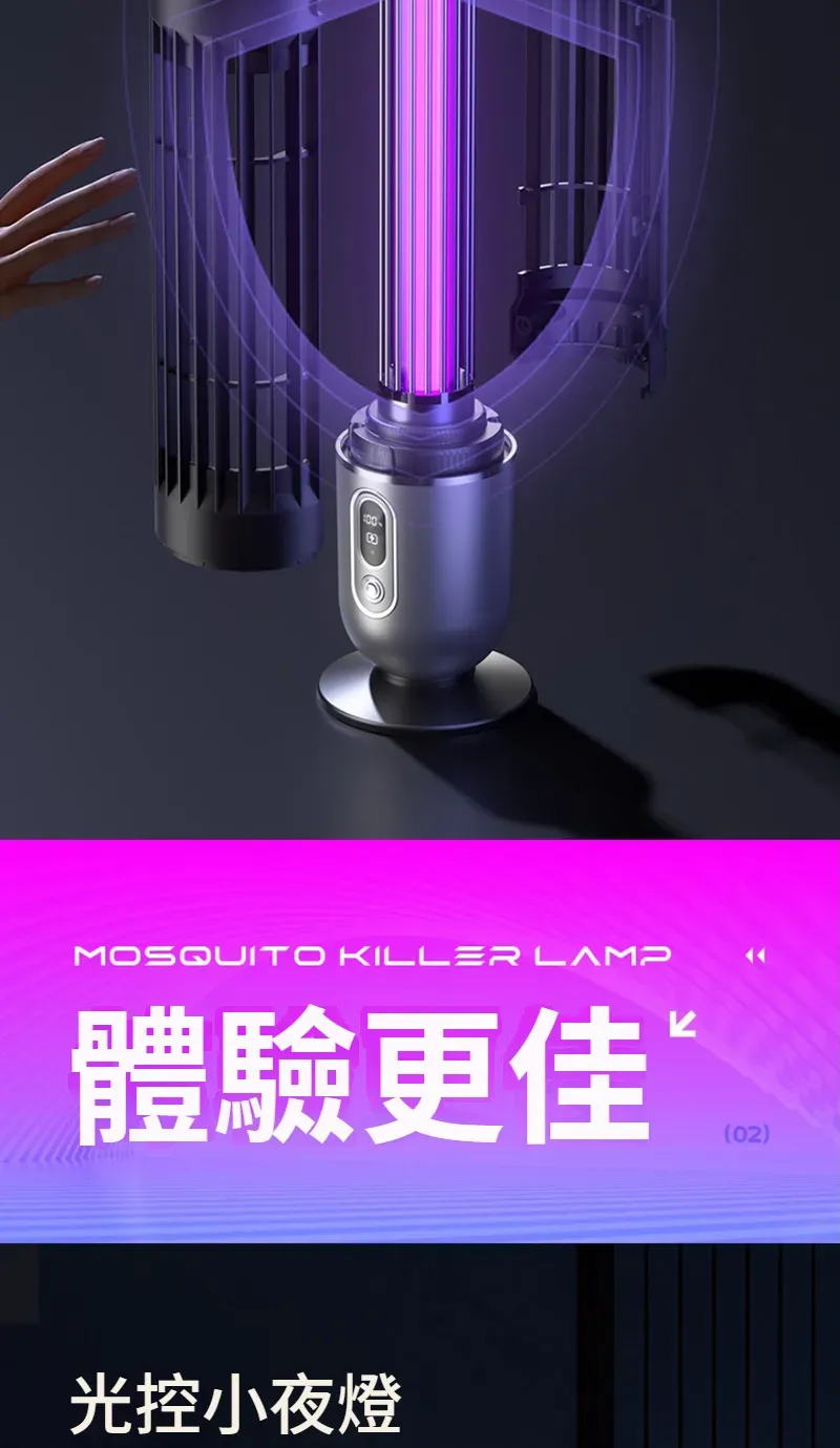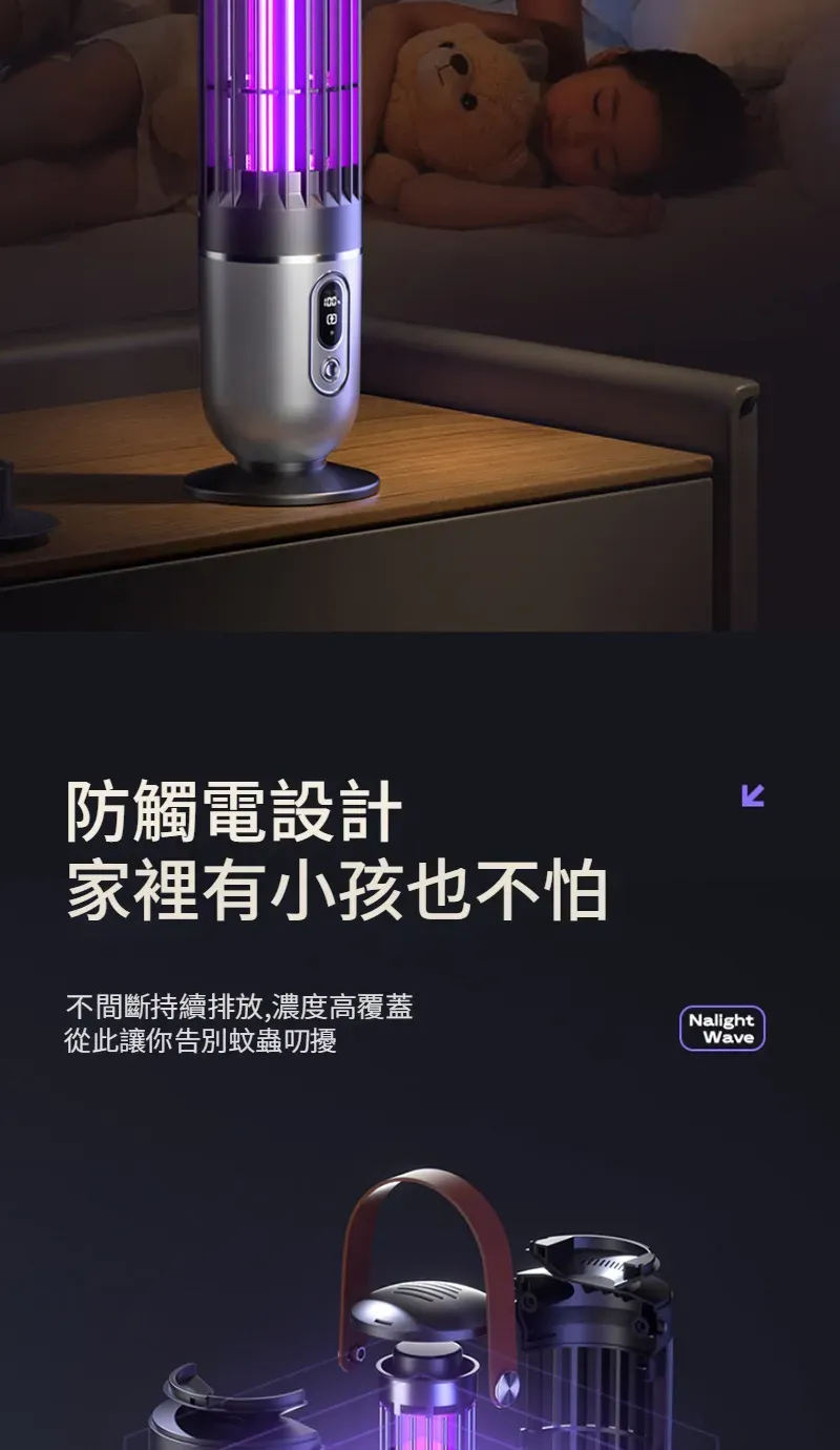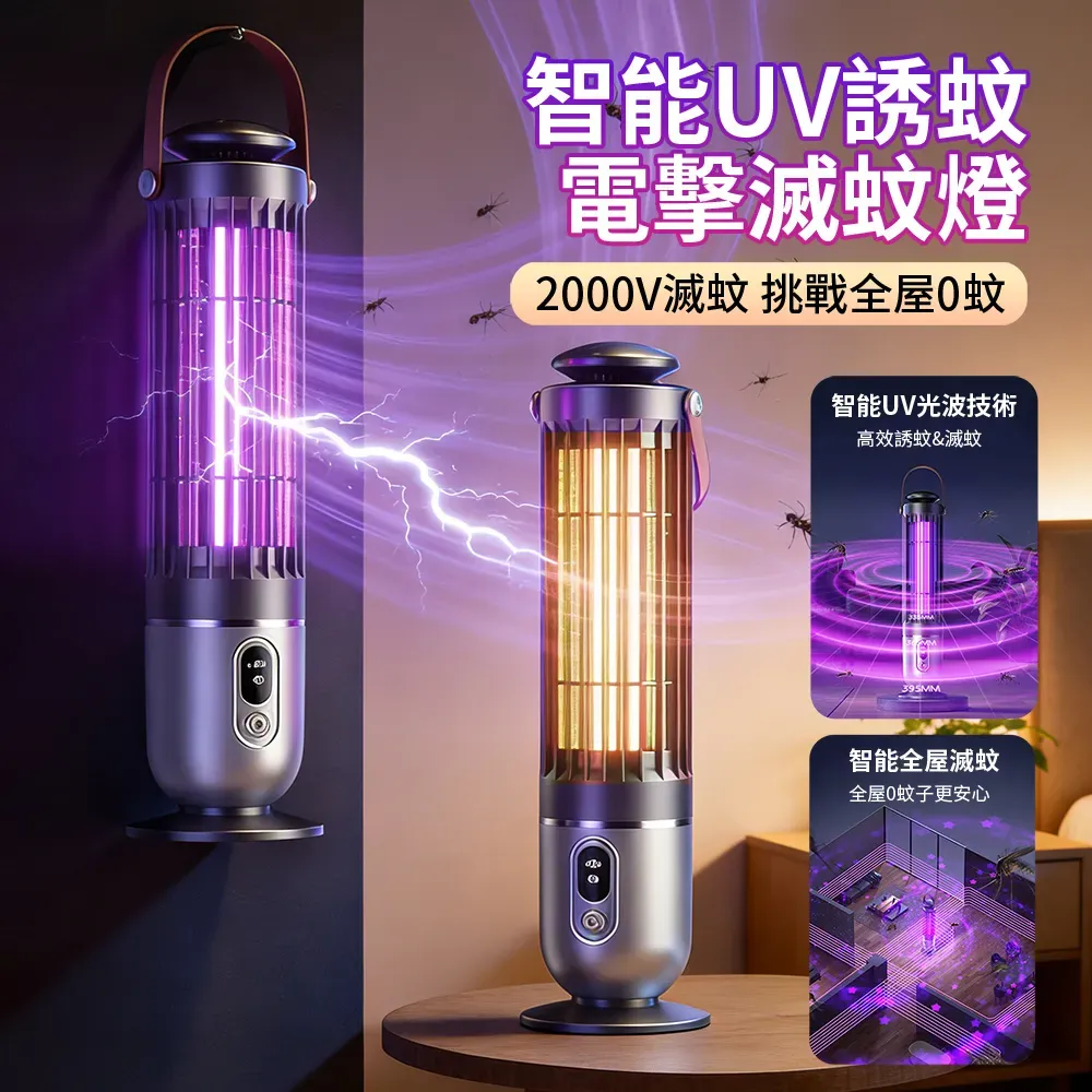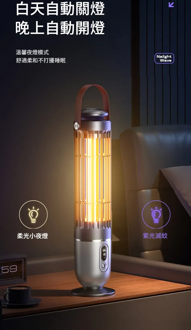專業級孕幼可用滅蚊燈 | 智慧UV光波誘蚊 | 聚能電擊純物理速殺 | 360環繞式滅蚊 | 光控溫馨夜燈 | 桌式壁掛兩用 | 無線使用超長續航