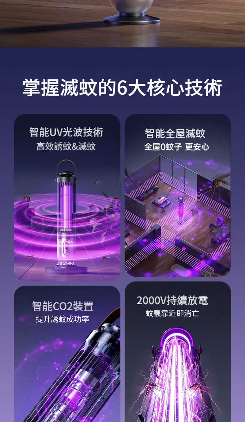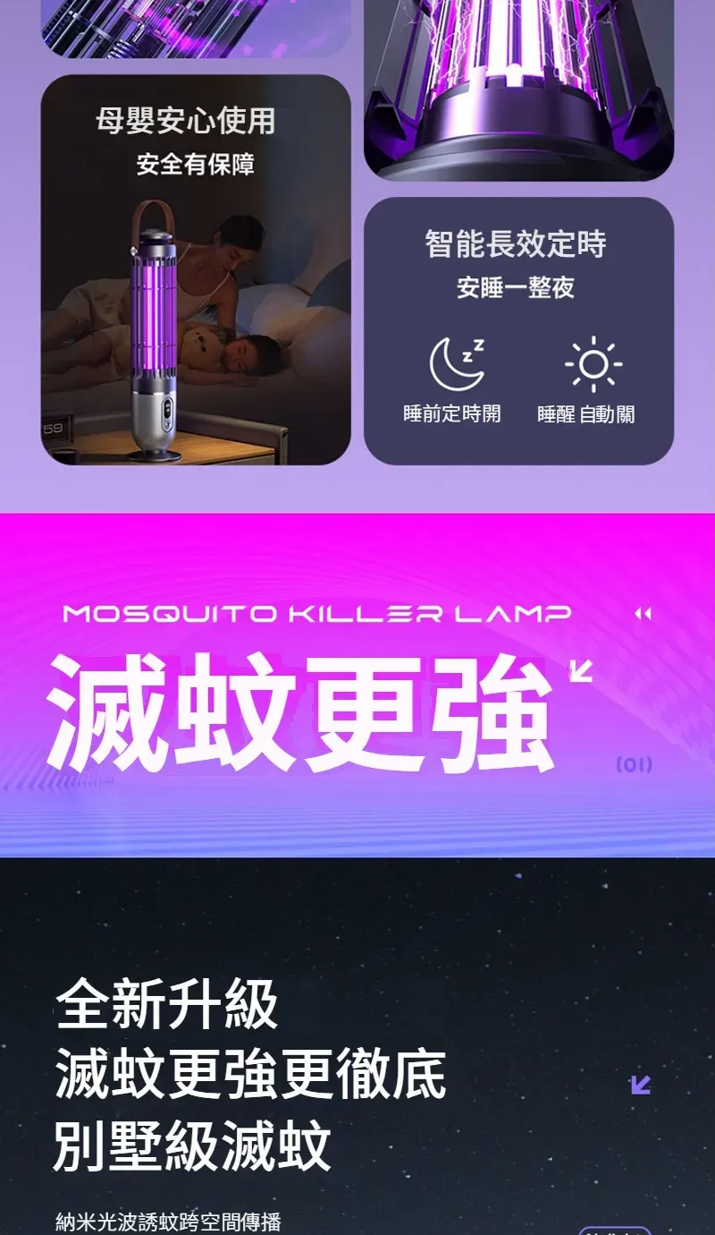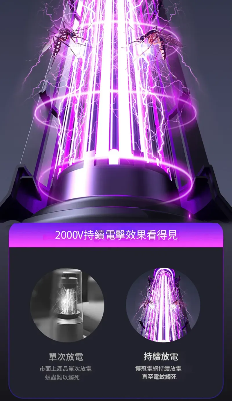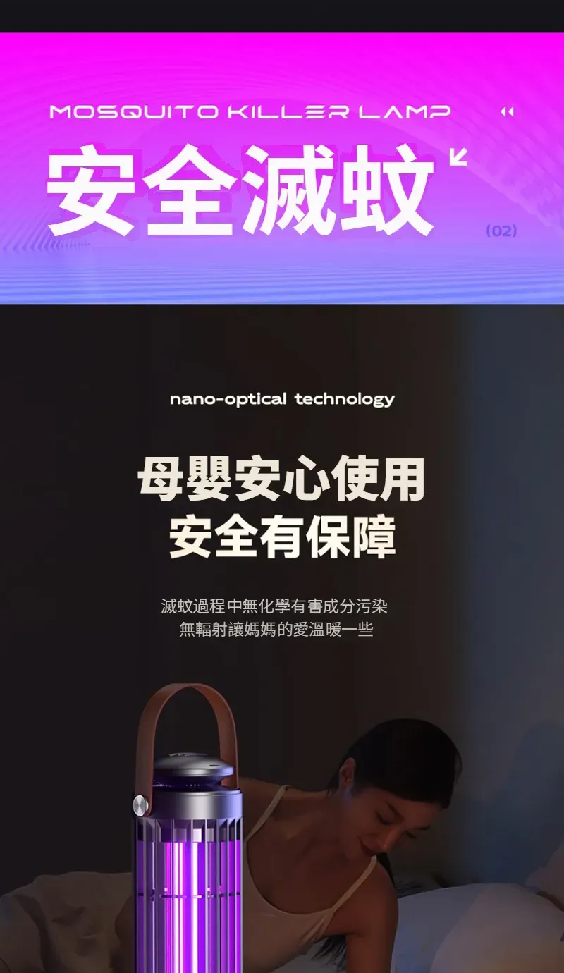 專業級孕幼可用滅蚊燈 | 智慧UV光波誘蚊 | 聚能電擊純物理速殺 | 360環繞式滅蚊 | 光控溫馨夜燈 | 桌式壁掛兩用 | 無線使用超長續航