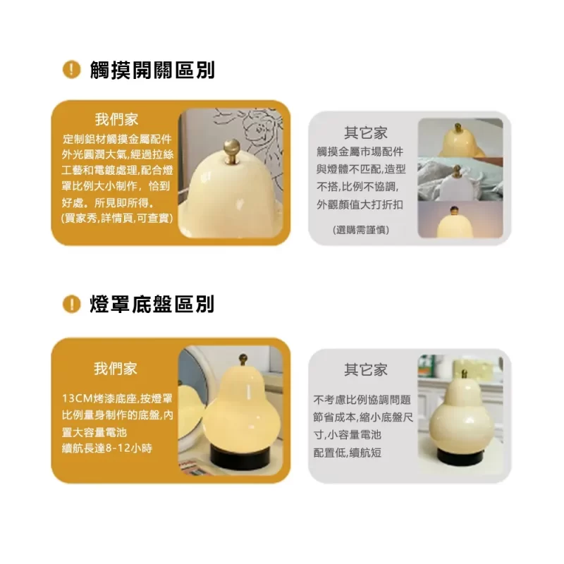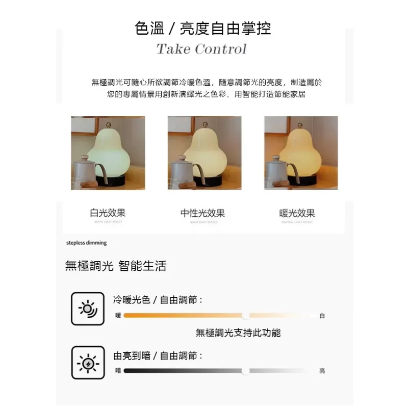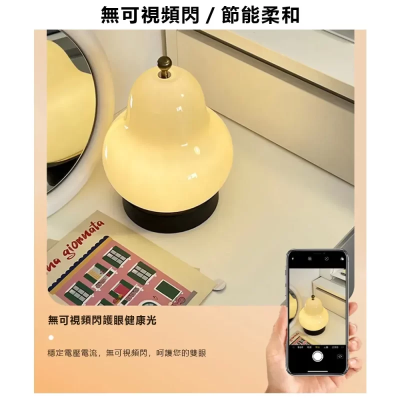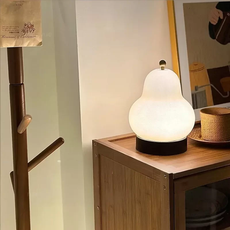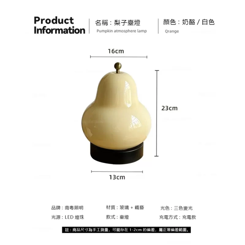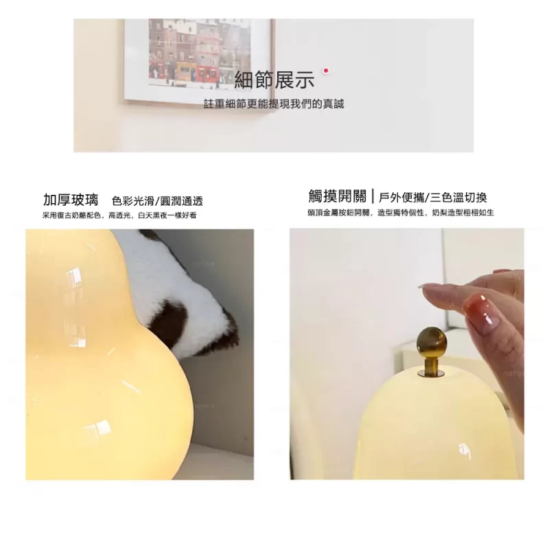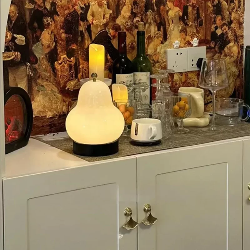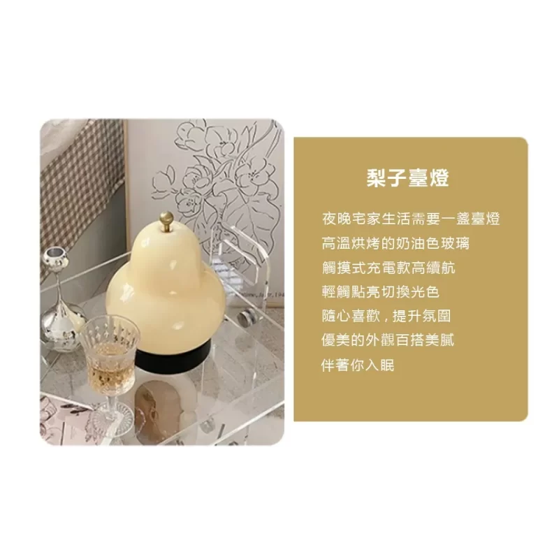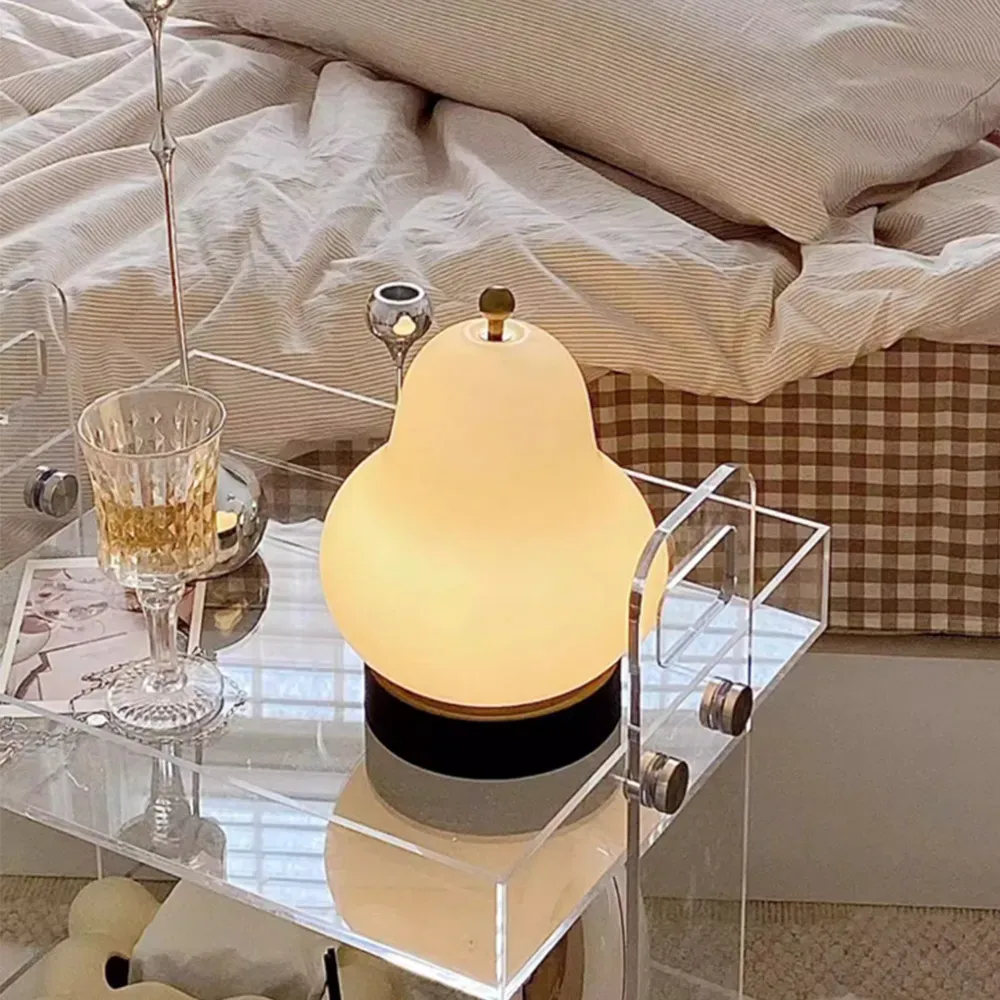 永不分梨・梨子造型藝術桌燈 | 一體成型奶油玻璃燈罩 | 無可視頻閃超護眼 | 冷暖三色無段調光 | 無線使用超長續航