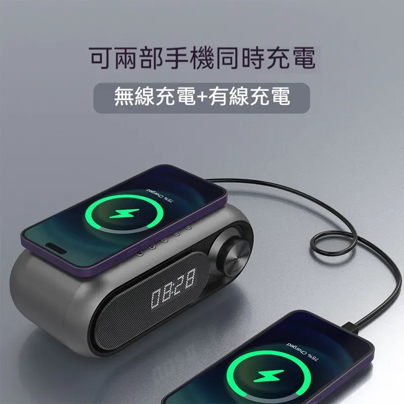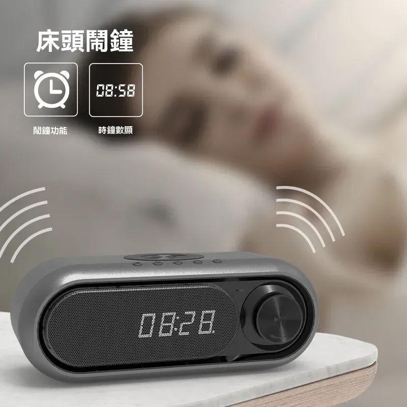 實用主義贈禮・全功能格調桌面伴侶 | 藍牙喇叭・手機無線充・收音機・鬧鐘時鐘多合一 | BASS重低音增強 | 格調又實用禮物多功能桌面伴侶