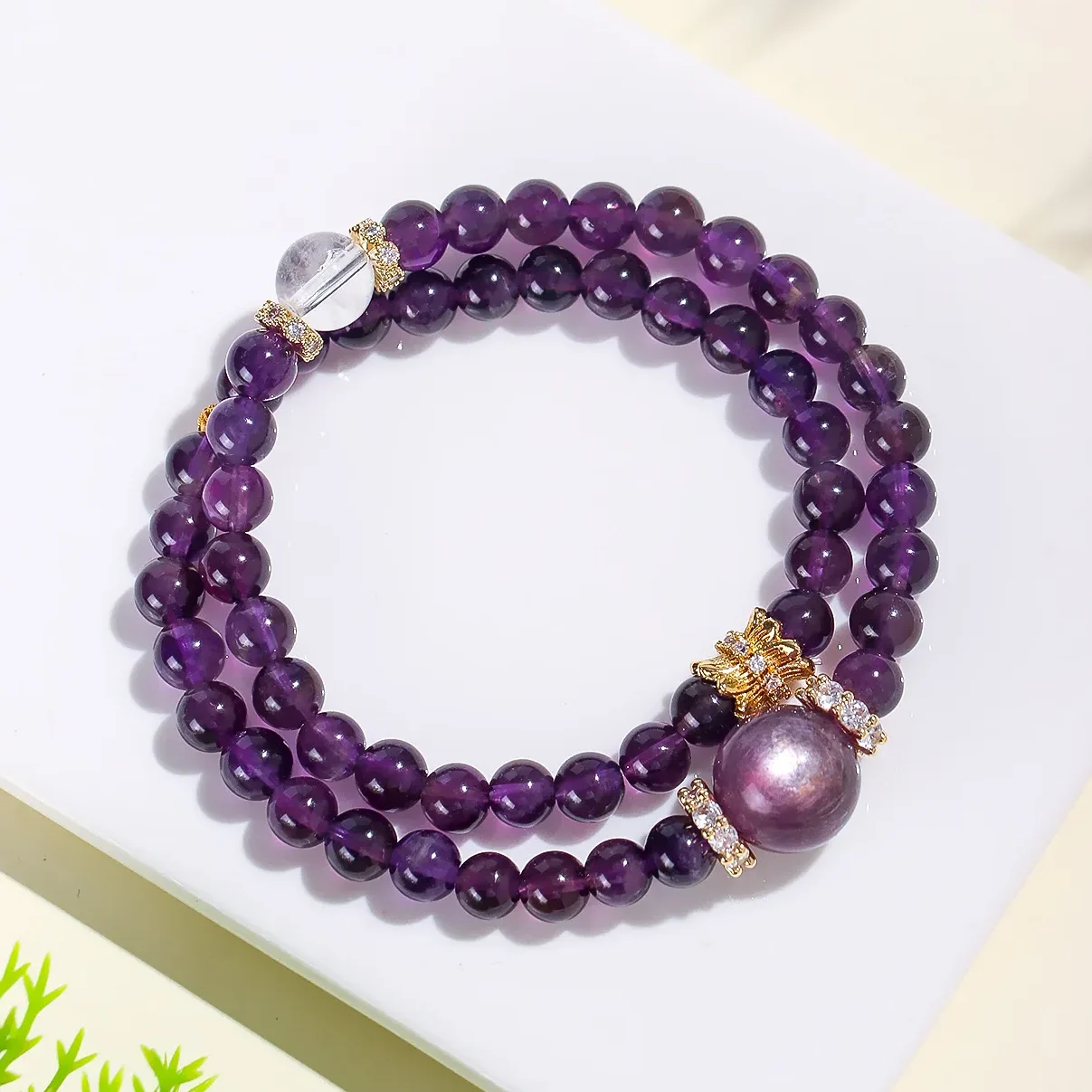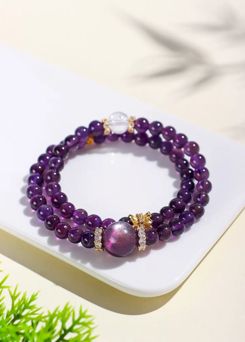 手鍊・紫氣東來・雙圈 | 天然羅蘭紫水晶・白水晶 | 促學業旺事業 | 天然紫水晶搭配白水晶手鍊事業紫水晶手串
