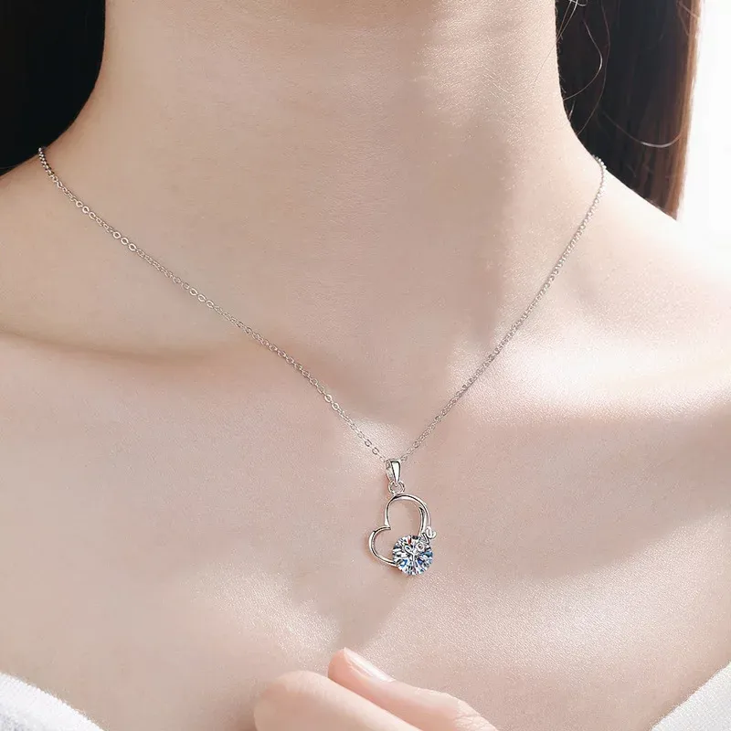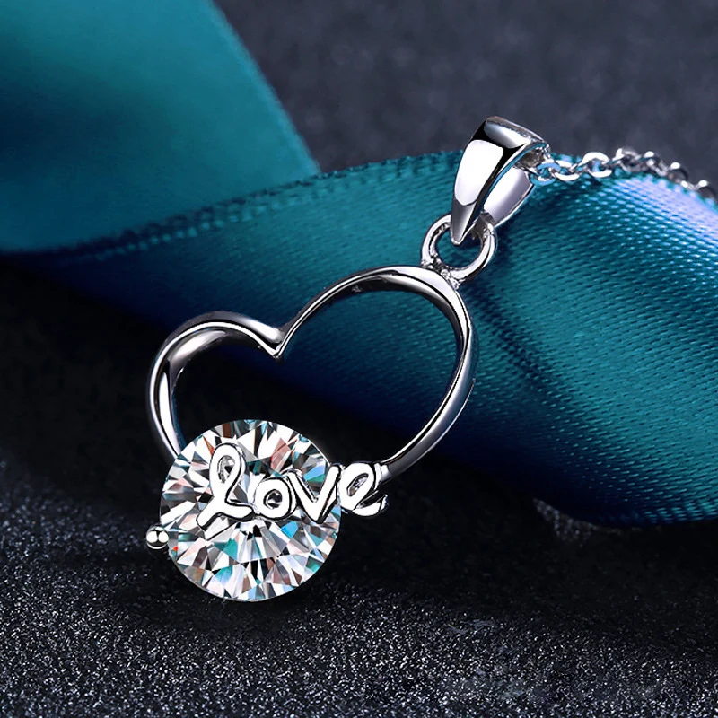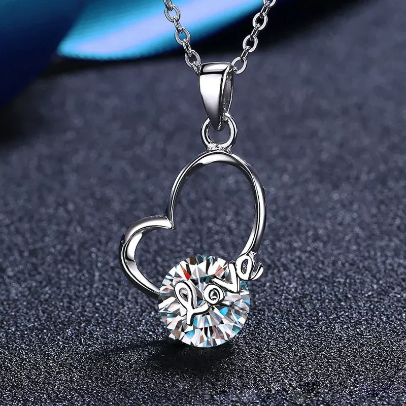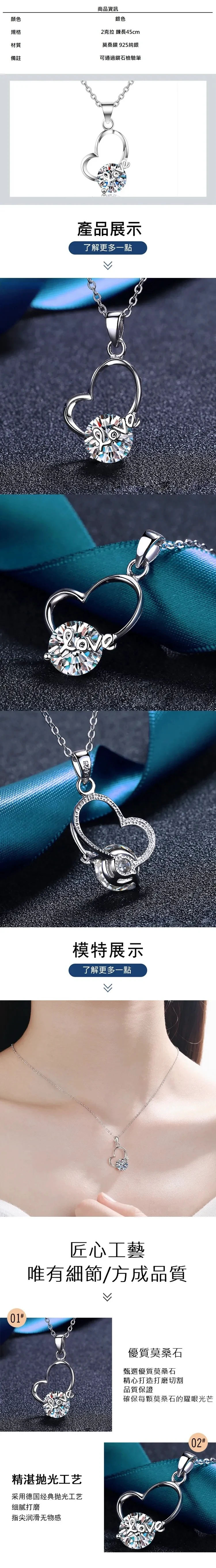 LOVE愛妳2克拉莫桑鑽項鍊 | 可過測鑽筆 | 附GRA認證證書 | 3EX級切工 | S925純銀 | 手工精緻拋光 | 告白情人節送女生禮物真莫桑鑽鎖骨鍊女生項鍊