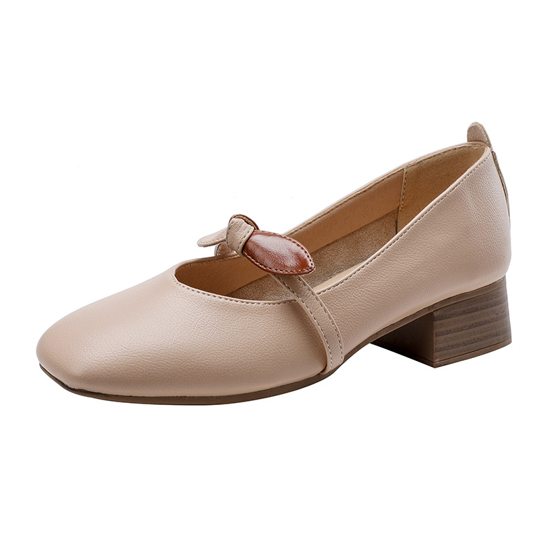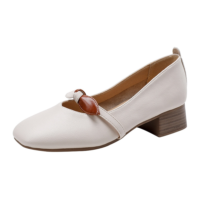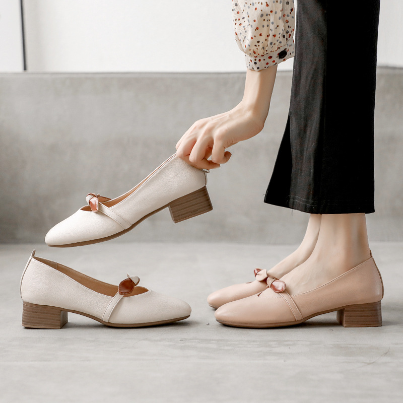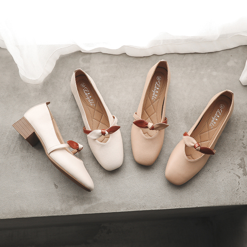 韓版百搭氣質淺口女鞋純色蝴蝶結舒適粗跟OL休閒女鞋