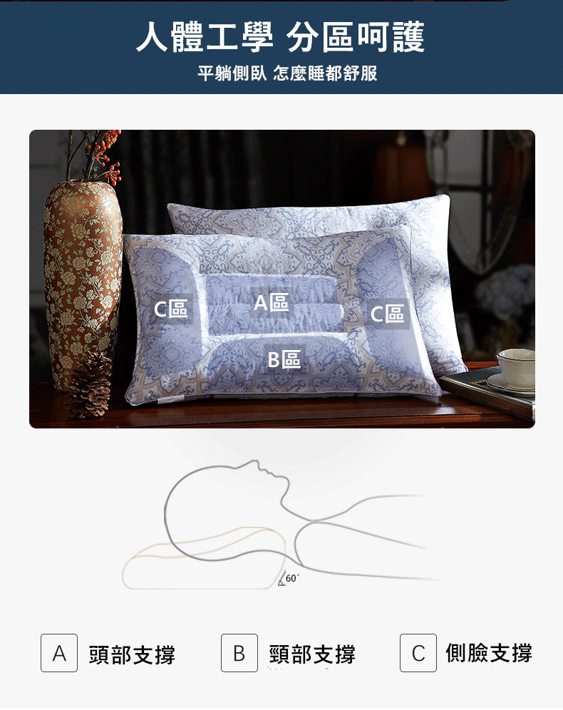 【天然決明子磁療枕】【人體工學設計分區支撐】法式居家設計分區支撐天然決明子保健磁療枕