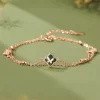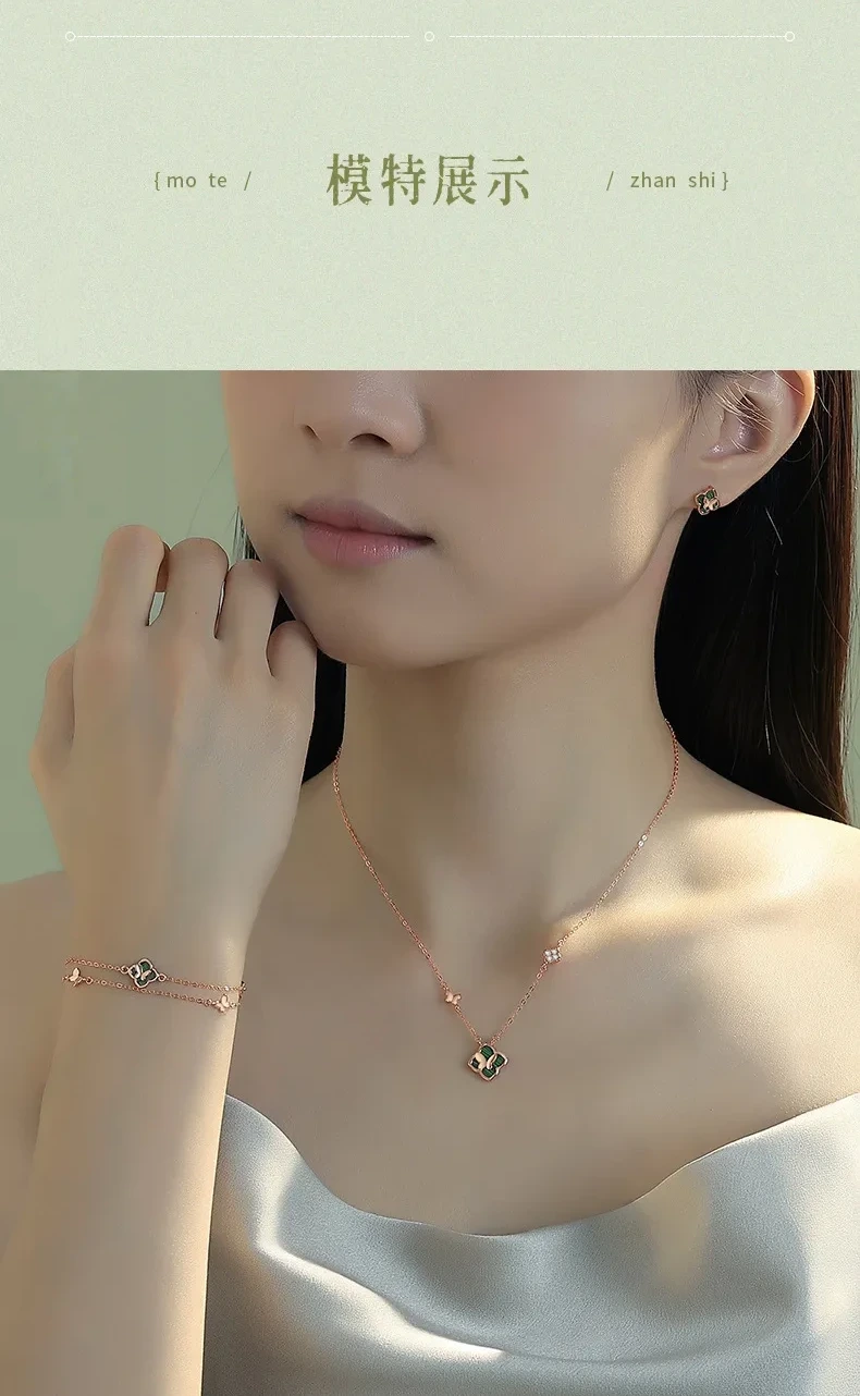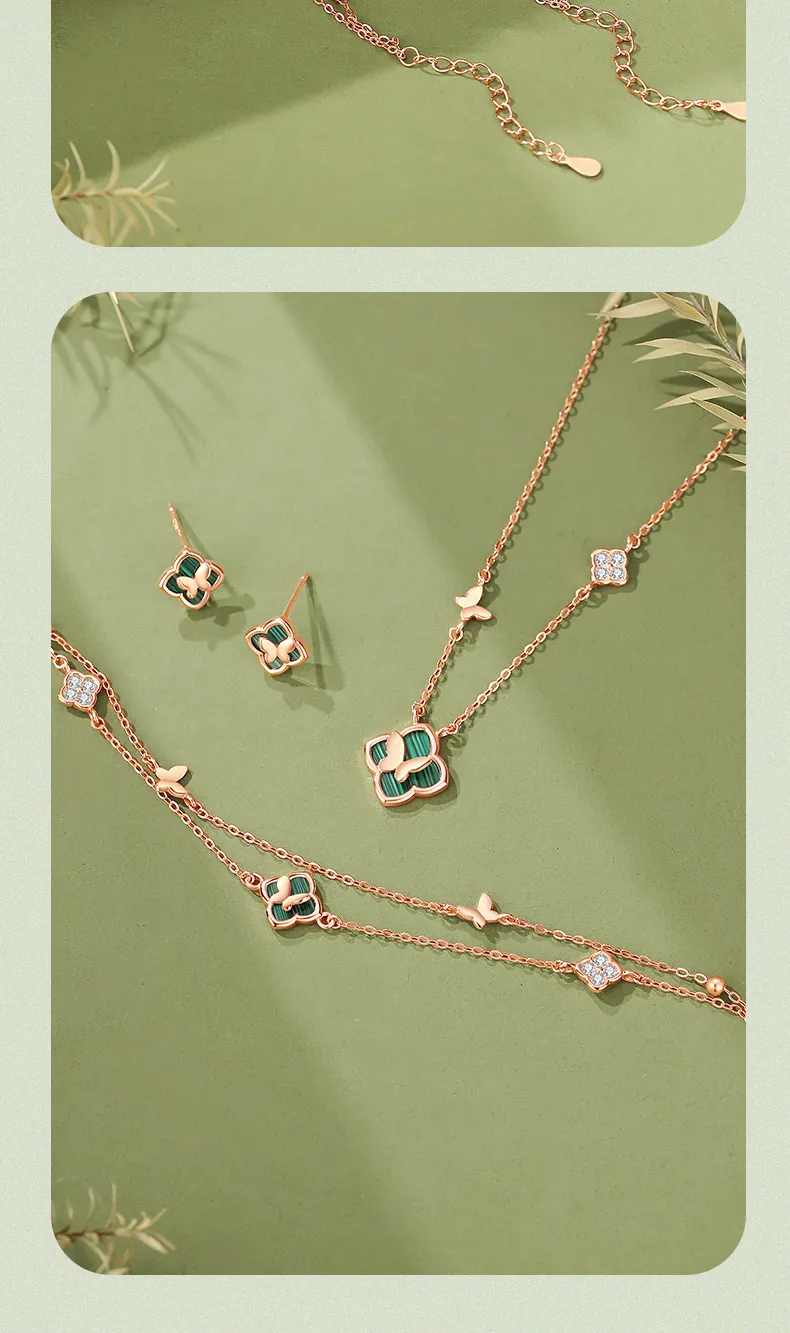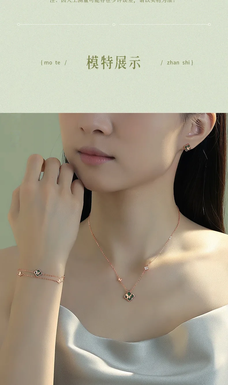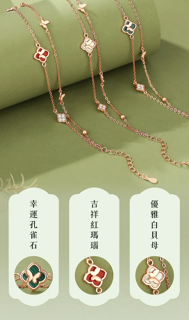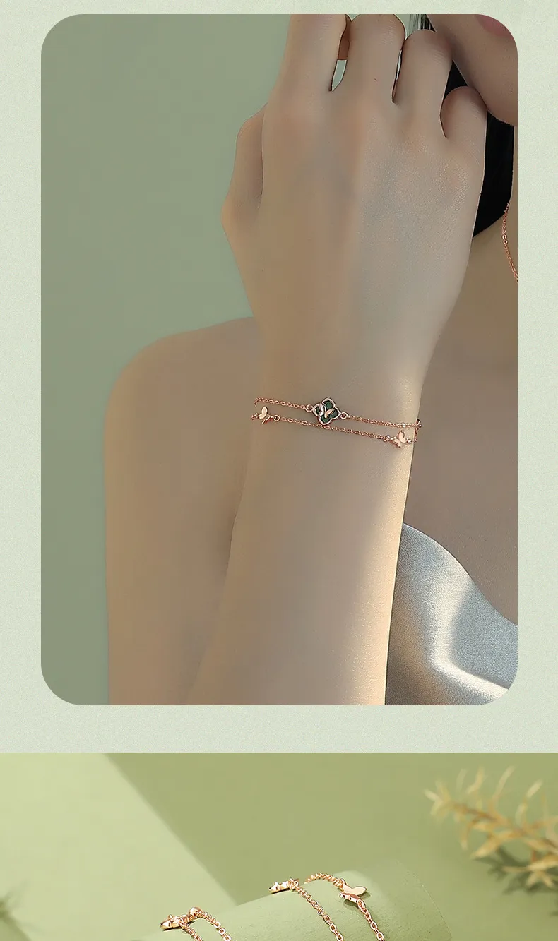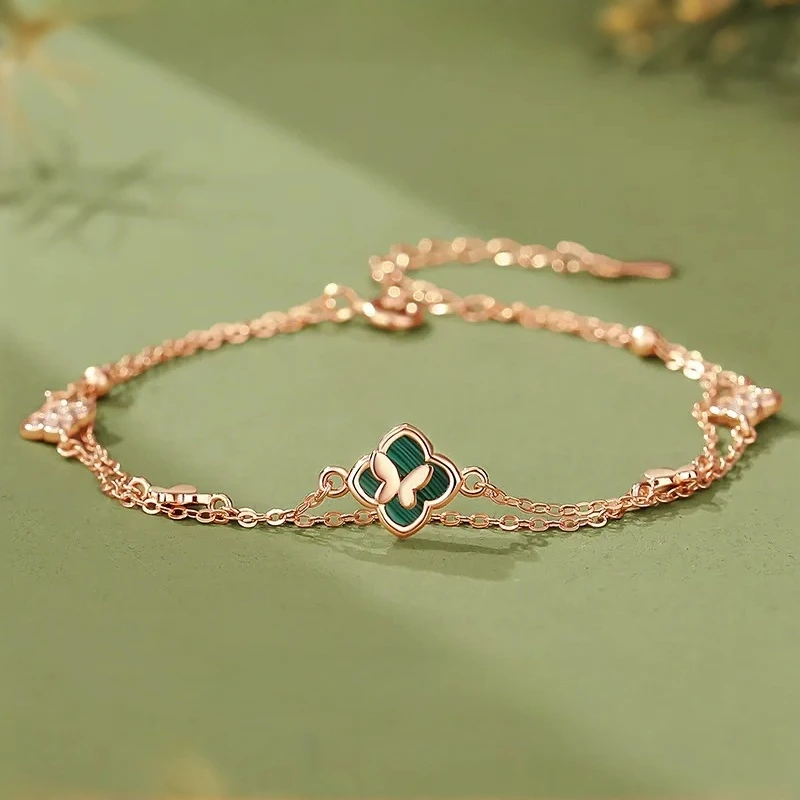 手鍊・幸運草・青蔭之約 | S925純銀電鍍真金 | 孔雀石四葉草 | 雙層疊戴設計 | 玫金色幸運孔雀石四葉草手鍊