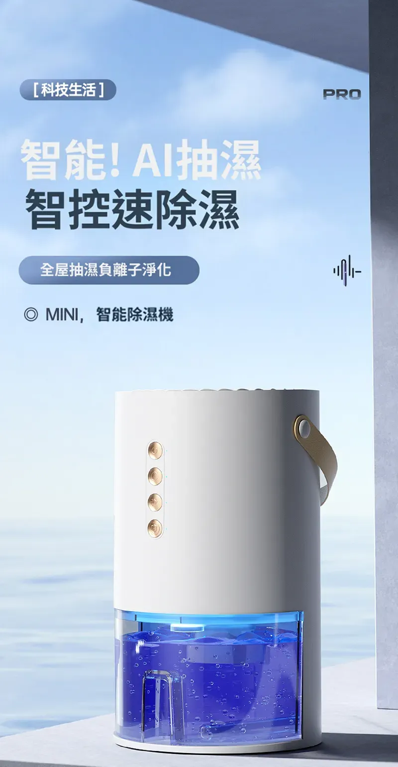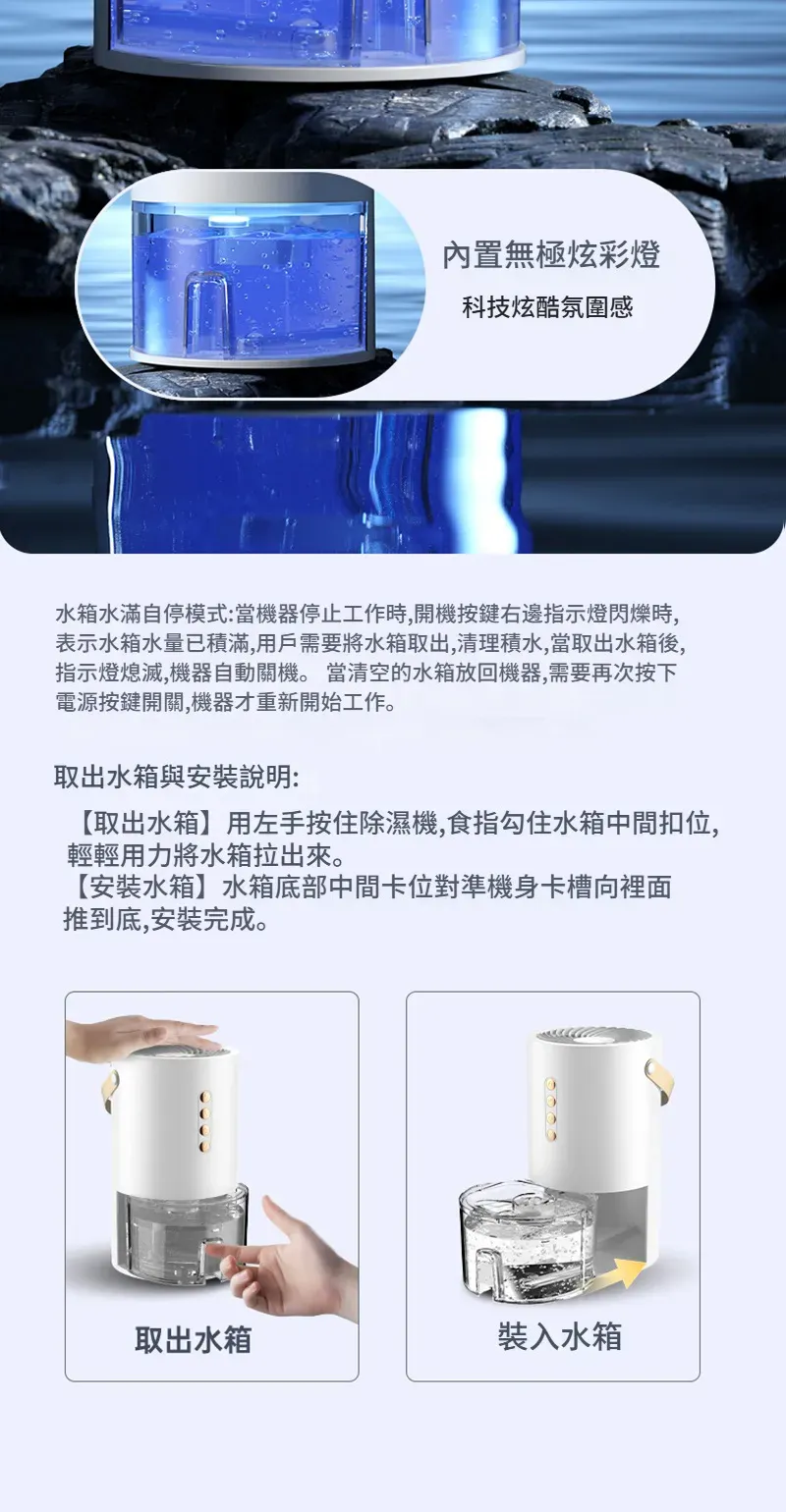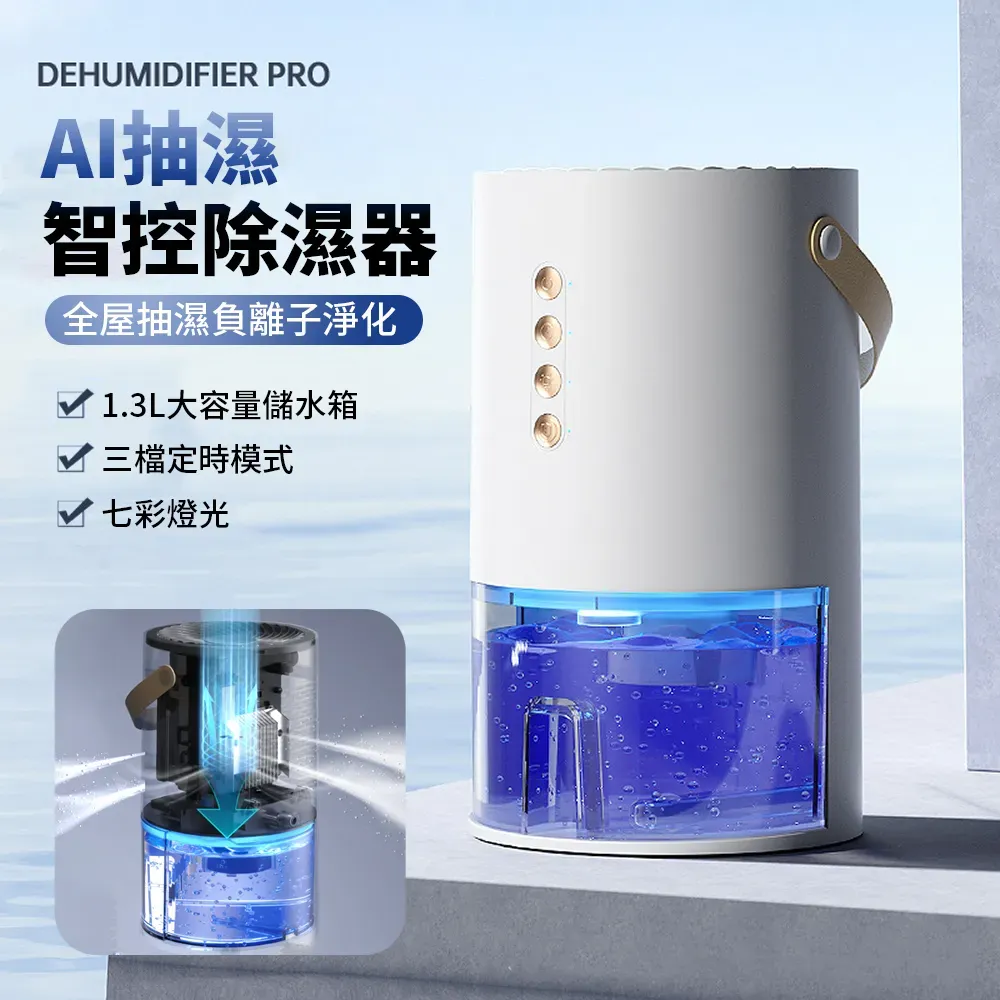 智慧AI智控美型除濕機 | 半導體低溫冷凝長效除濕 | 負離子淨化雙效合一 | 可視大水箱水滿自停 | 靜音除濕不打擾 | 無極炫彩科幻小夜燈