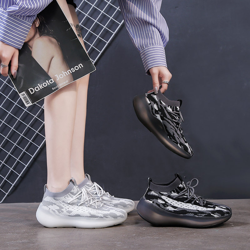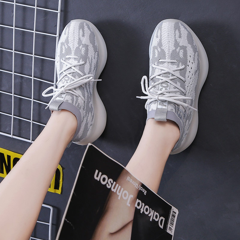 情侶款科技網面飛織鞋面爆米花鞋底厚底老爹鞋椰子鞋男女運動鞋