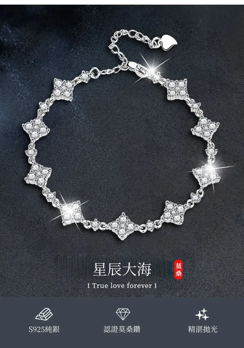 手鍊・星辰大海 | S925純銀 | 鑲嵌9顆莫桑鑽 | 可過測鑽筆 | 附GRA認證證書 | 3EX級切工 | 高級送女生禮物星辰大海莫桑鑽手鍊