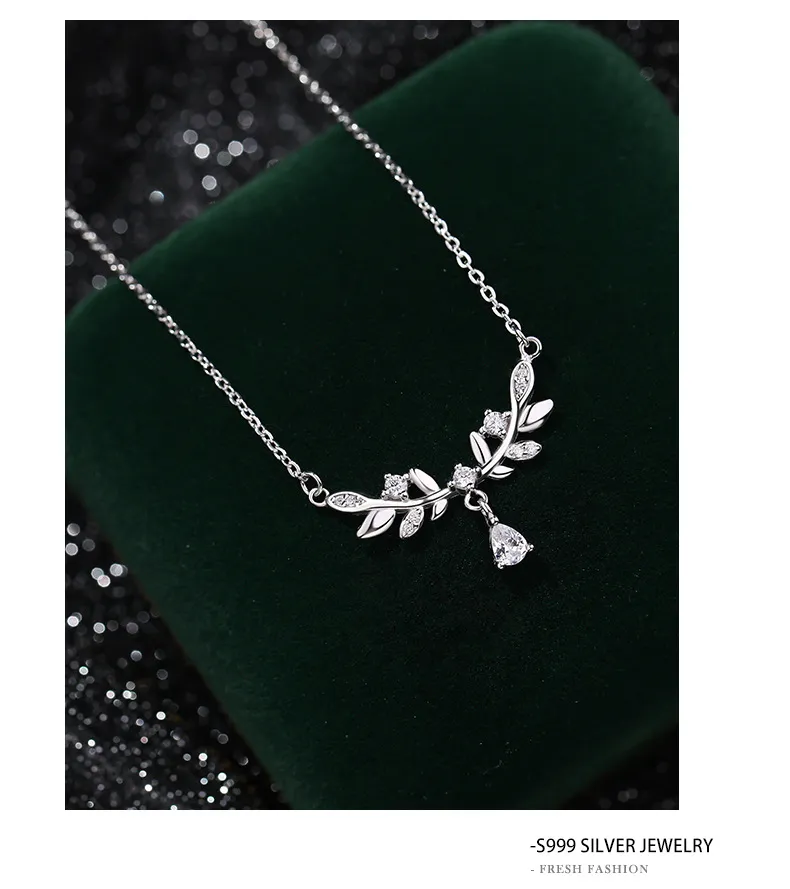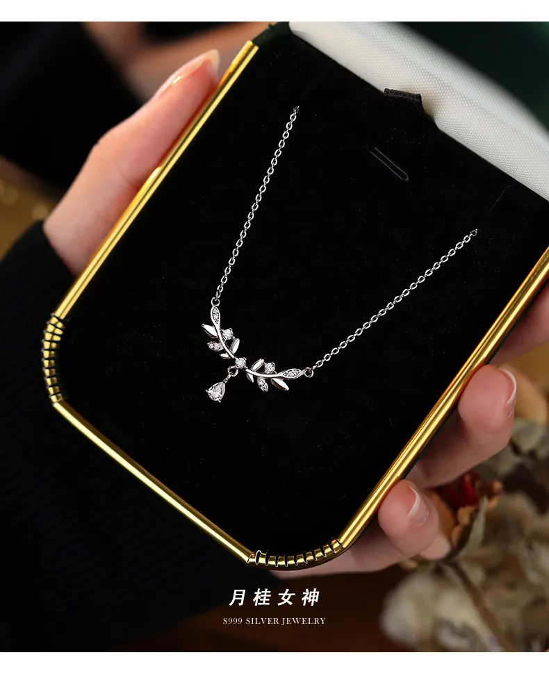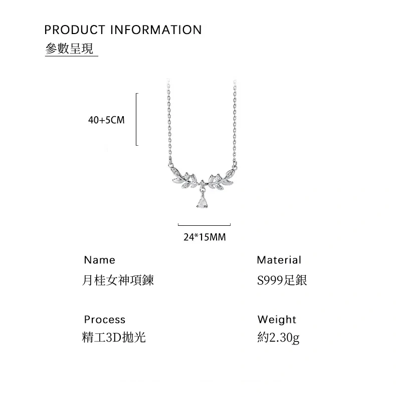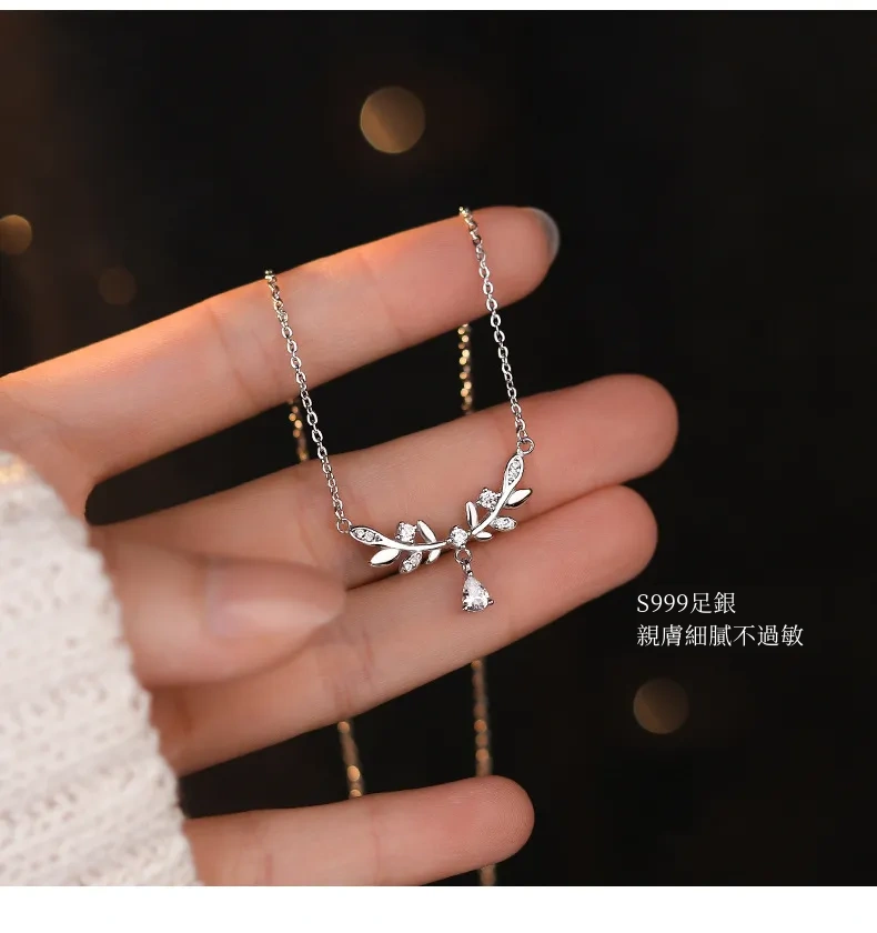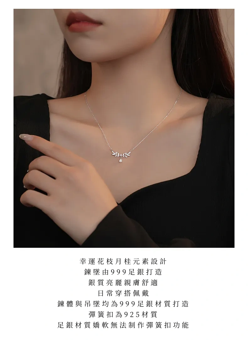 幸運花枝月桂女神項鍊 | S999足銀鑲鋯鑽 | 精工3D拋光 | 親膚細膩不過敏 | 高級送女生送閨蜜禮物月桂女神女式項鍊