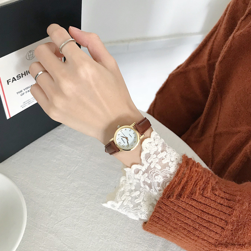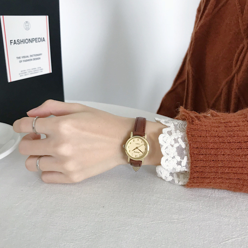 【香檳金小圓盤】【學院風】簡約氣質學院風超顯氣質小錶盤皮帶女士手錶