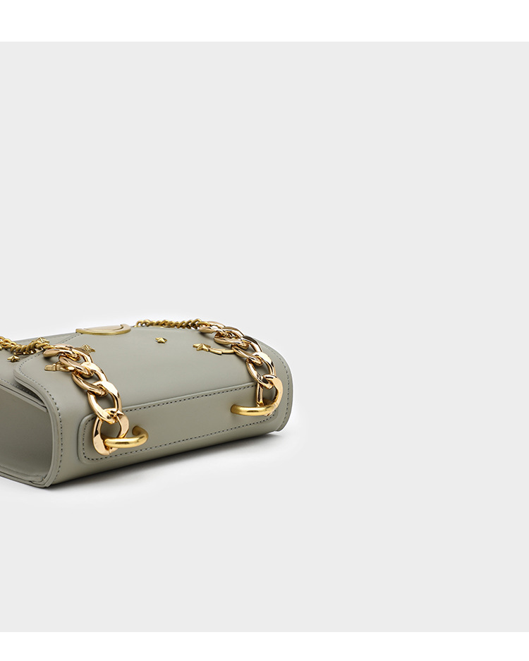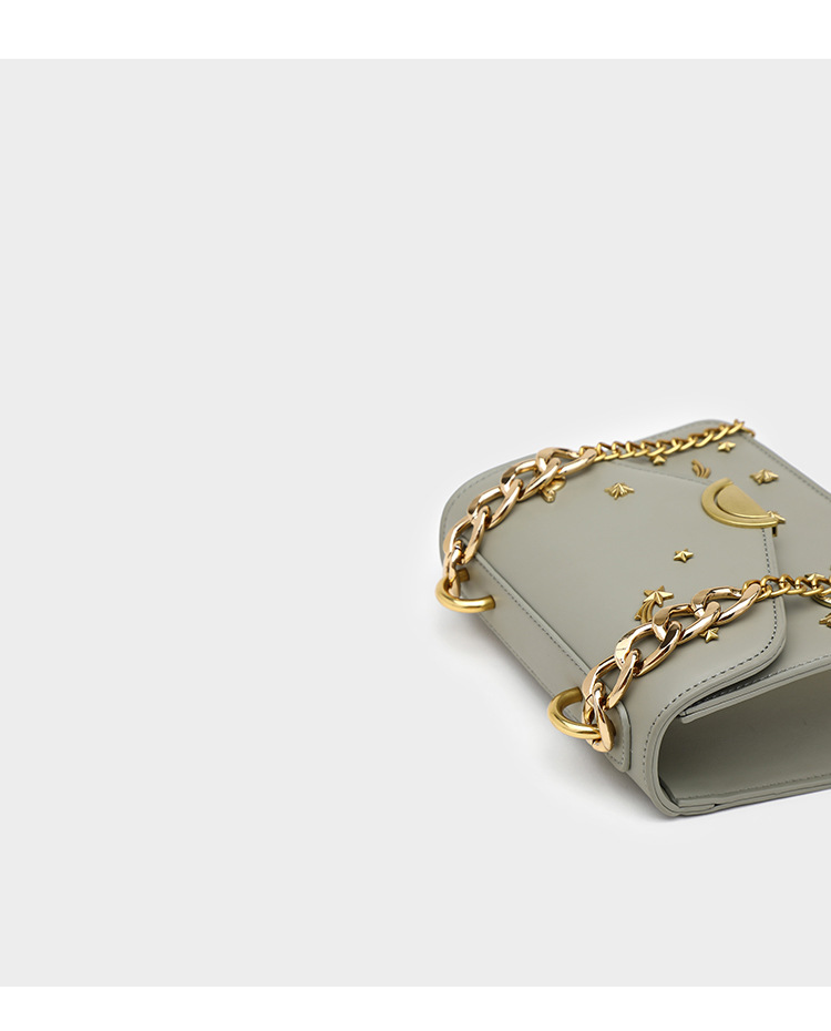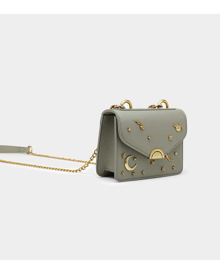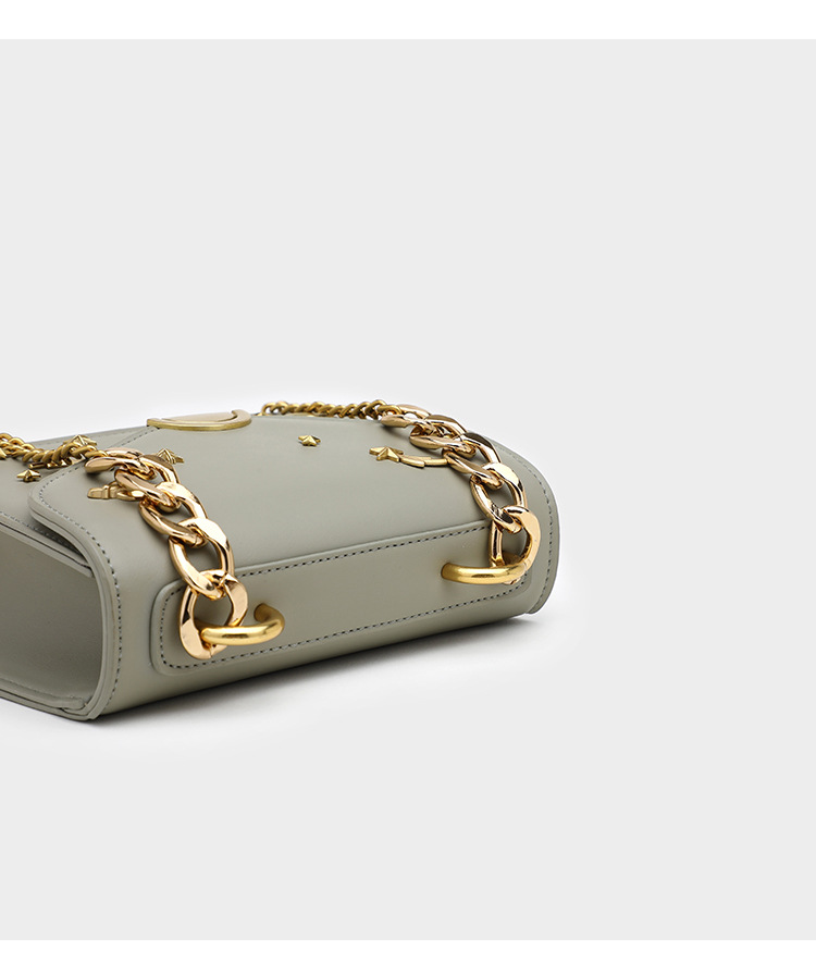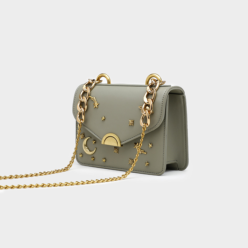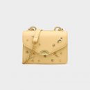 春夏設計師款活力黃色星空元素配飾鏈條小方包單肩斜背側背包