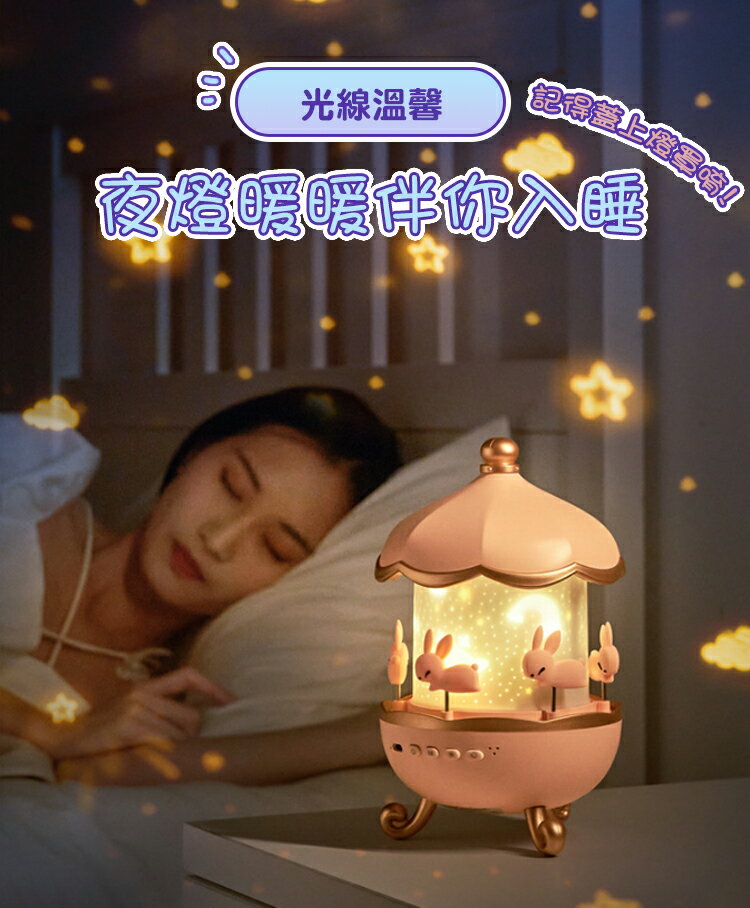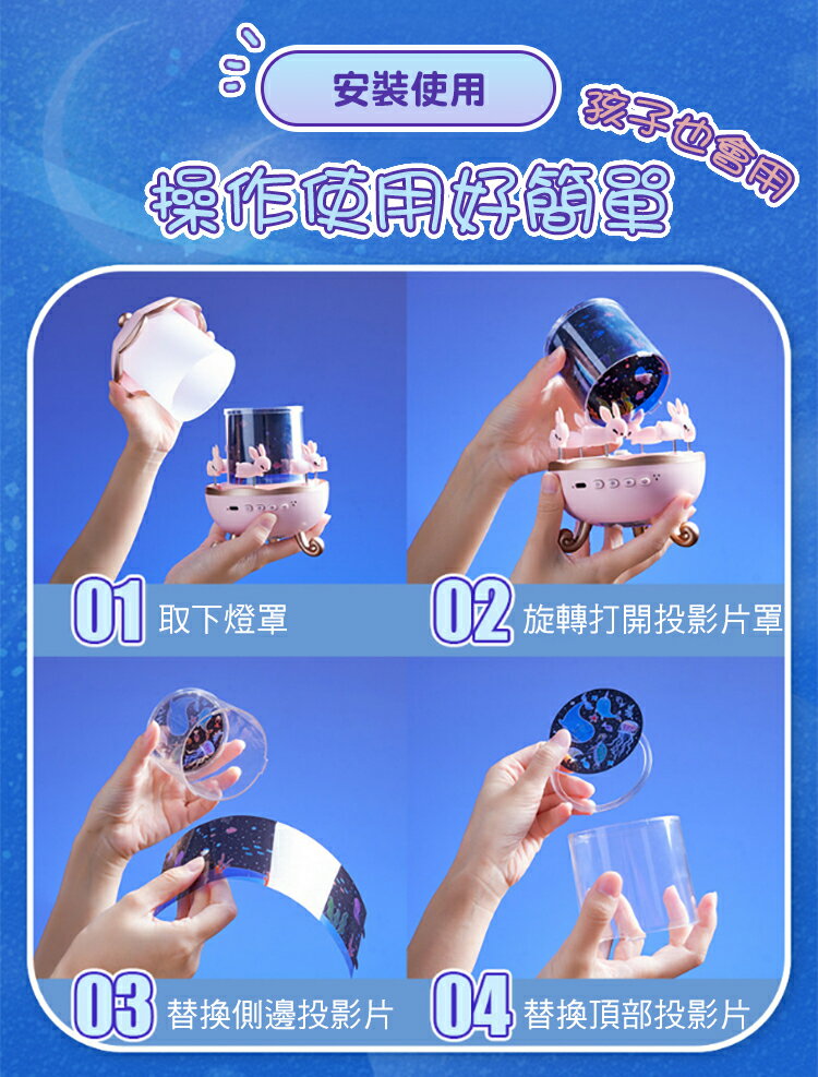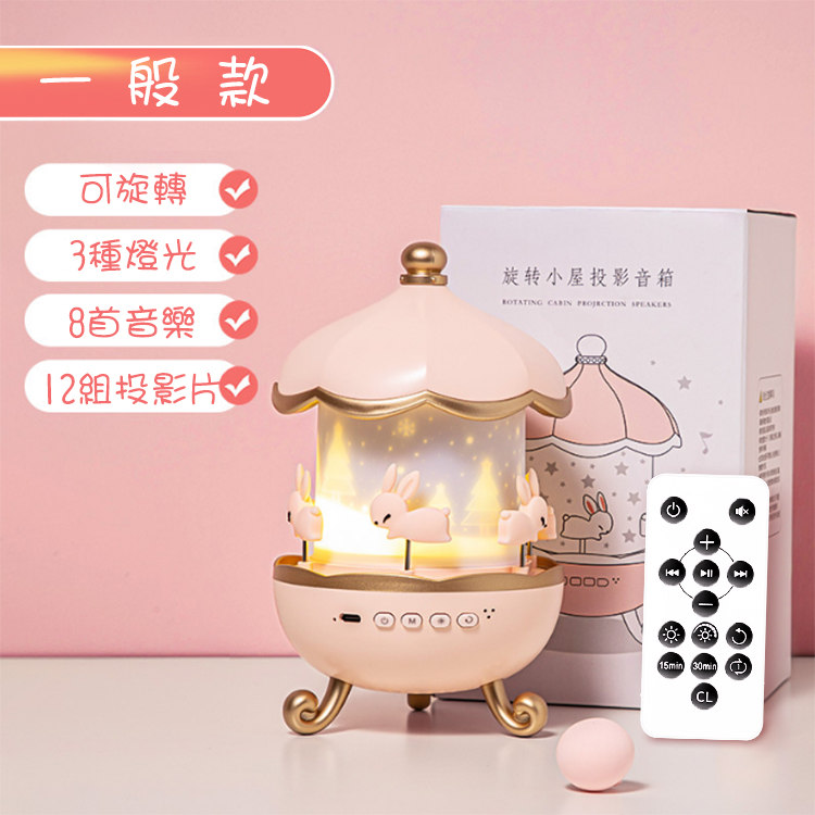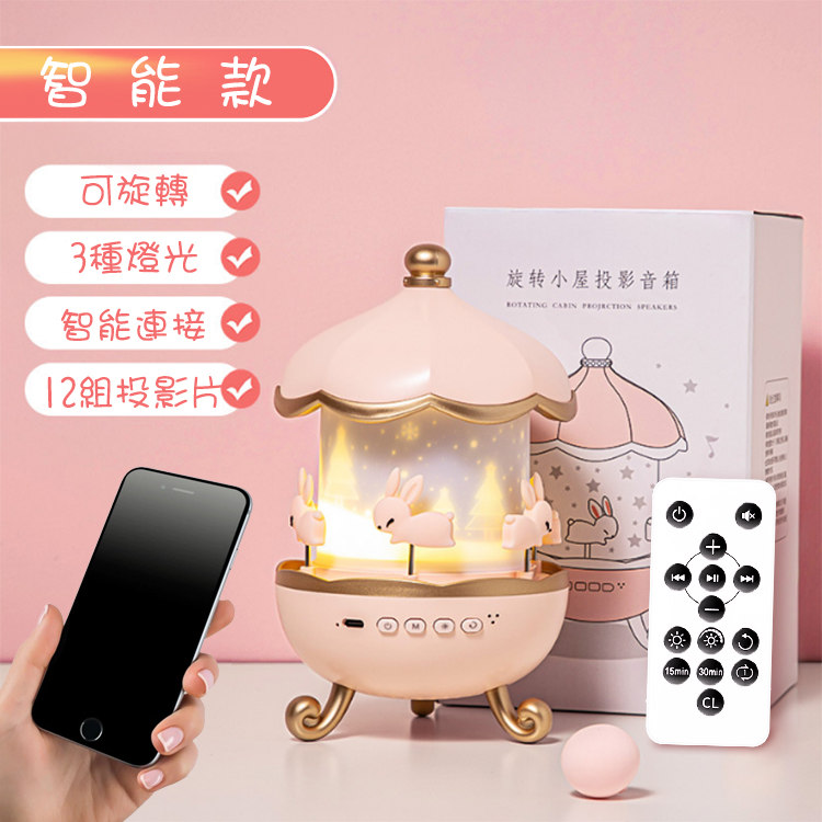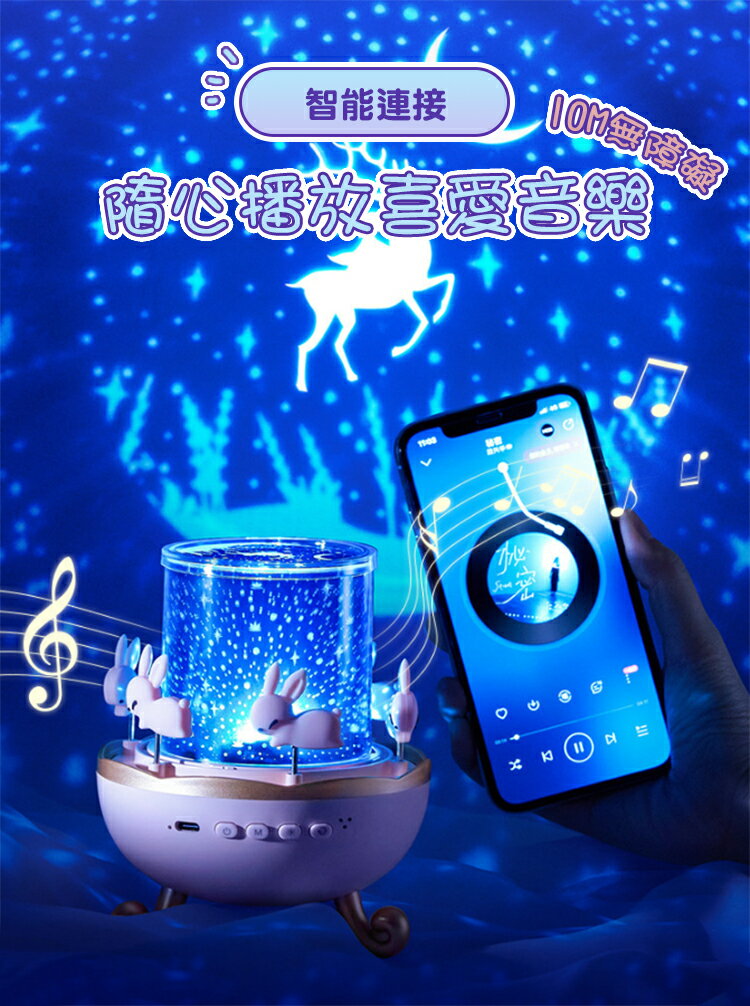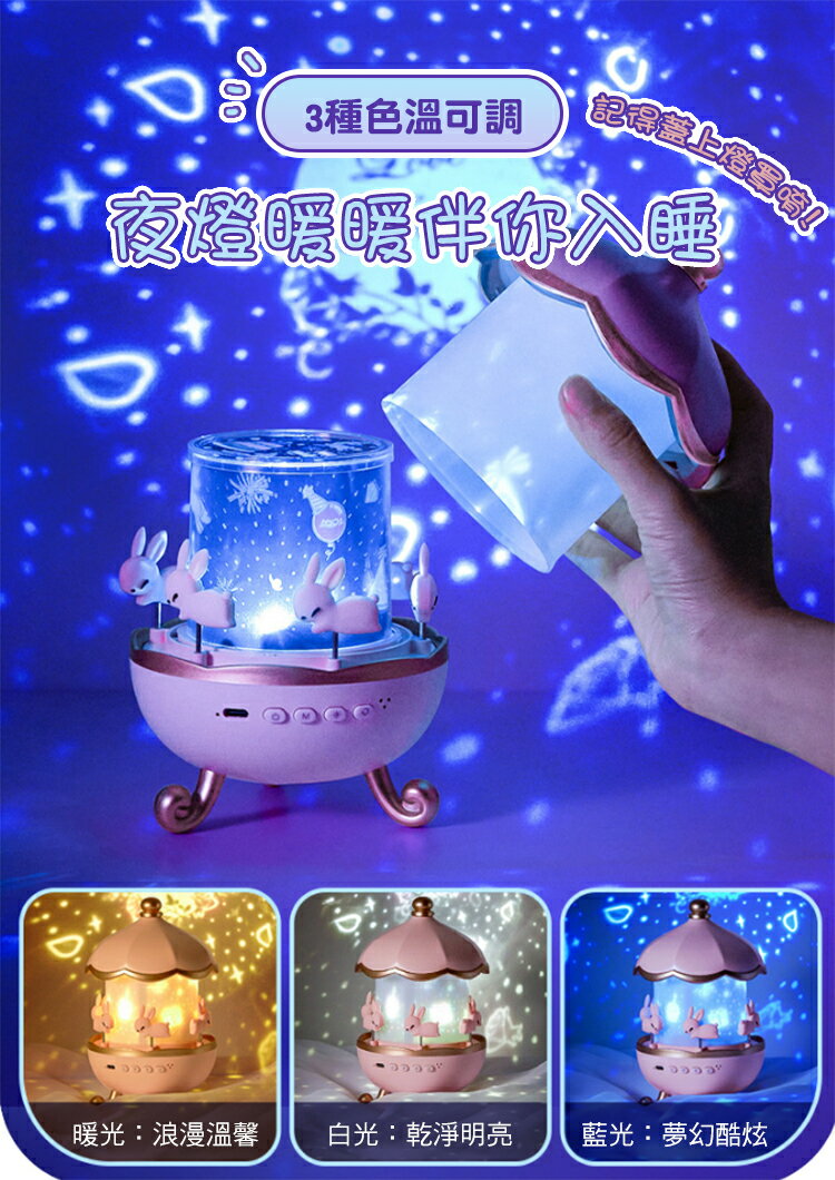 氣氛感神器 | 旋轉兔兔音樂盒投影夜燈 | 三種燈效 | 送12組投影片 | 無線遙控 | 可連藍芽 | 少女心爆棚浪漫禮物旋轉兔兔音樂盒投影夜燈