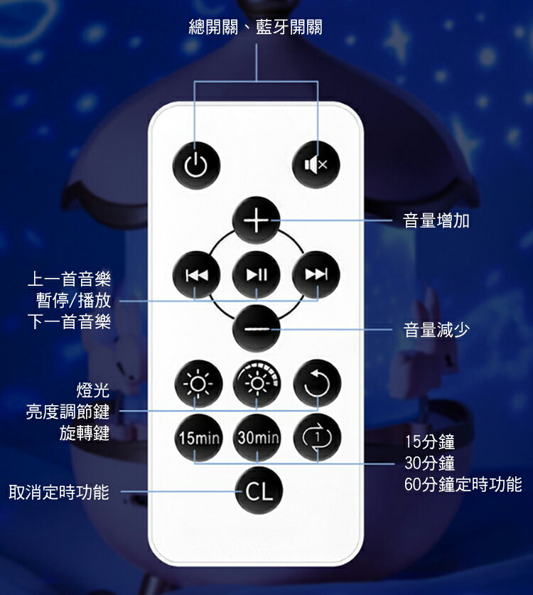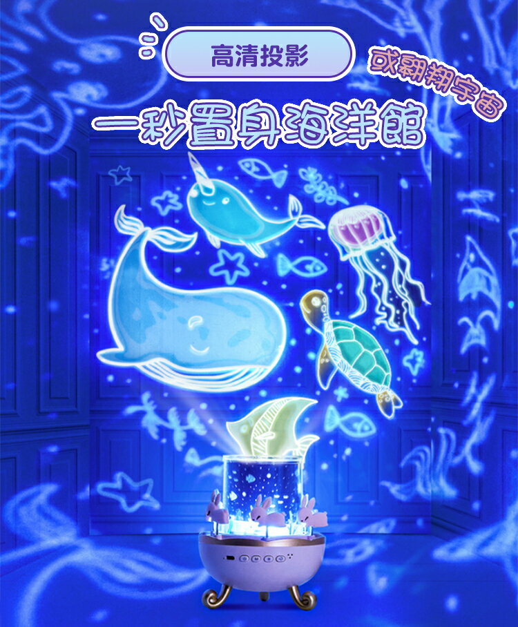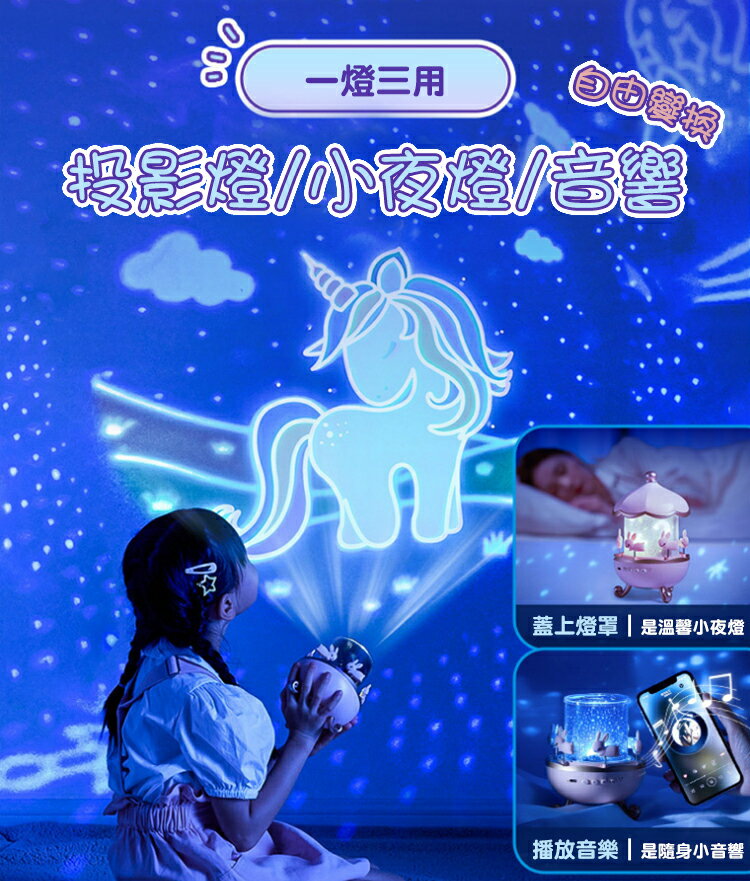 一燈三用:投影燈、小夜燈、音響,自由變換
