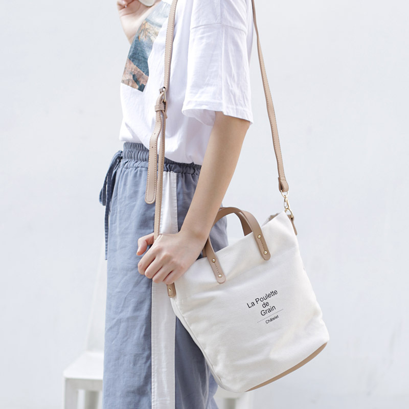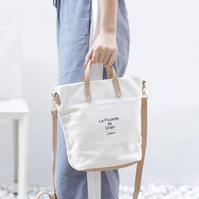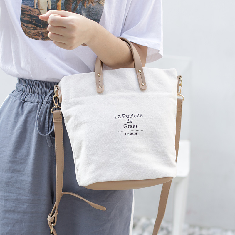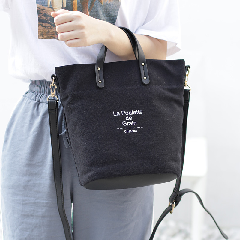 韓版清爽黑色文藝字母印花帆布包手提單肩斜背側背包